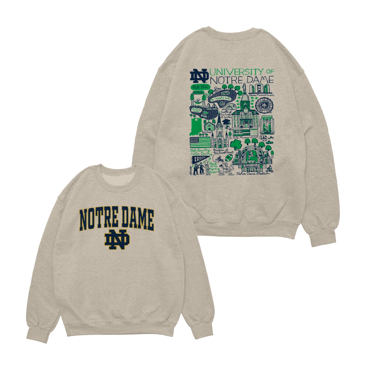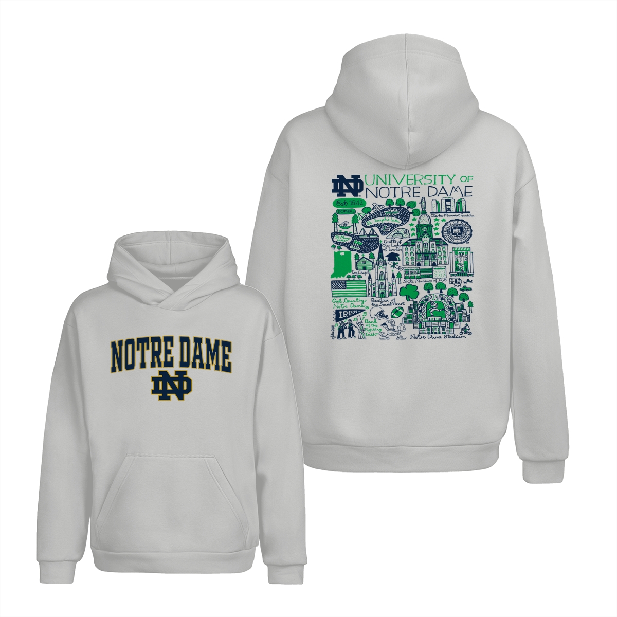 University of Notre Dame T-Shirt – Official Fighting Irish Campus Landmarks Graphic Tee – Unisex College Spirit Apparel