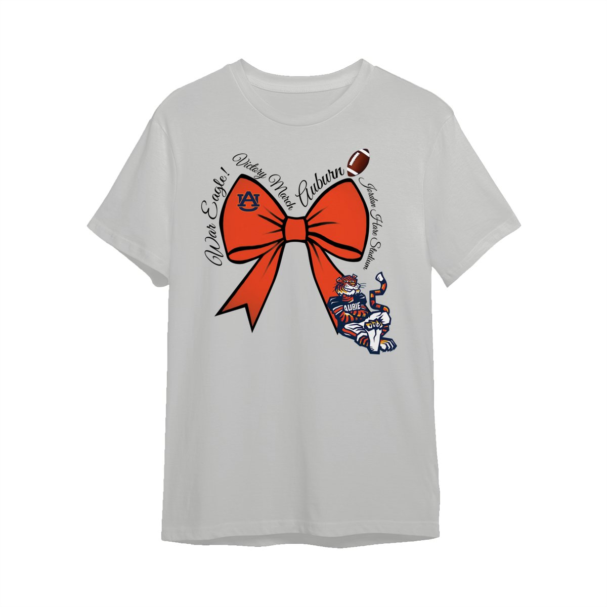 Vintage Auburn Tiger College Football Bows Inspired White Shirt, Shirt for Fan, Pride of The Team, Shirt for Men and Women NCAA T-Shirt, Your College Gift Custom Team Cotton Gift