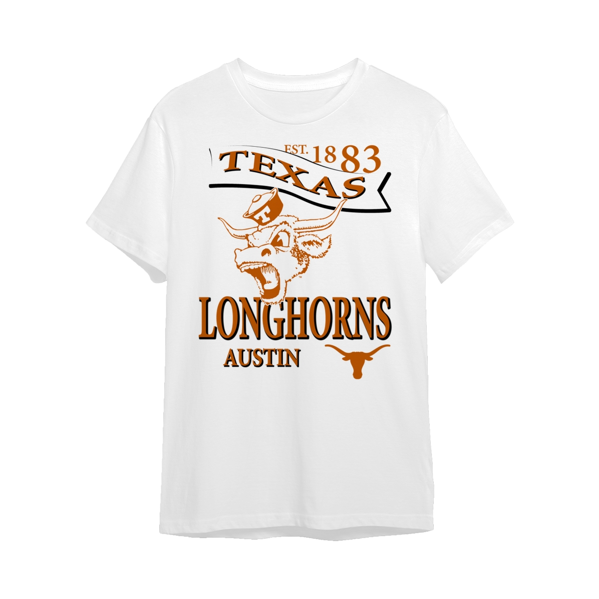 Vintage College Football Texas Longhorns Teams T-Shirt Unisex Retro College Football Mascot, Unisex Classic Cotton Te Graphic Tees For All Hand-Drawn T-Shirt