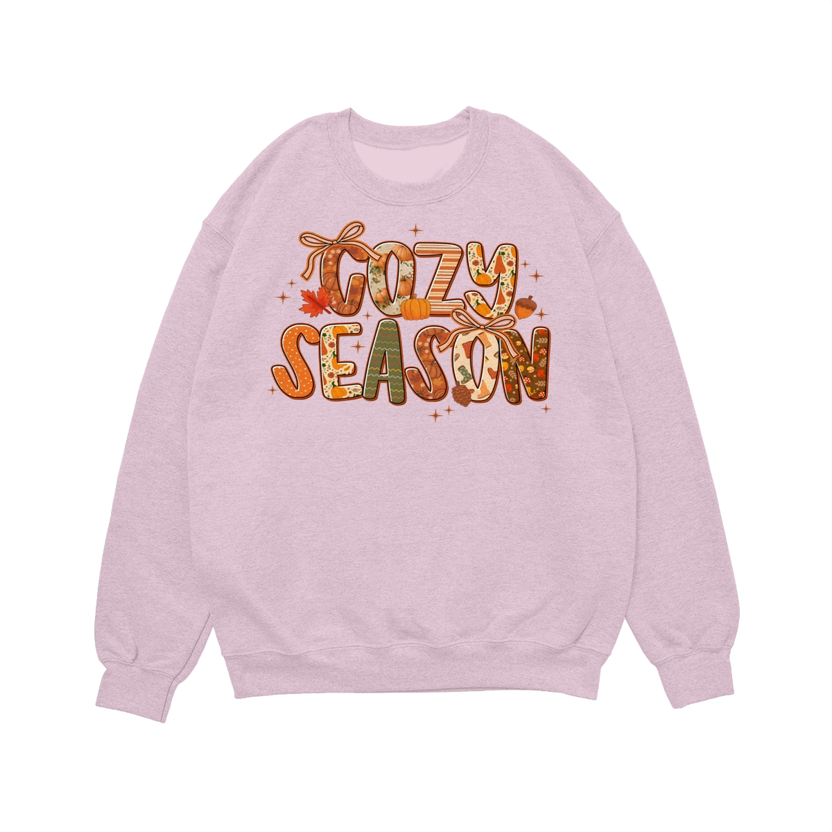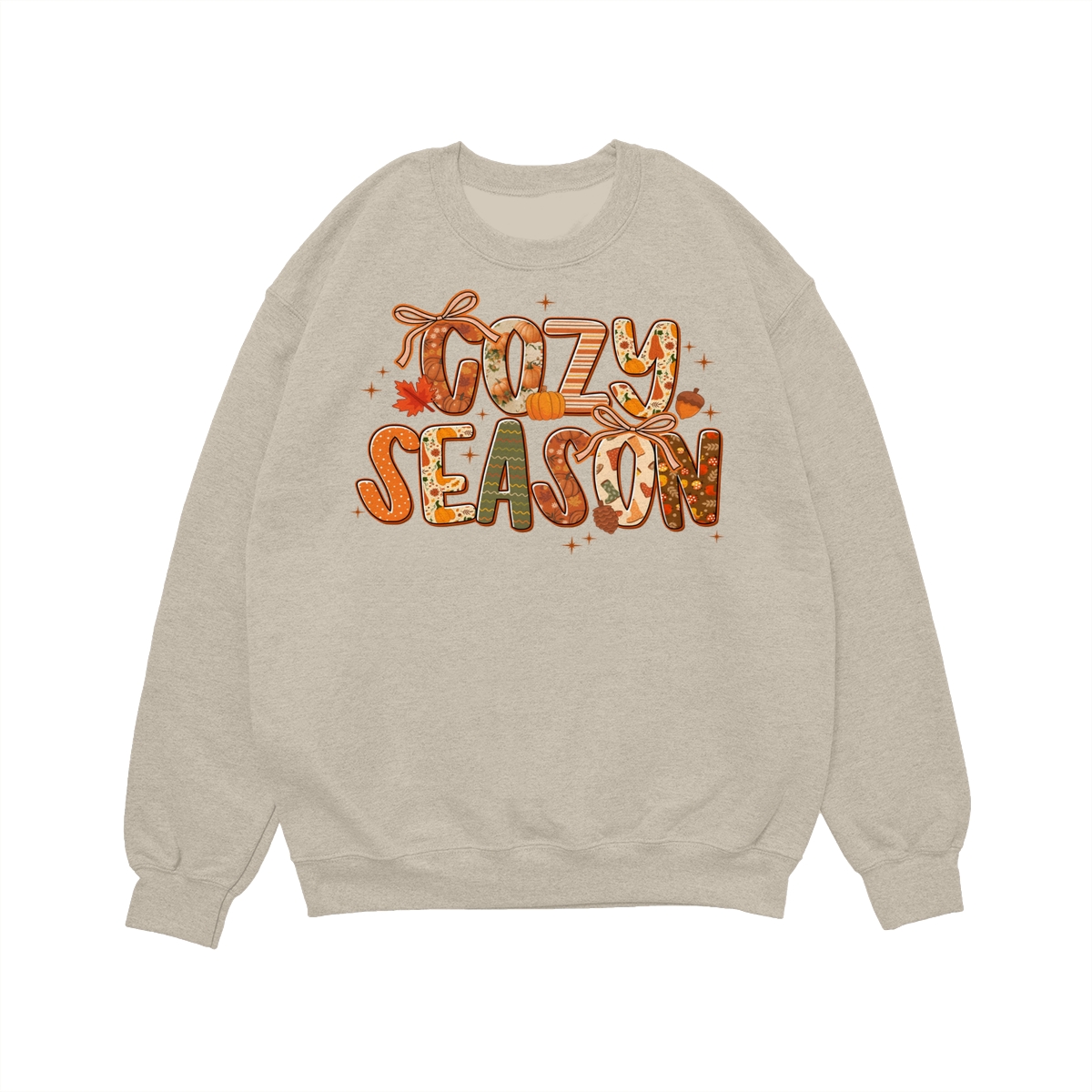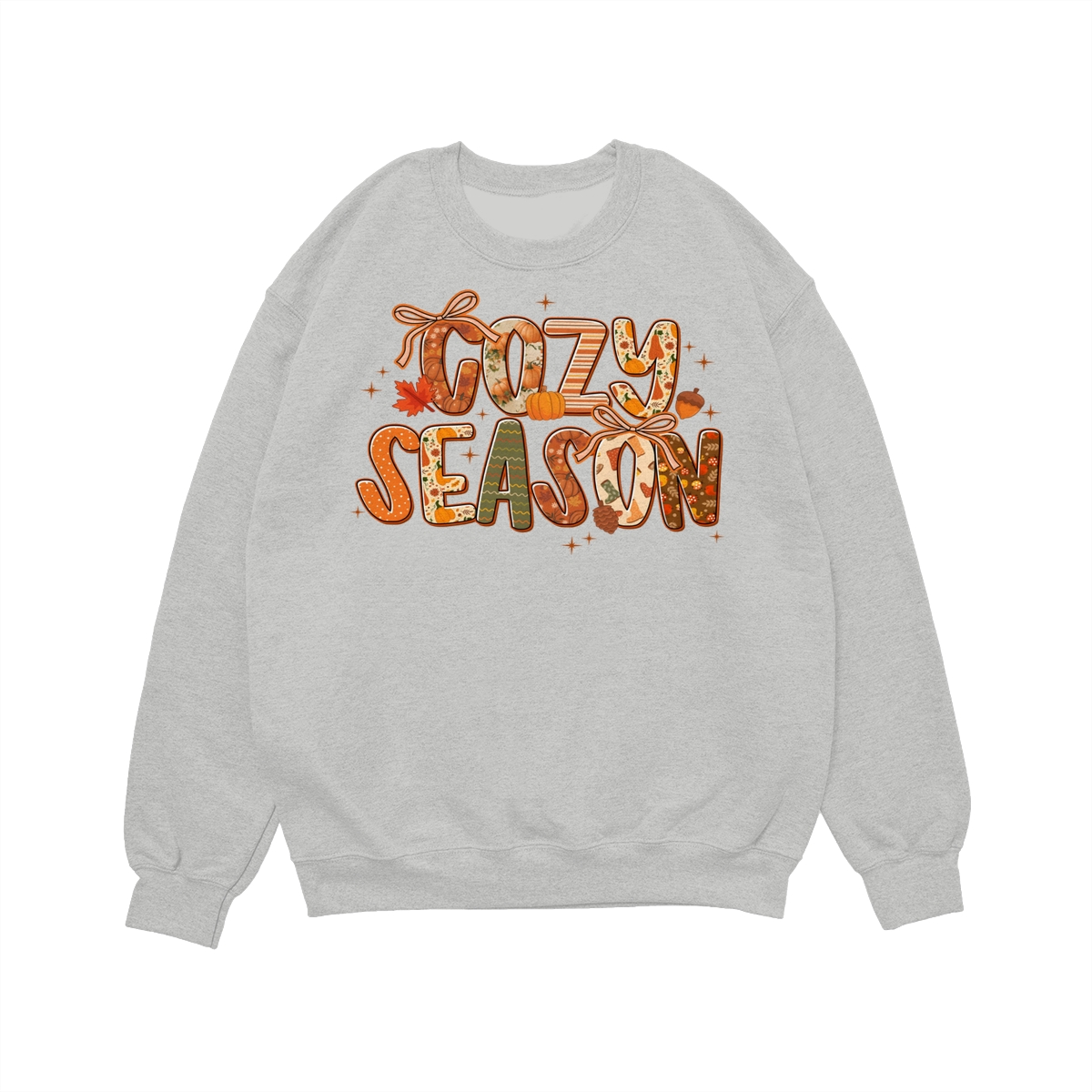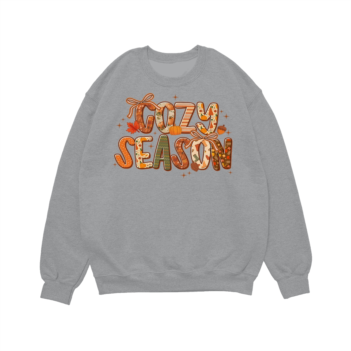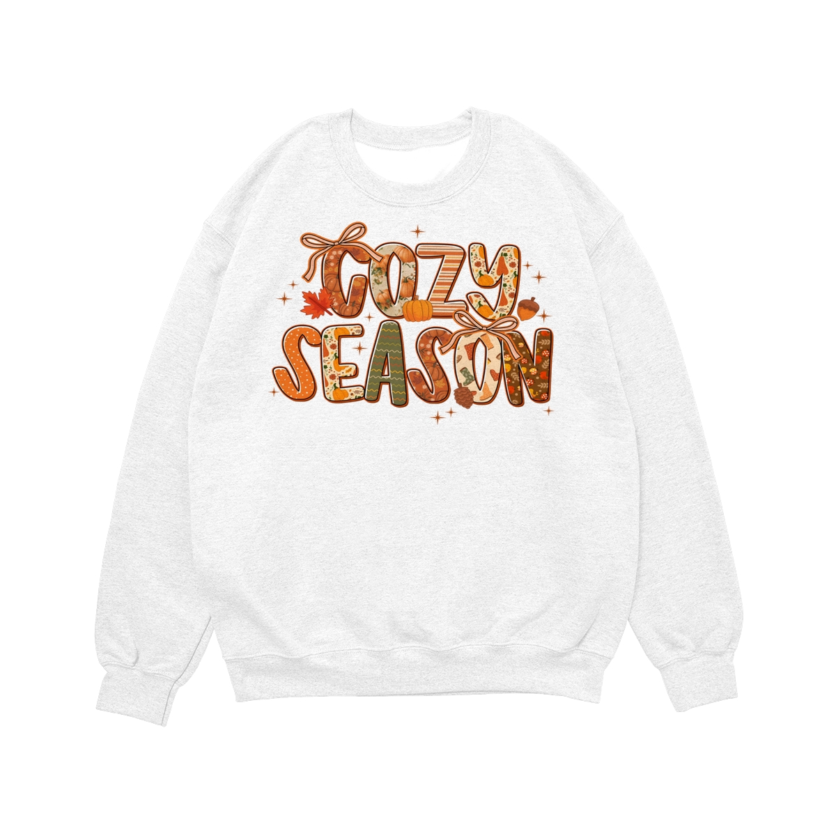 Vintage Fall Vibes Cozy Season Crewneck Sweatshirt, Autumn Leafs Pumpkin Pattern Season Graphic Printed Tee, Autumn Gift for Her