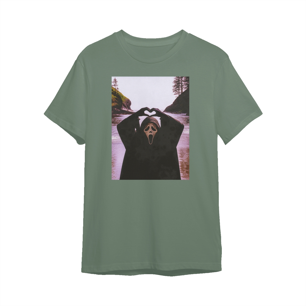 Vintage Ghostface Scream Halloween Shirt, Heart Hands Scream Shirt, Spooky Season, Scary Movie, Horror Movie Shirt Cotton T-Shirt Graphic Tee Top Tshirt Summer Casual Crewneck
