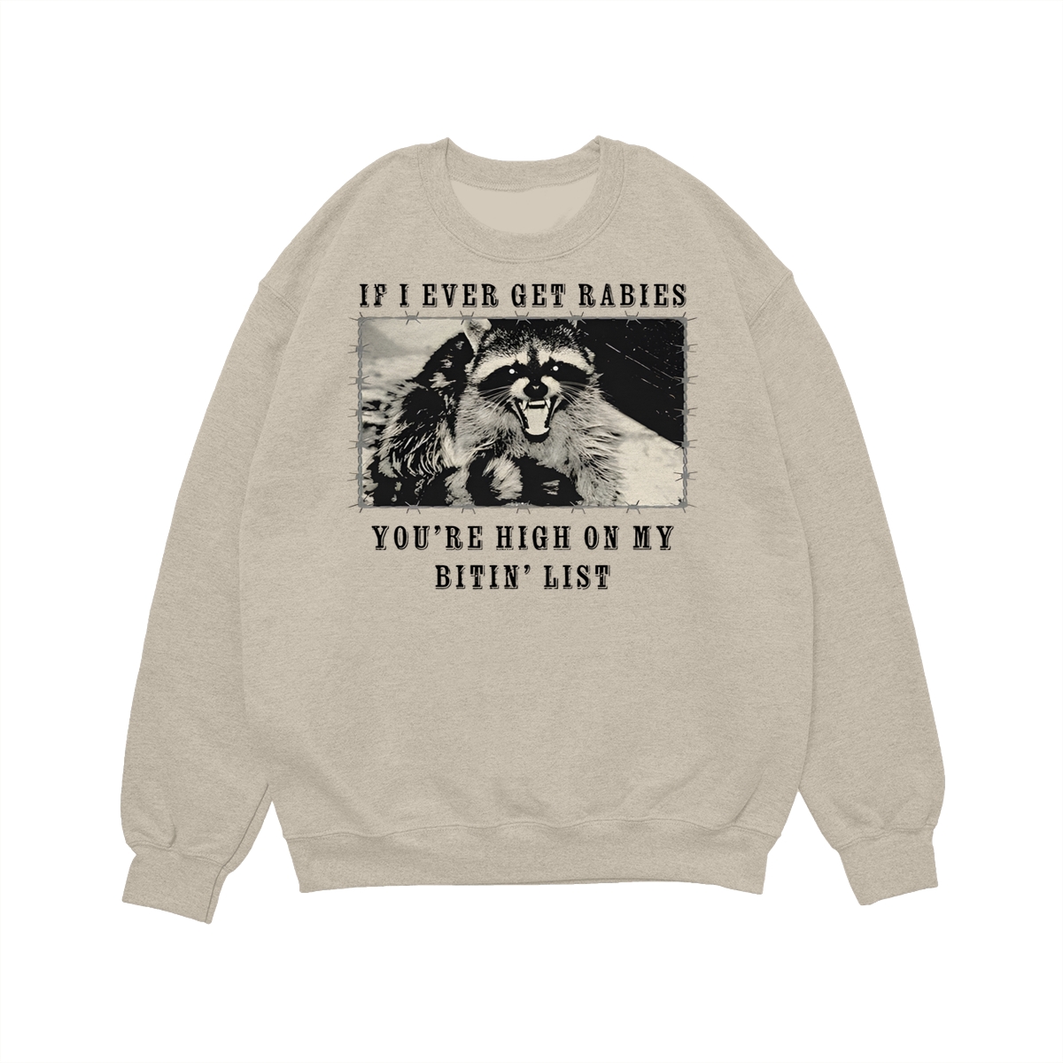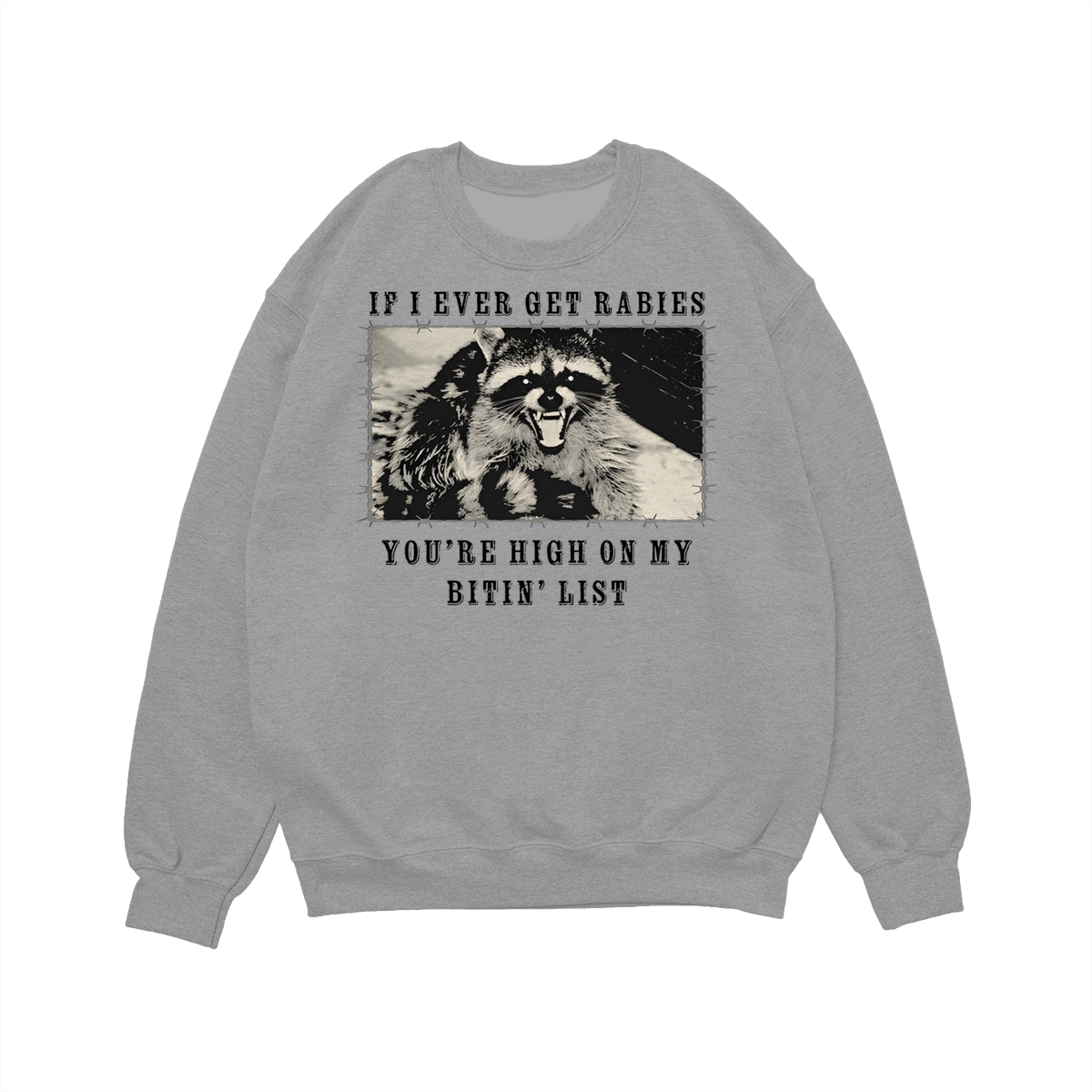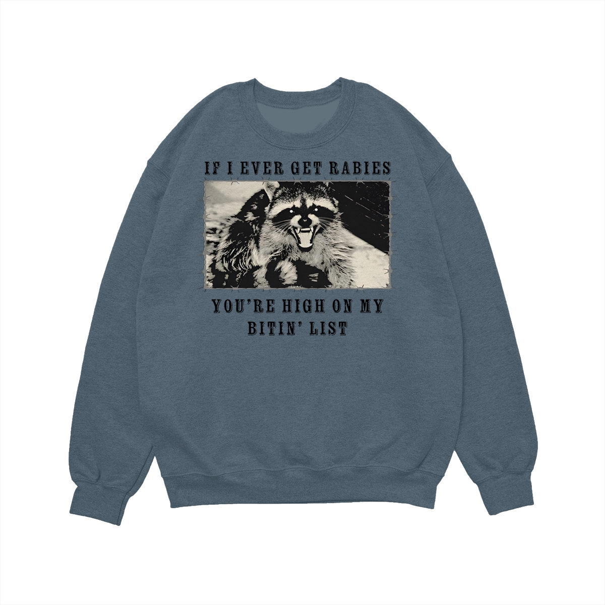 Vintage If I Ever Get Rabies T-Shirt & Sweatshirt – Funny Quote Graphic Tees, Back to School Casual Streetwear, Made in USA, Menswear Womenswear, Custom Printed Gift Shirt