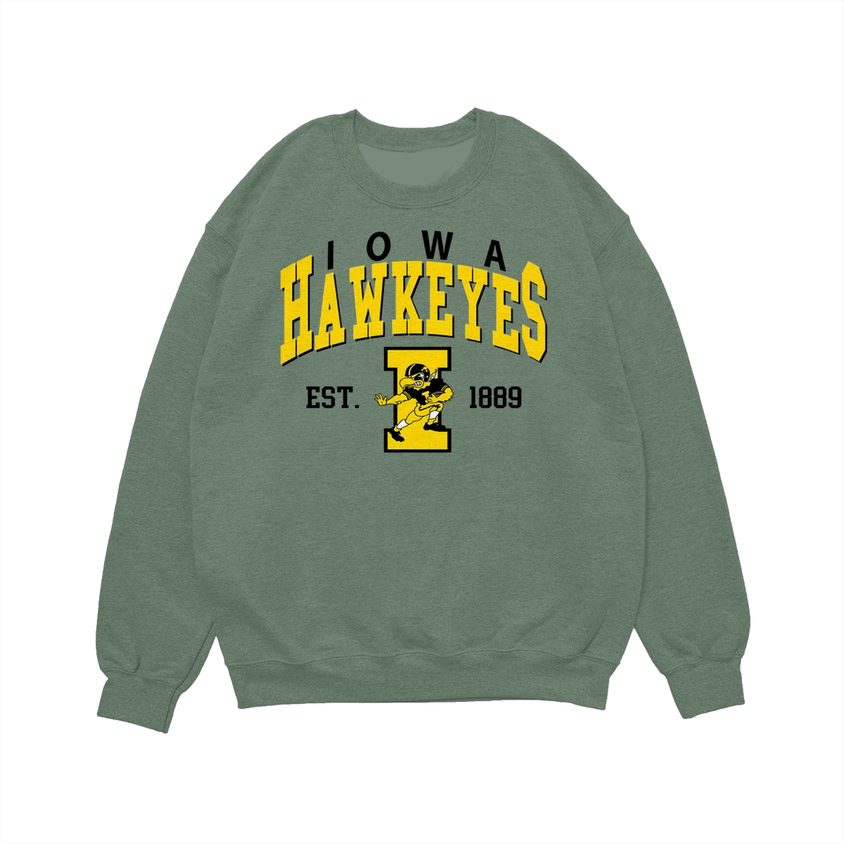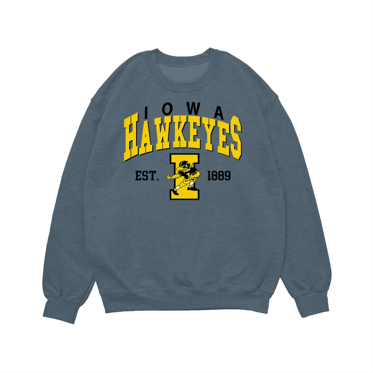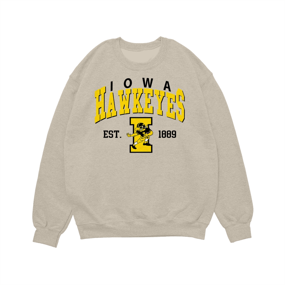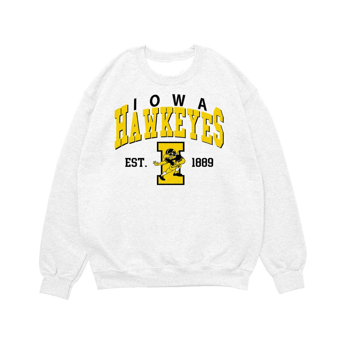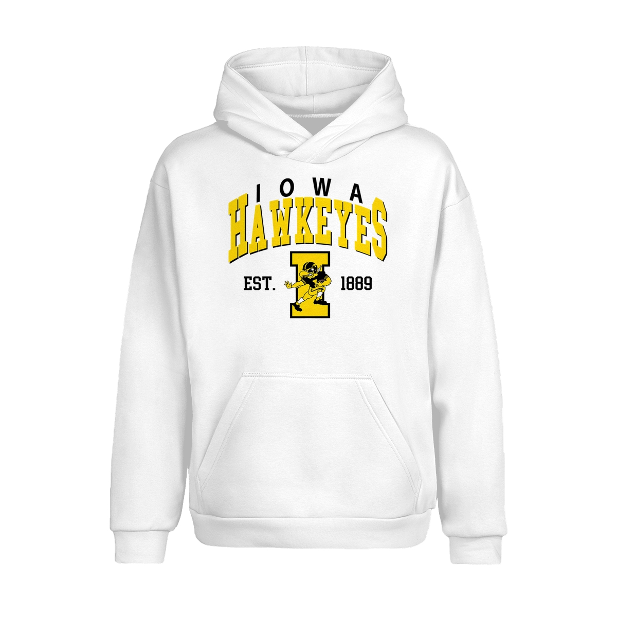 Vintage Iowa Hawkeyes Est 1889 Teams NCAA Collection Unisex Crewneck White Hoodie, Graphic College Team Collection Hoodie, Gift For NCAA Fans