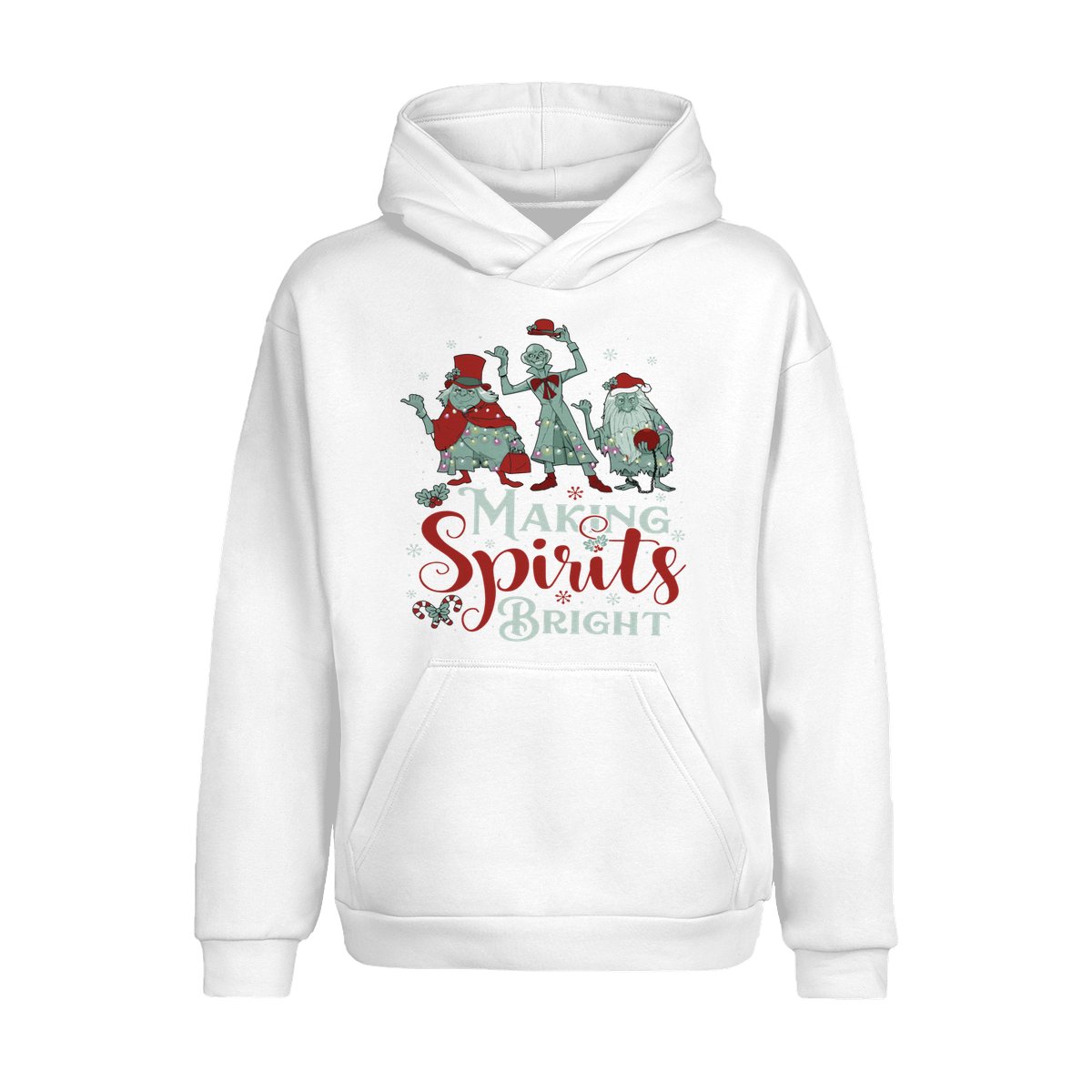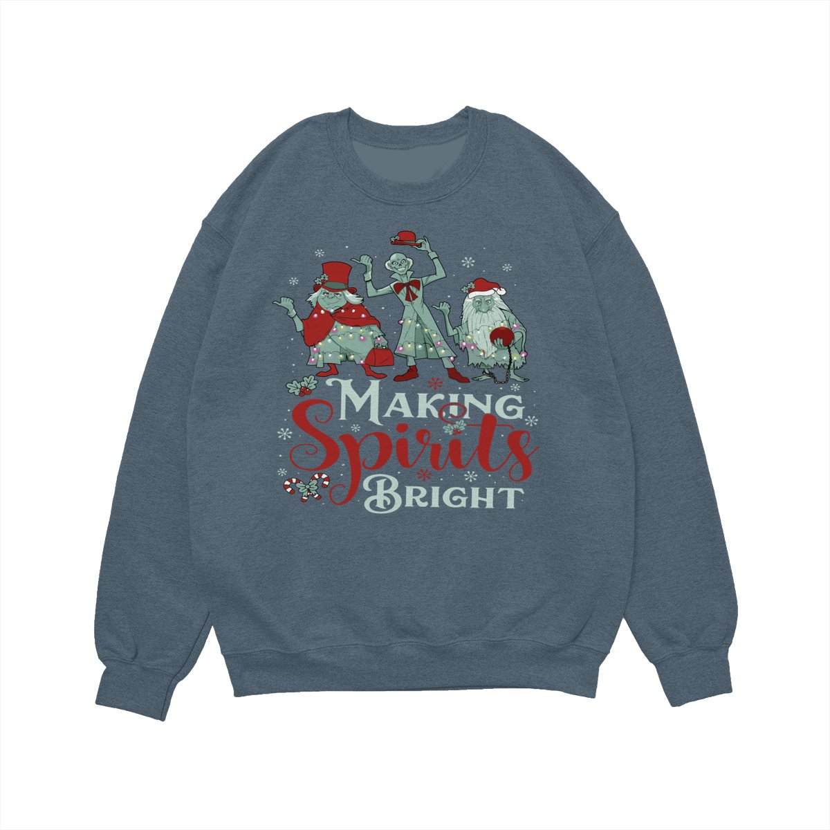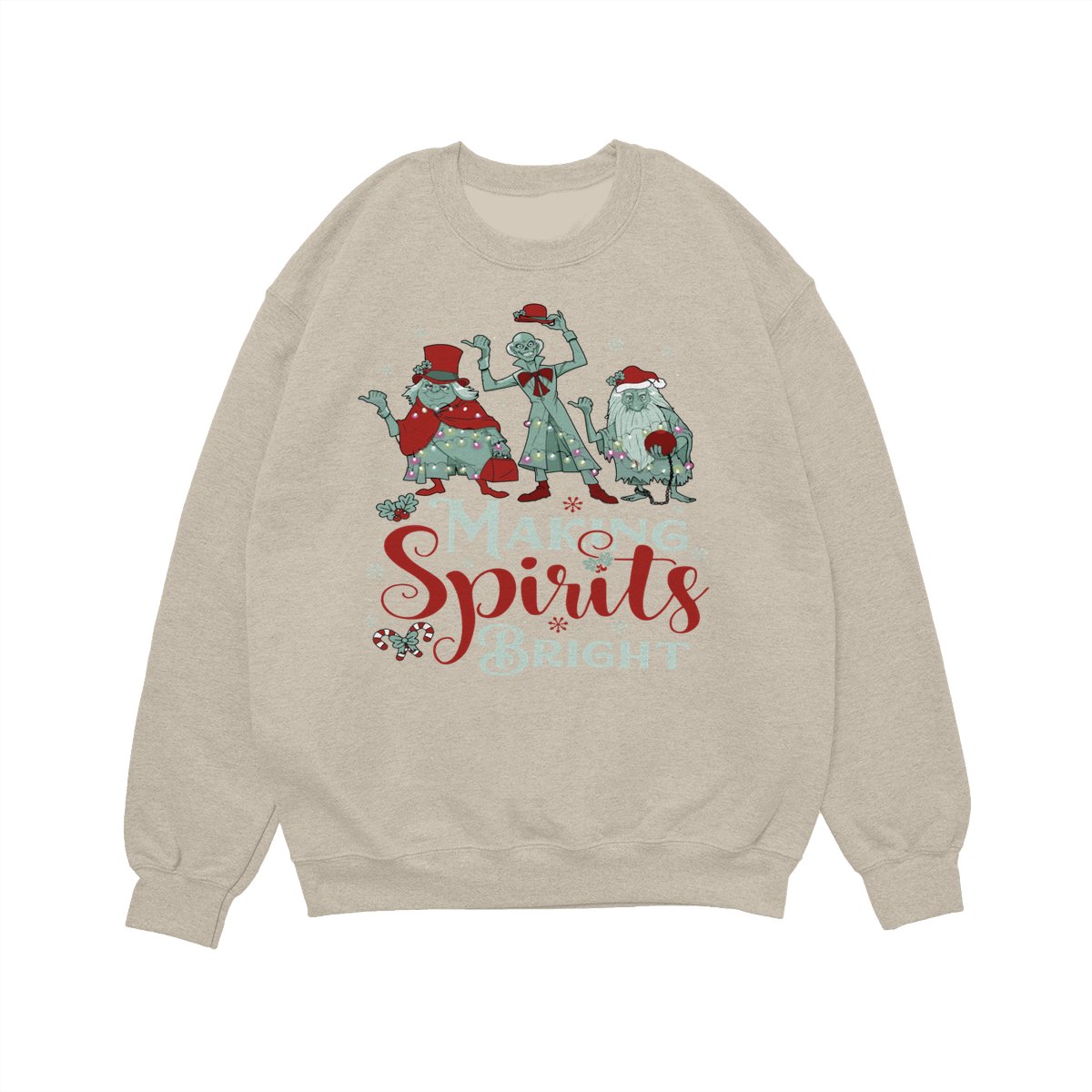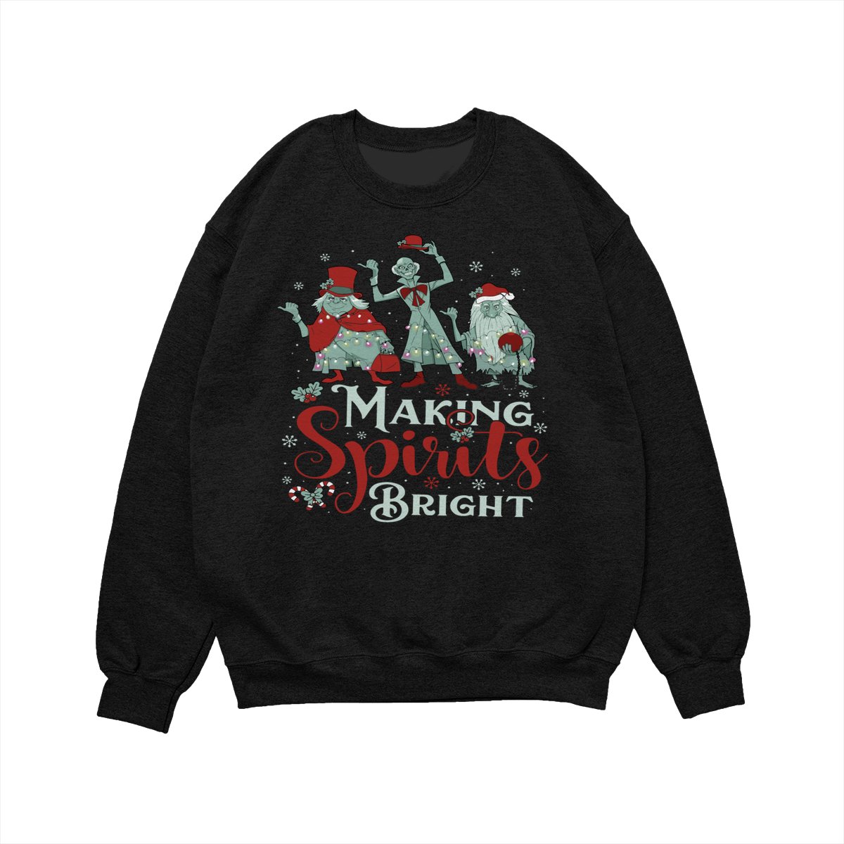 Vintage Making Spirits Bright Hitchhiking Ghost Sweatshirt, Santa Hat Merry Christmas Haunted Mansion Shirt, Xmas Party T-Shirt, Xmas Holiday Apparel, Gift for Him Her Crewneck Streetwear Menswear Top