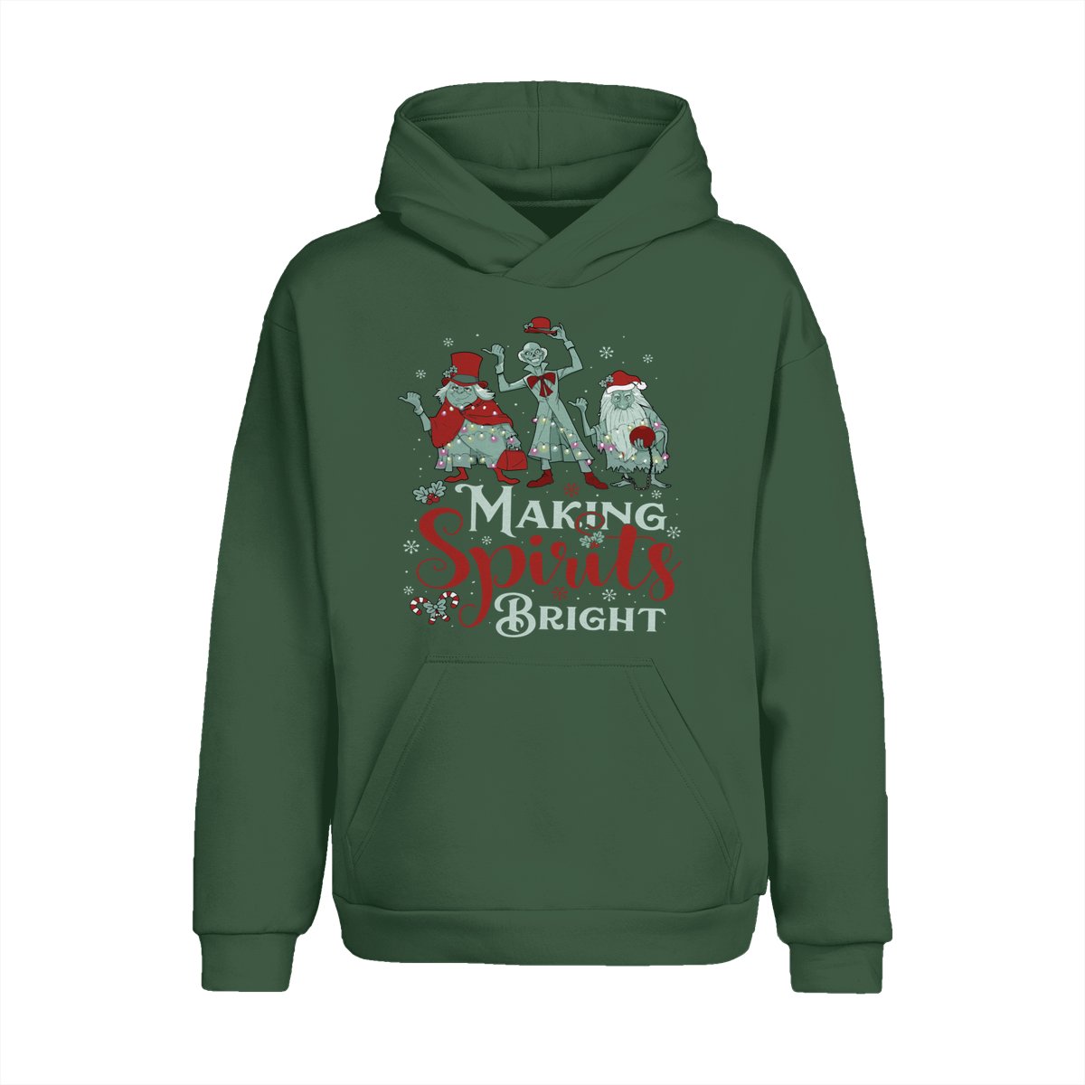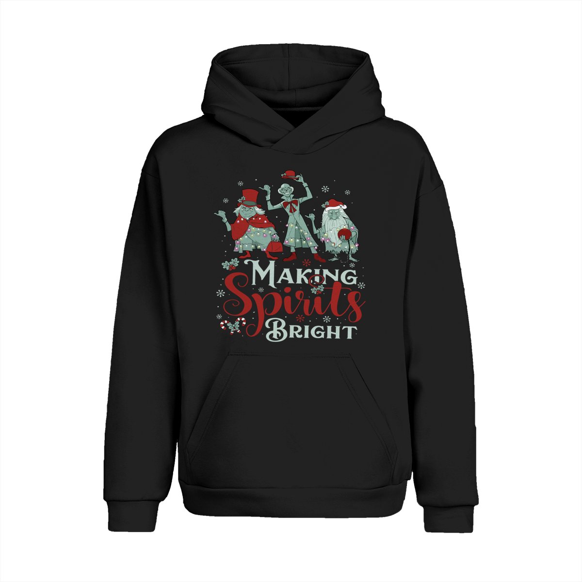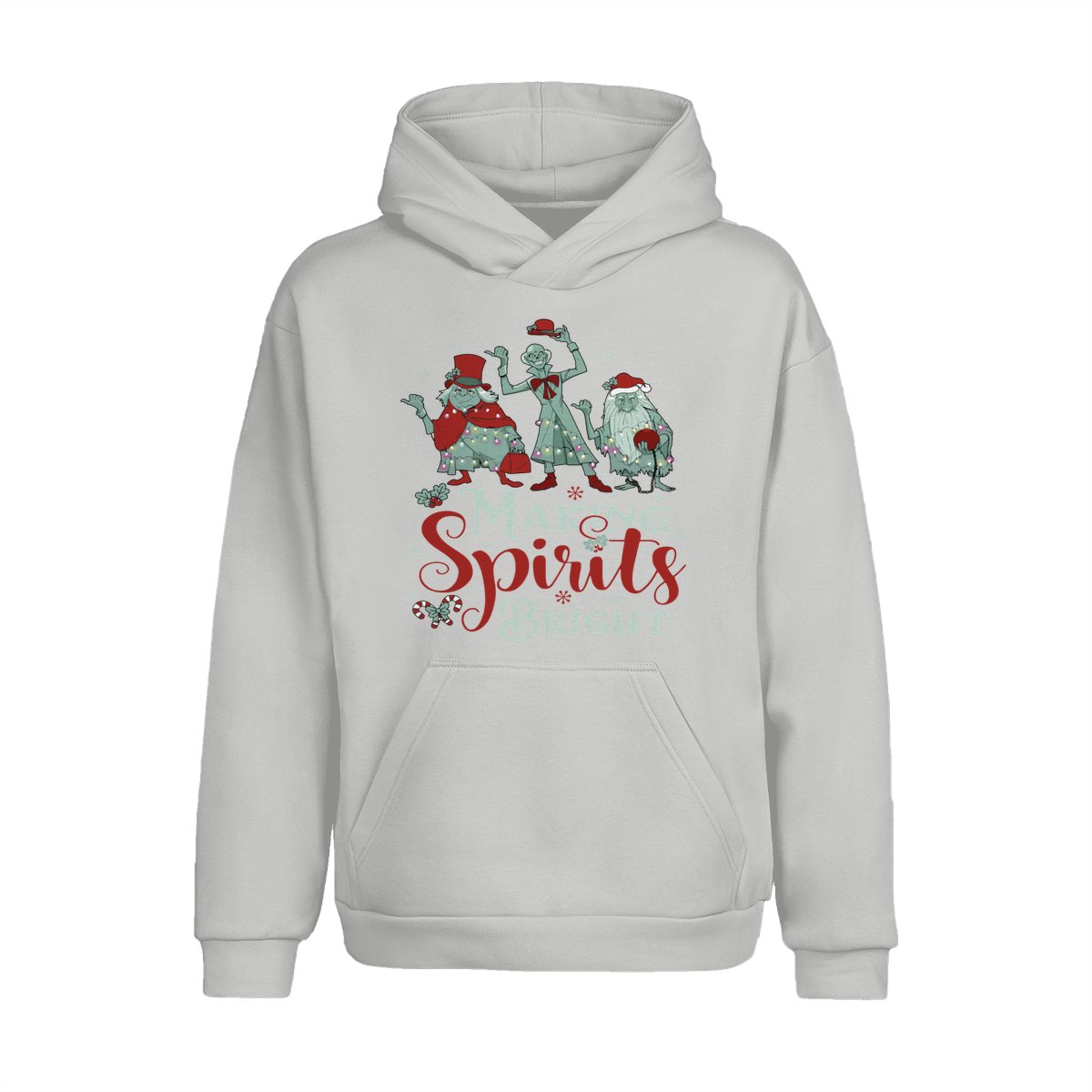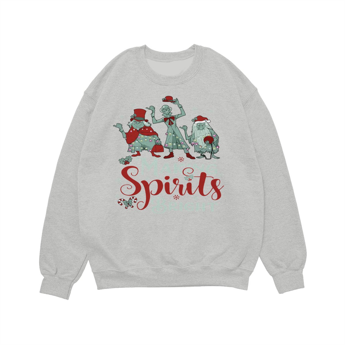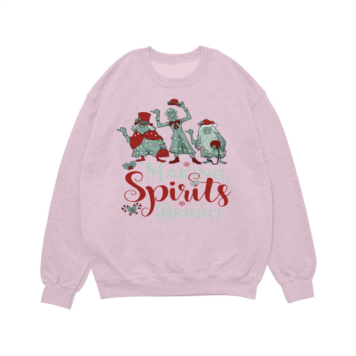 Vintage Making Spirits Bright Hitchhiking Ghost Sweatshirt, Santa Hat Merry Christmas Haunted Mansion Shirt, Xmas Party T-Shirt, Xmas Holiday Apparel, Gift for Him Her Crewneck Streetwear Menswear Top