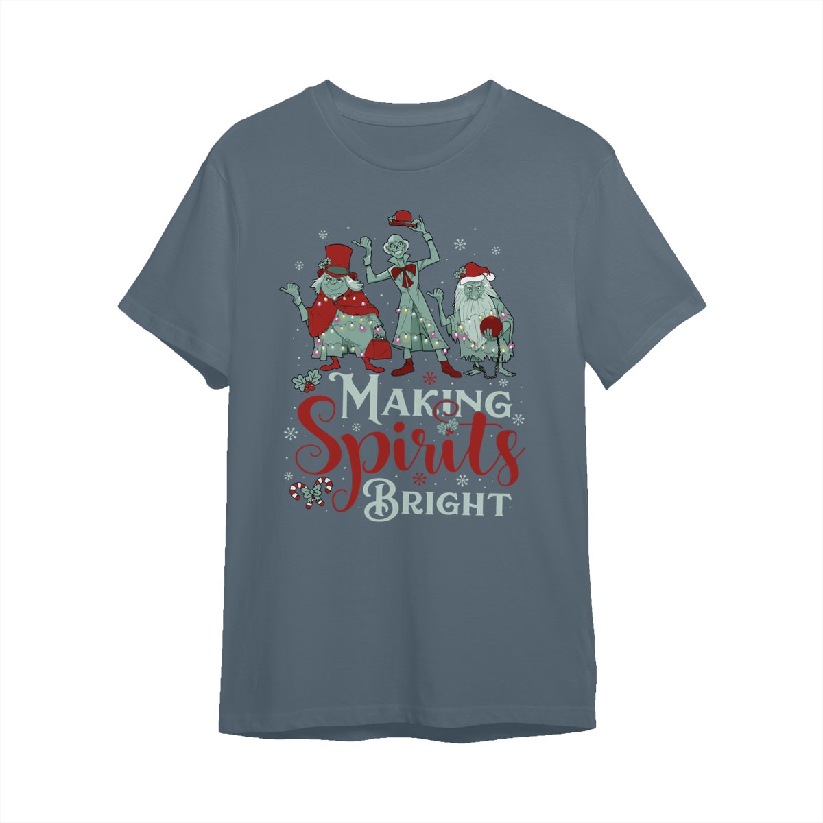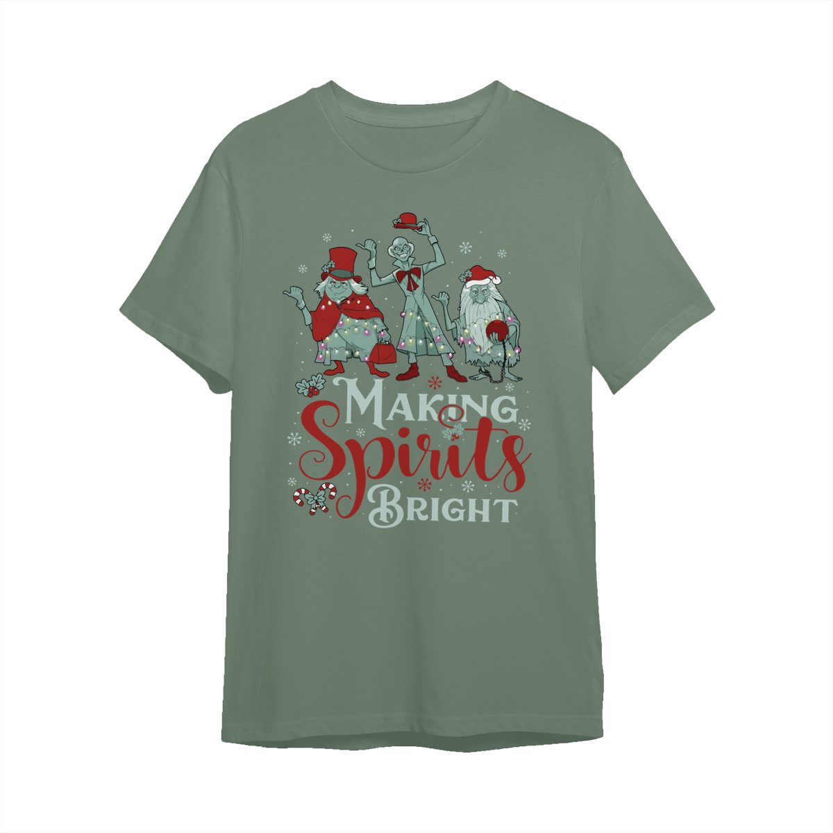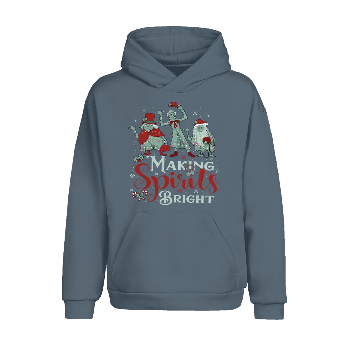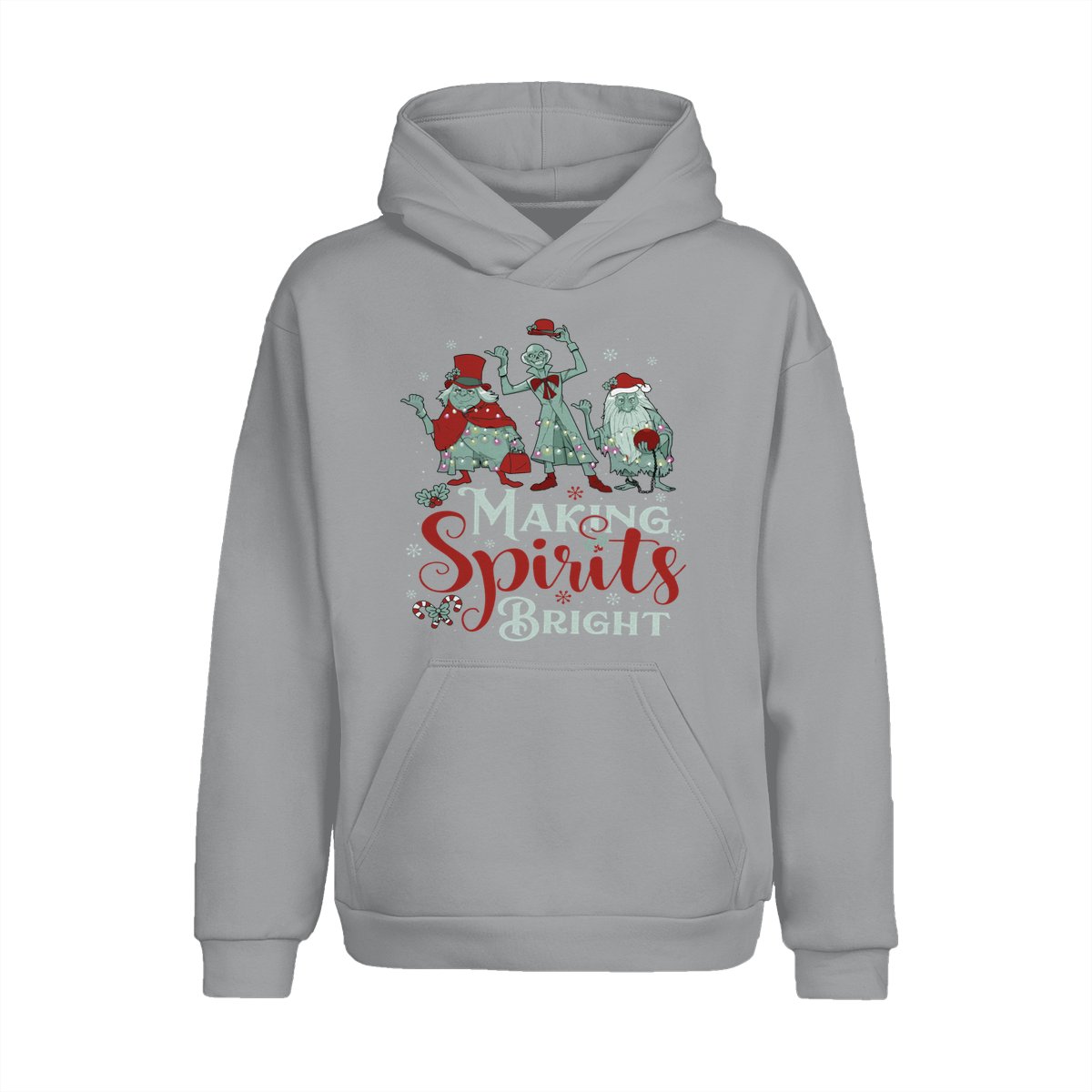 Vintage Making Spirits Bright Hitchhiking Ghost Sweatshirt, Santa Hat Merry Christmas Haunted Mansion Shirt, Xmas Party T-Shirt, Xmas Holiday Apparel, Gift for Him Her Crewneck Streetwear Menswear Top
