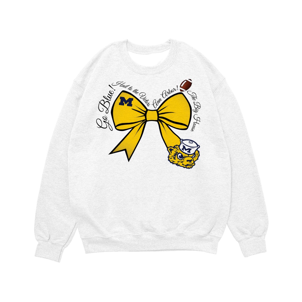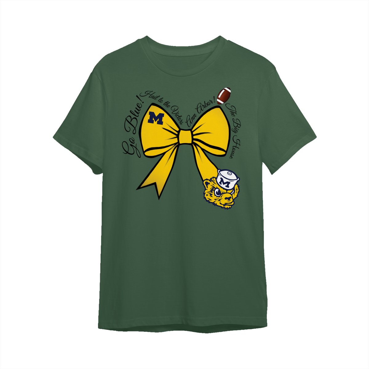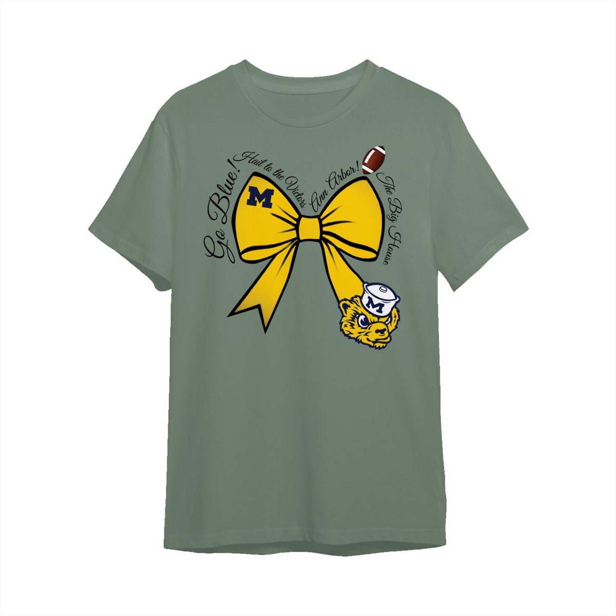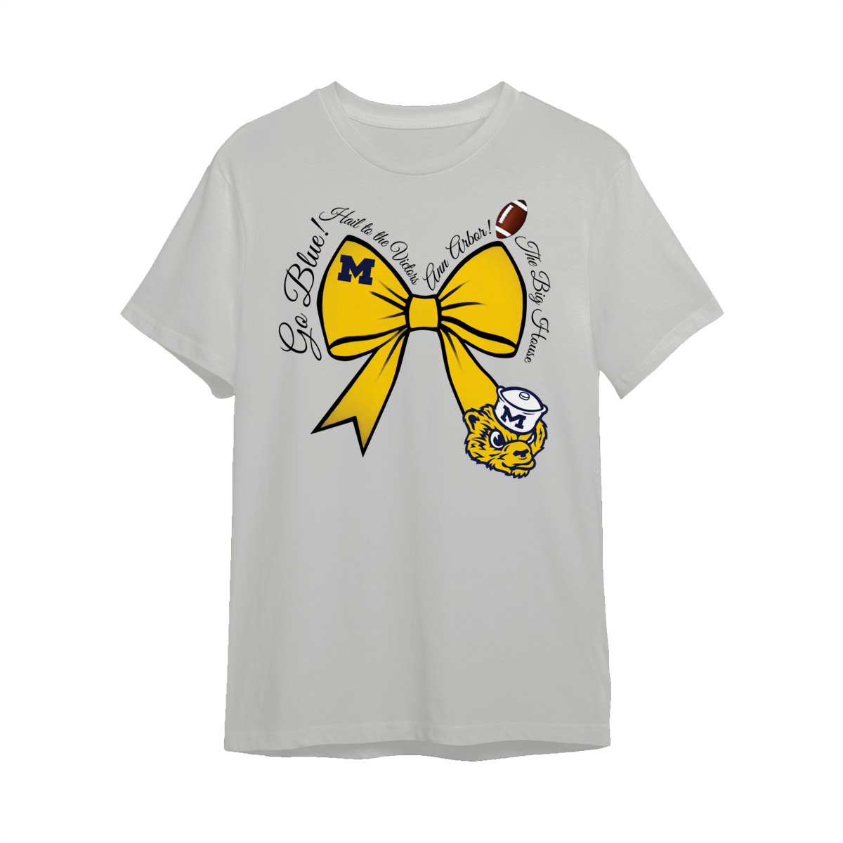 Vintage Mchigan College Football Bows Inspired White Shirt, Shirt for Fan, Pride of The Team, Shirt for Men and Women NCAA T-Shirt, Your College Gift Custom Team Cotton Gift