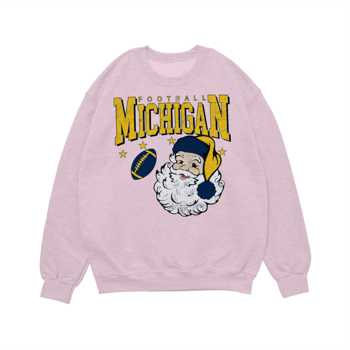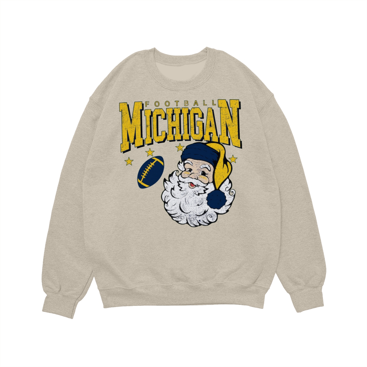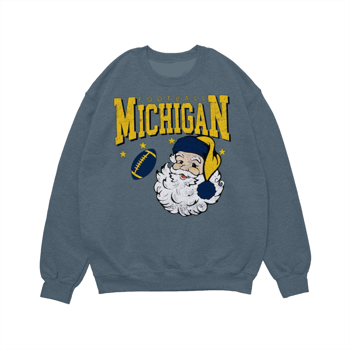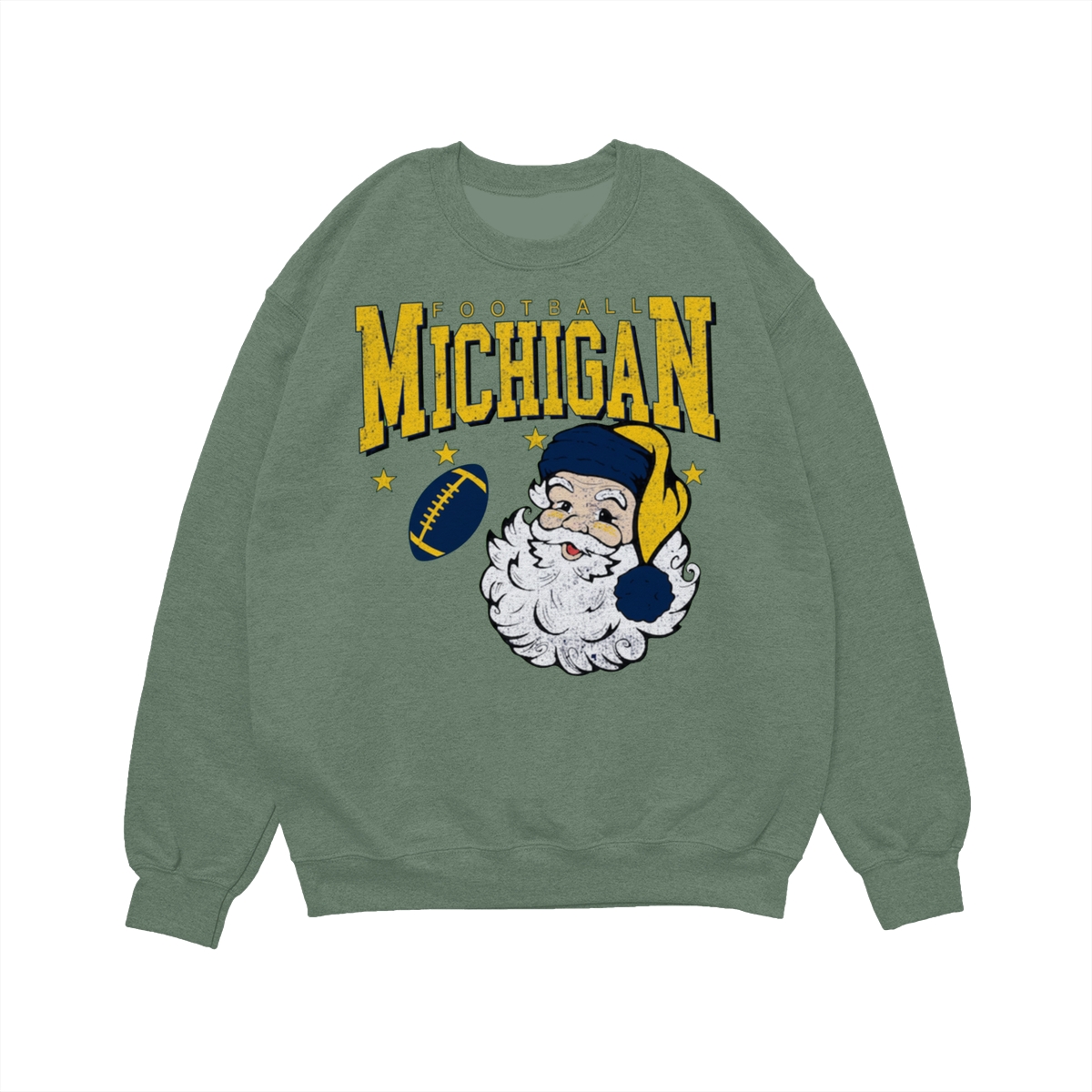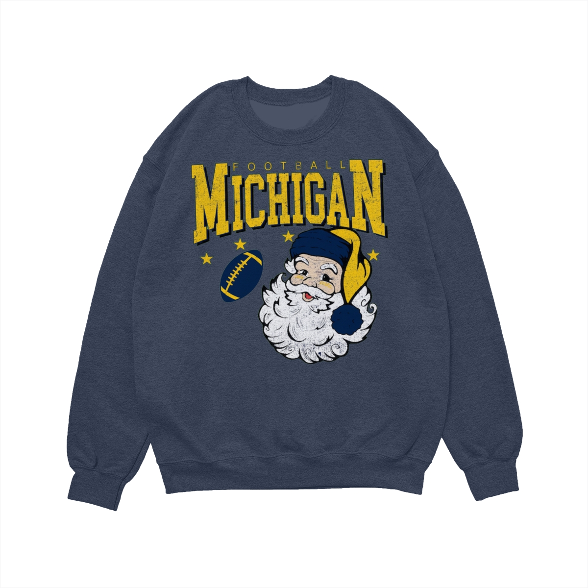 Vintage Michigan Football Santa Claus Sweatshirt, Holiday Crewneck