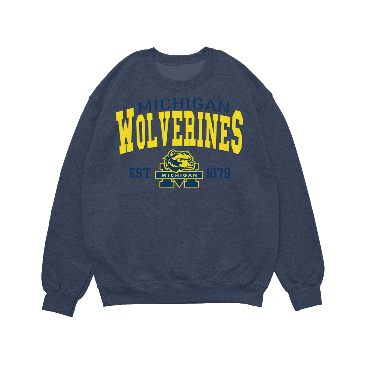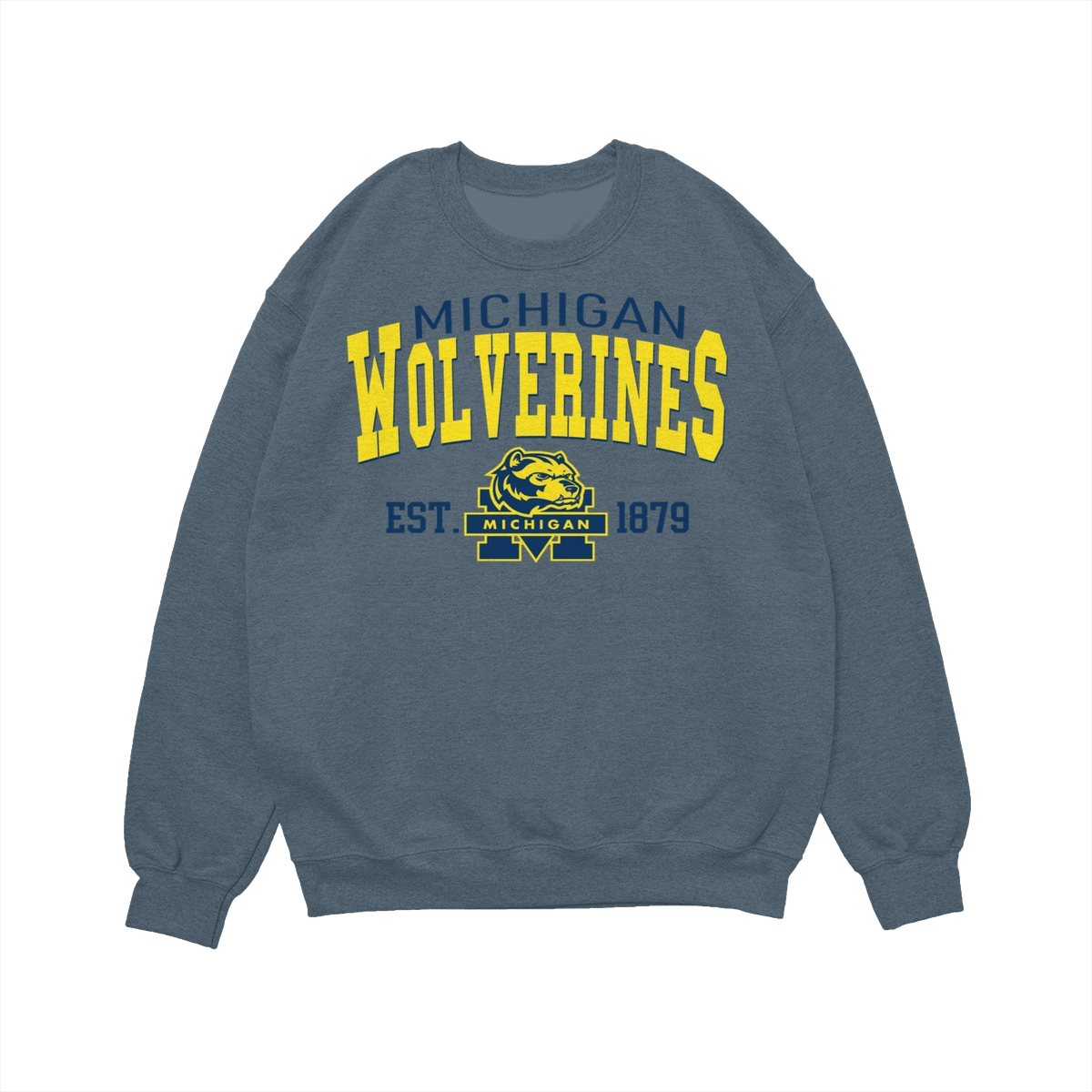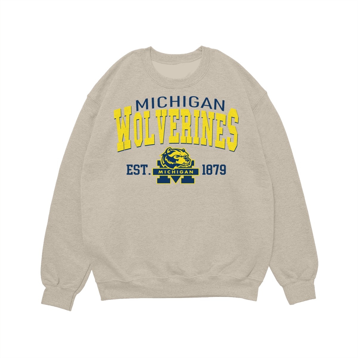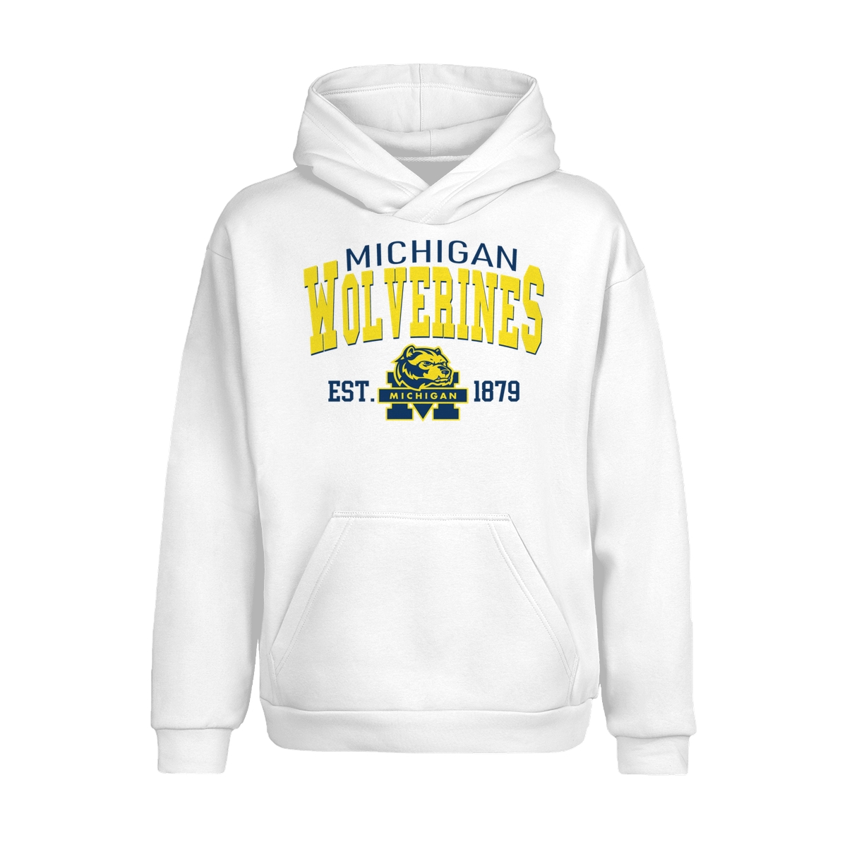 Vintage Michigan Wolverines Est 1879 Teams NCAA Collection Unisex Crewneck White Hoodie, Graphic College Team Collection Hoodie, Gift For NCAA Fans