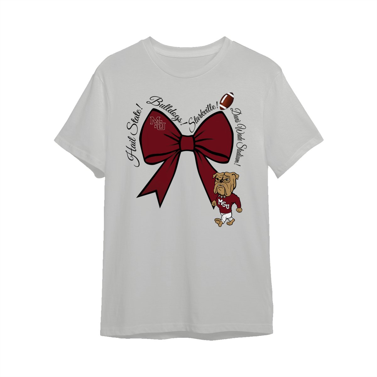 Vintage Mississippi State University College Football Bows Inspired White Shirt, Shirt for Fan, Pride of The Team, Shirt for Men and Women NCAA T-Shirt, Your College Gift Custom Team Cotton Gift