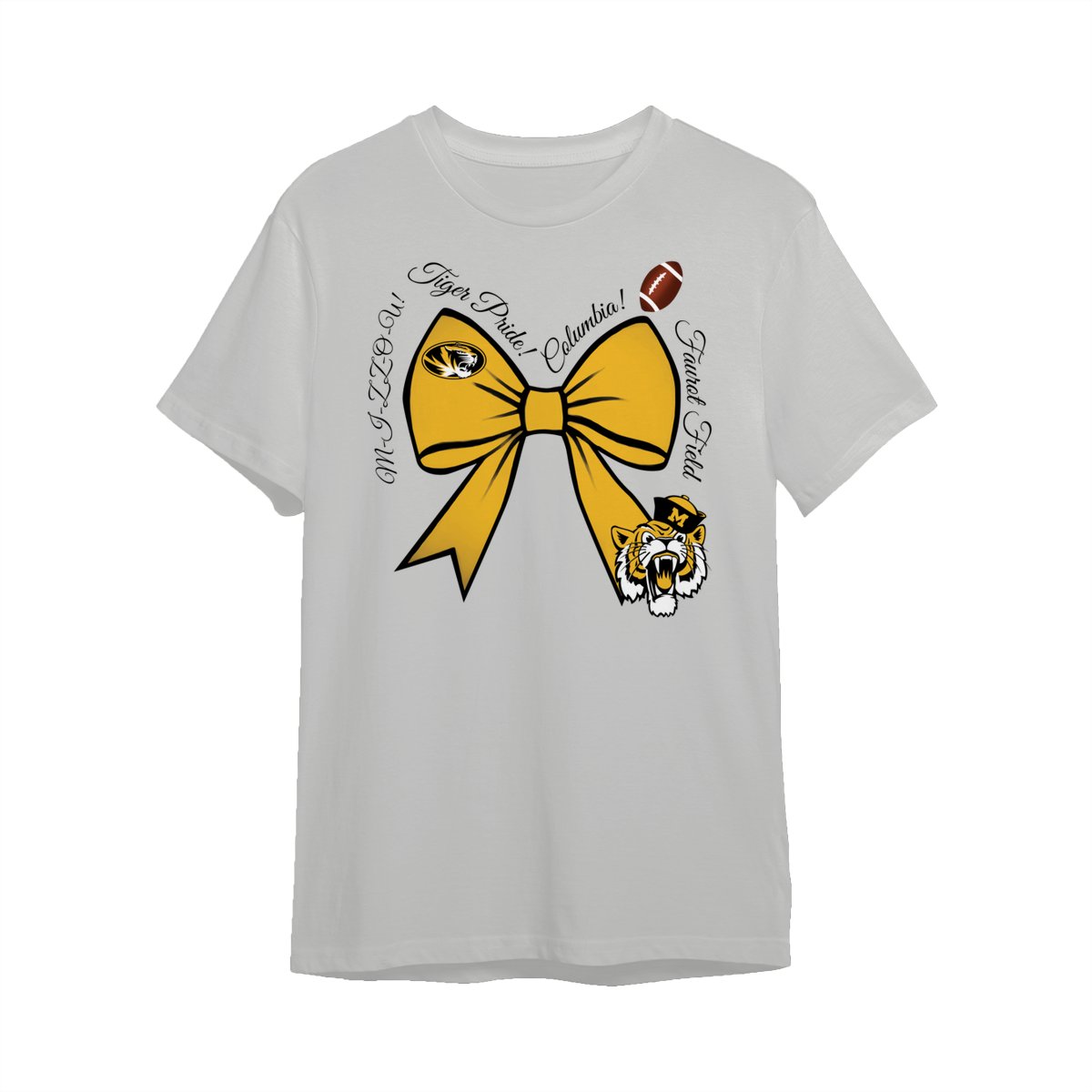 Vintage Missouri Tigers College Football Bows Inspired White Shirt, Shirt for Fan, Pride of The Team, Shirt for Men and Women NCAA T-Shirt, Your College Gift Custom Team Cotton Gift