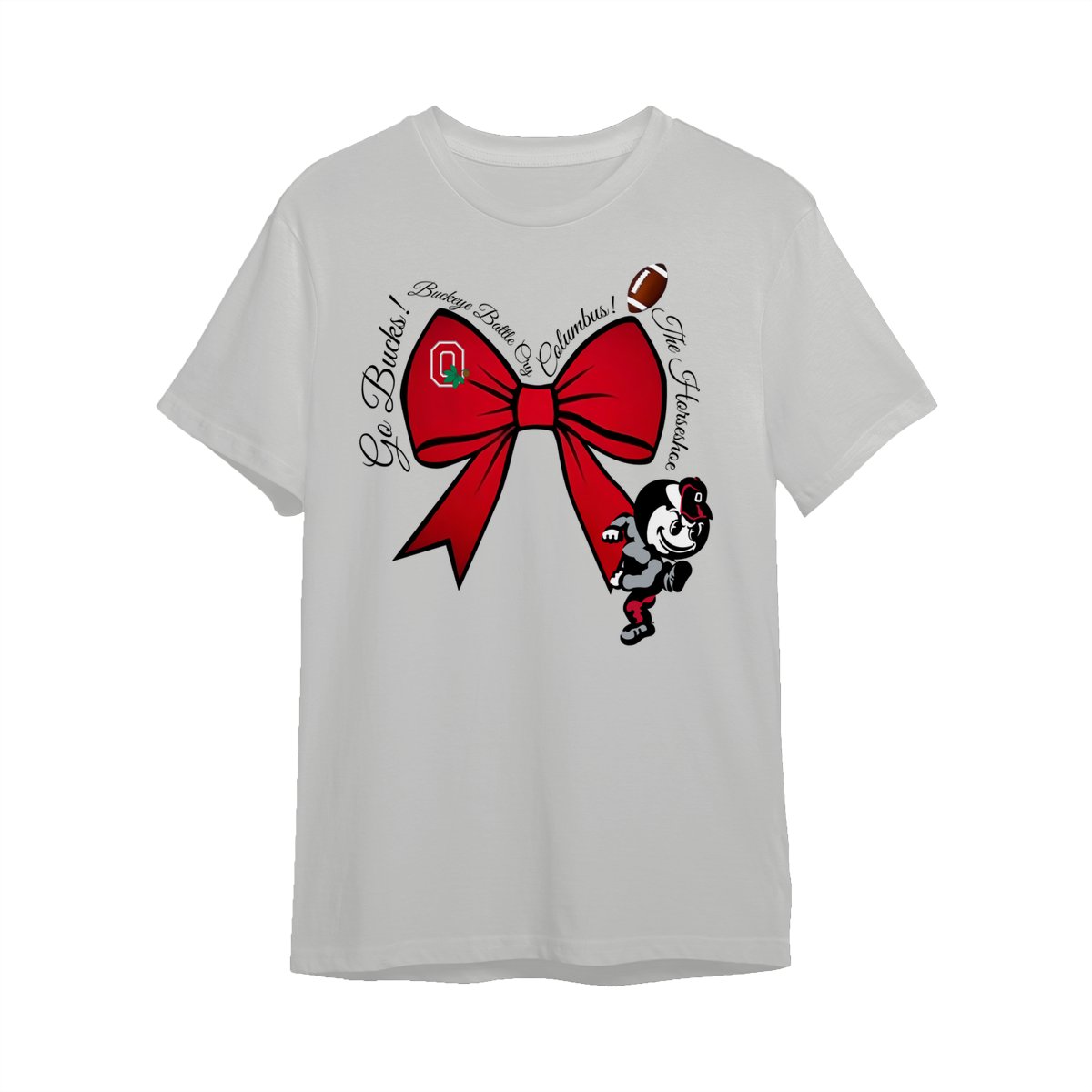 Vintage Ohio Buckeye College Football Bows Inspired White Shirt, Shirt for Fan, Pride of The Team, Shirt for Men and Women NCAA T-Shirt, Your College Gift Custom Team Cotton Gift