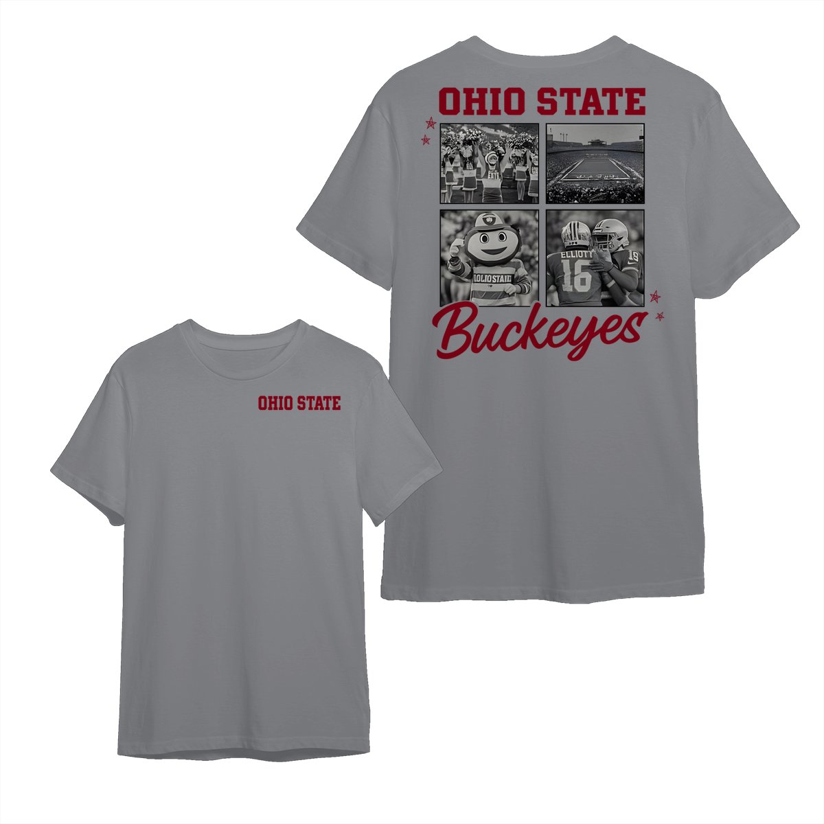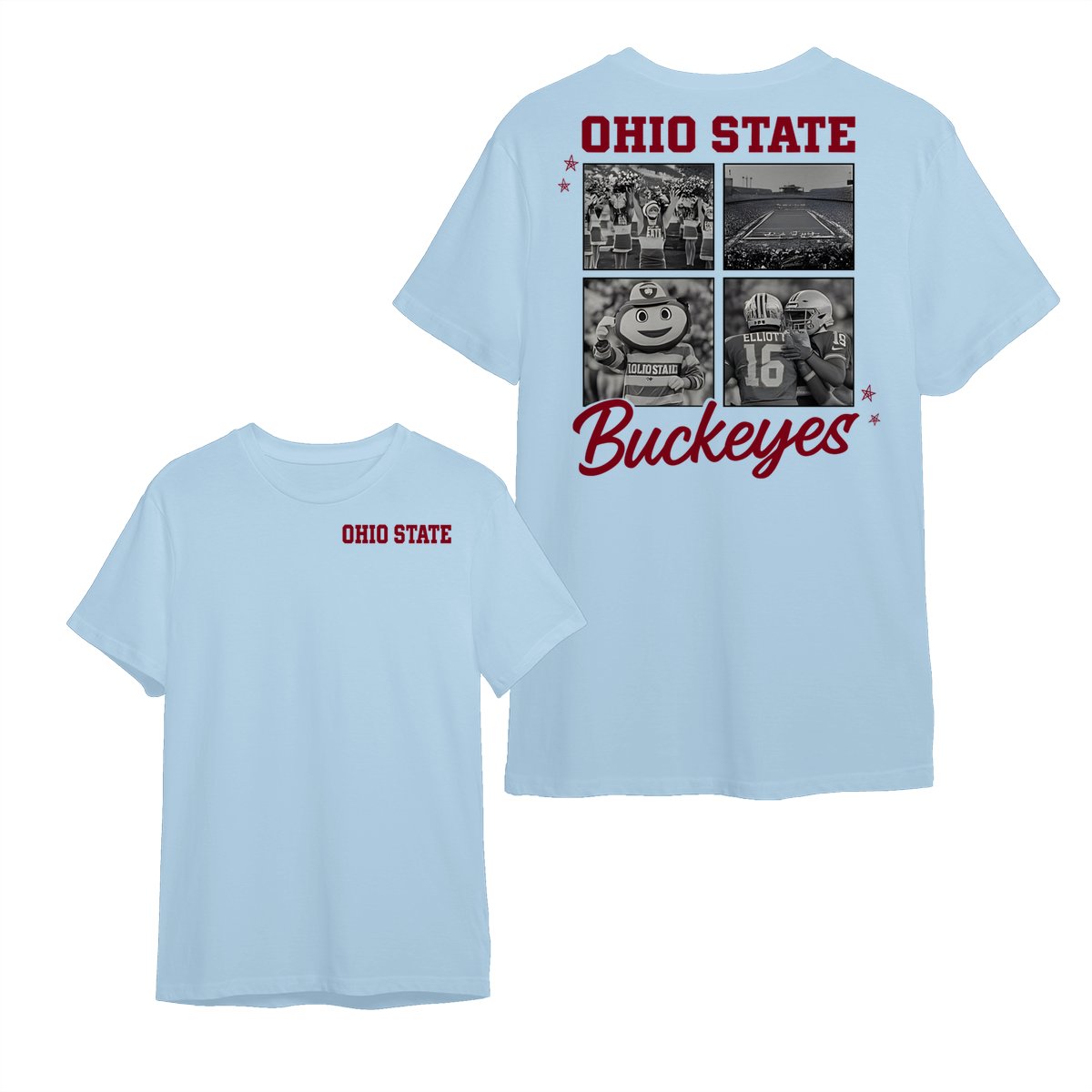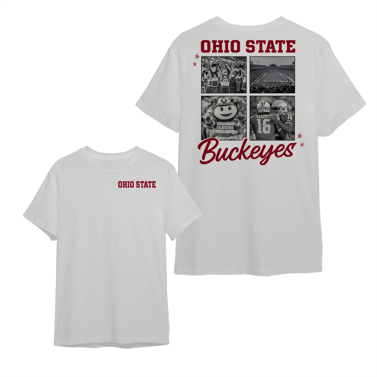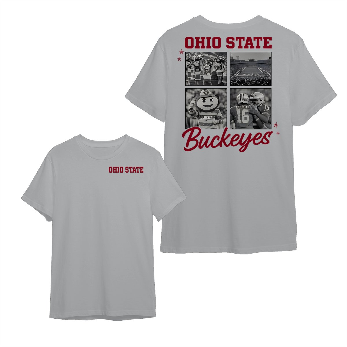 Vintage Ohio State College Football Collage T-Shirt, Front and Back Graphic Tee, Game Day Spirit Top, Retro Sports Fan Gift for Men