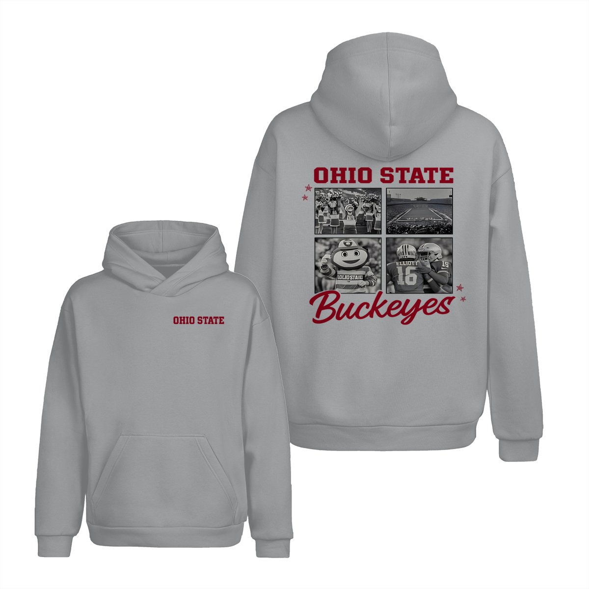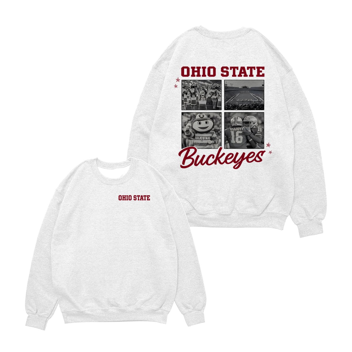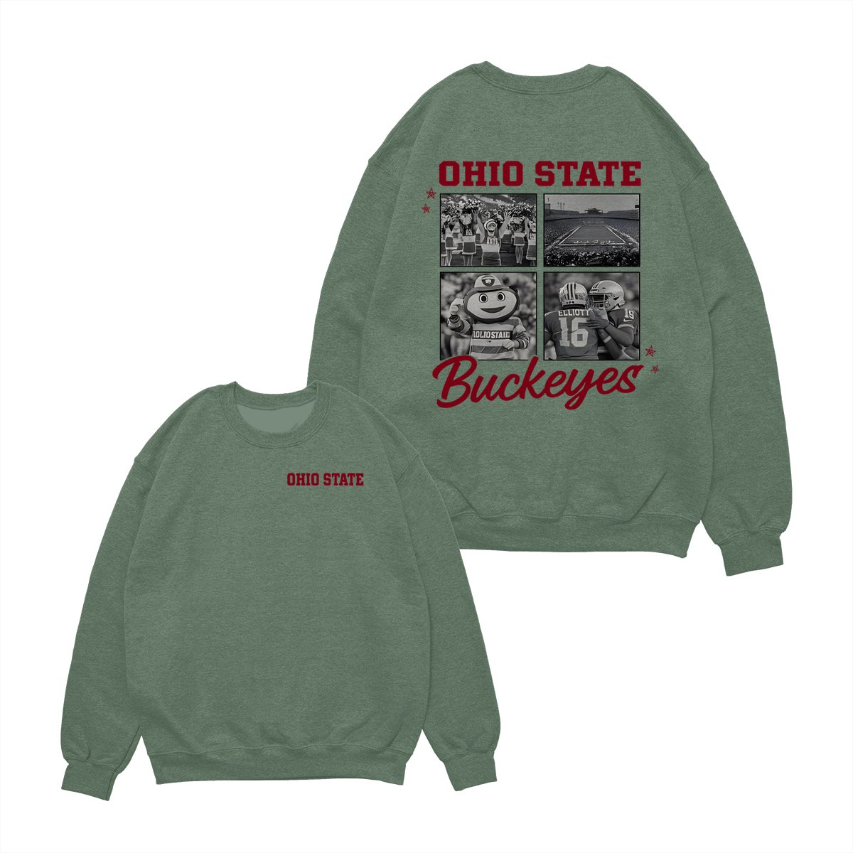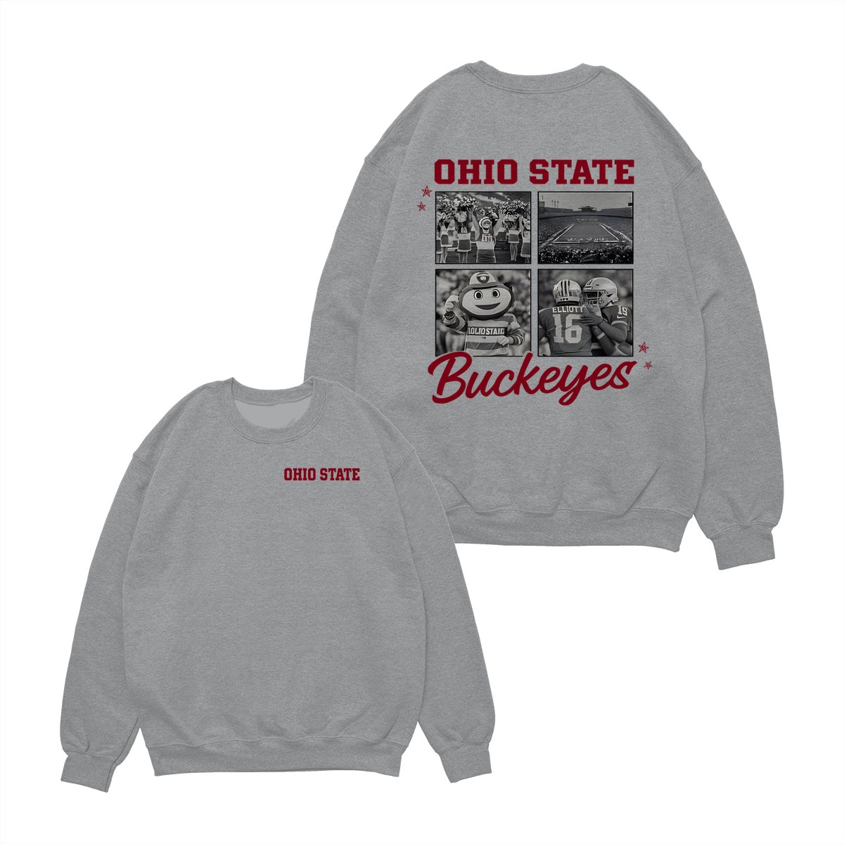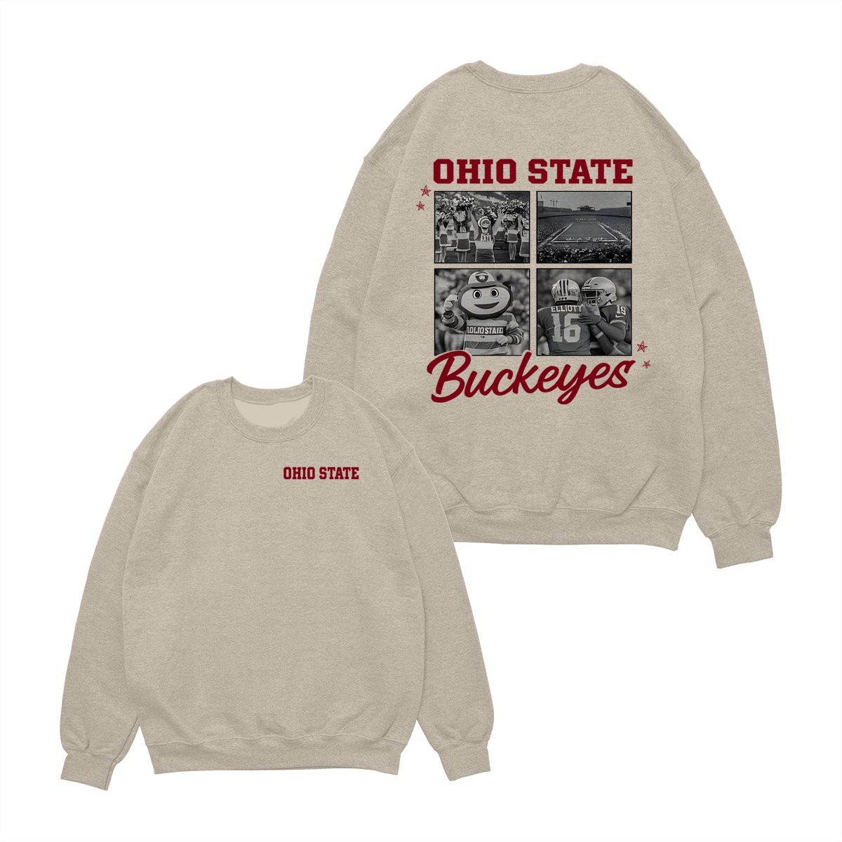 Vintage Ohio State College Football Collage T-Shirt, Front and Back Graphic Tee, Game Day Spirit Top, Retro Sports Fan Gift for Men