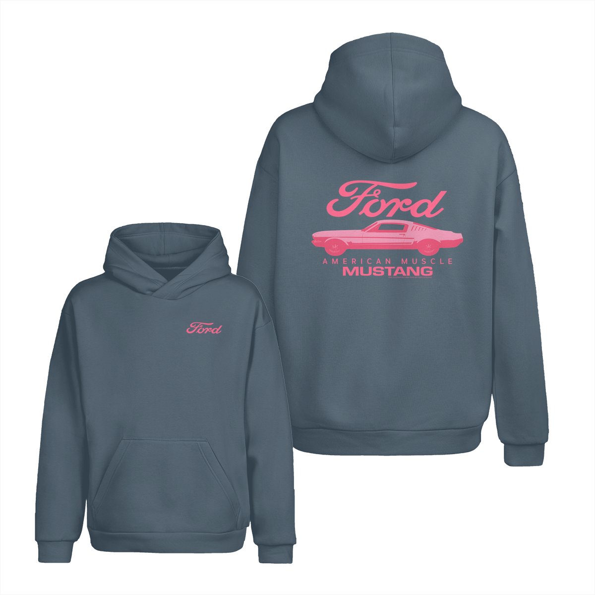 Vintage Pink Mustang Ford 2 Sided TShirt/Sweatshirt/Hoodie- American Muscle Car Graphic Tee for Car Lovers, Outfit For Men and Women