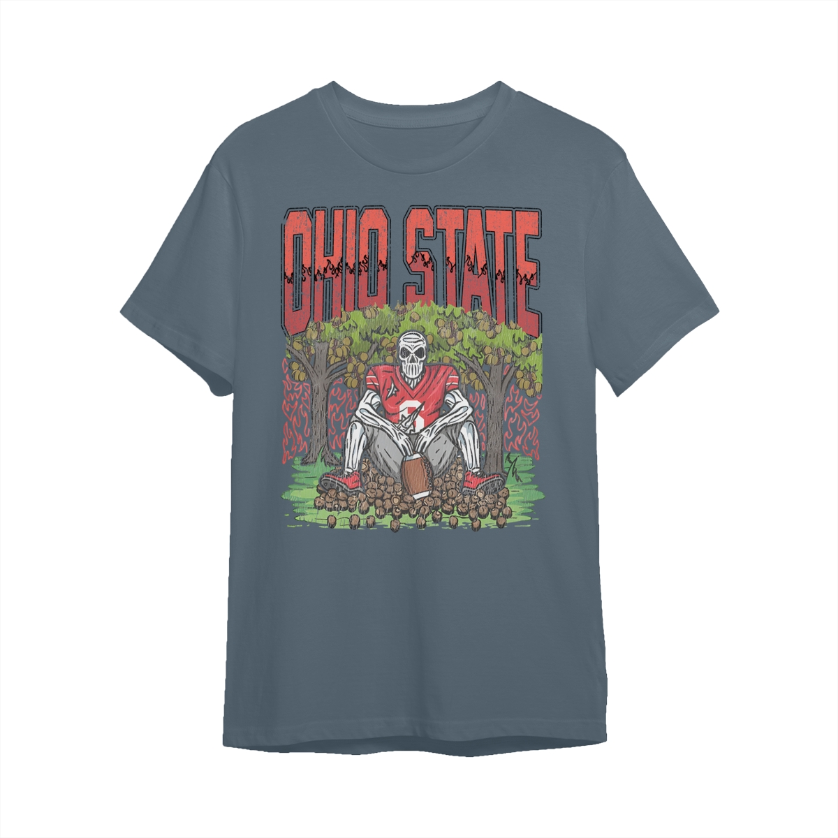 Vintage Skeleton Ohio State Teams NCAA Football Tshirt, Graphic Team College Collection tshirt, Gift For NCAA Fans Graphic Tee Crew Neck Halloween Unisex-Tshirt Hand-Drawn T-Shirt Cotton Top