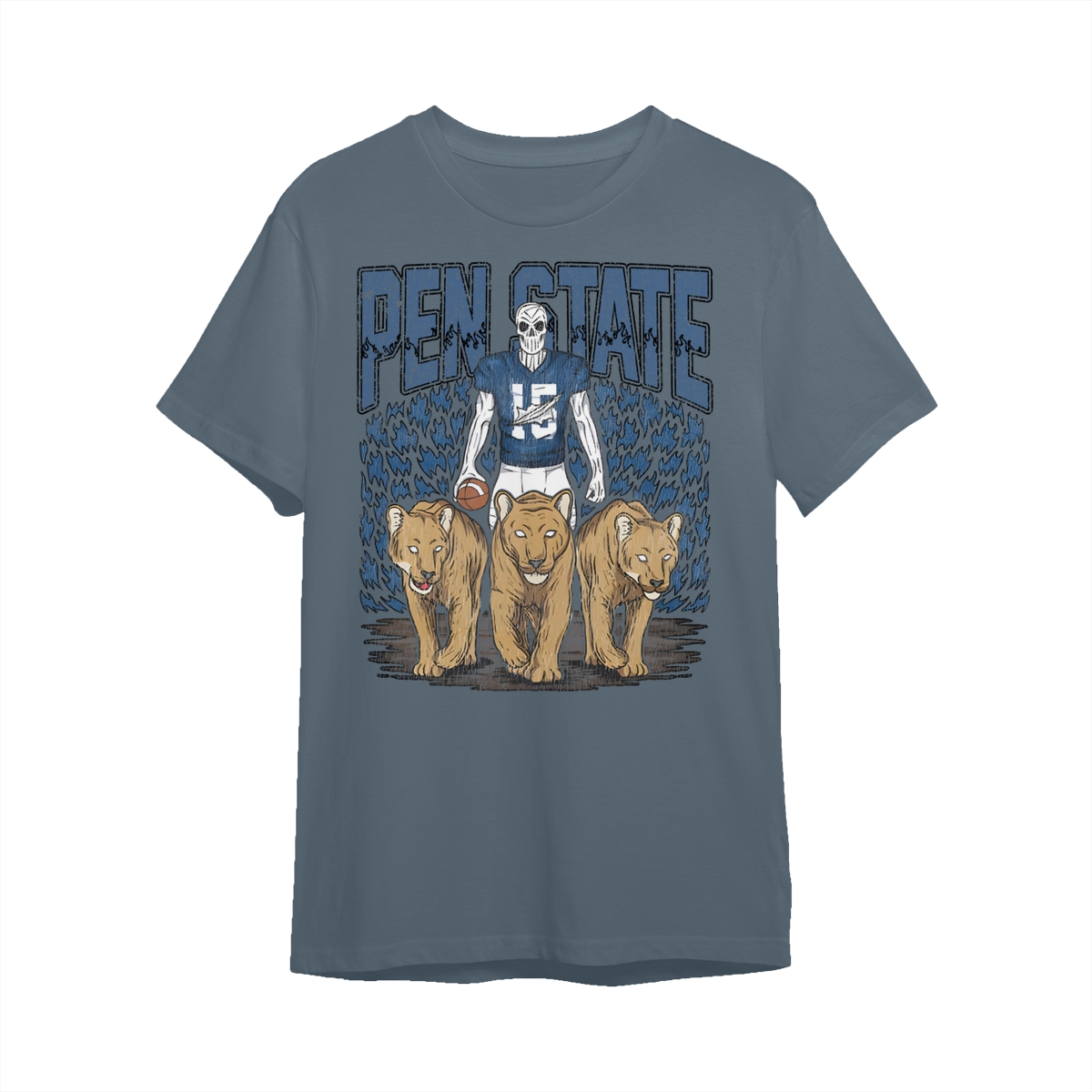 Vintage Skeleton Pen State Teams NCAA Football Tshirt, Graphic Team College Collection tshirt, Gift For NCAA Fans Graphic Tee Crew Neck Halloween Unisex-Tshirt Hand-Drawn T-Shirt Cotton Top
