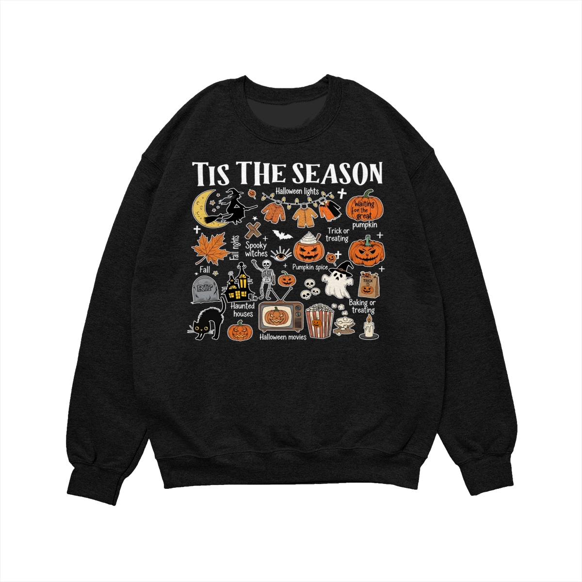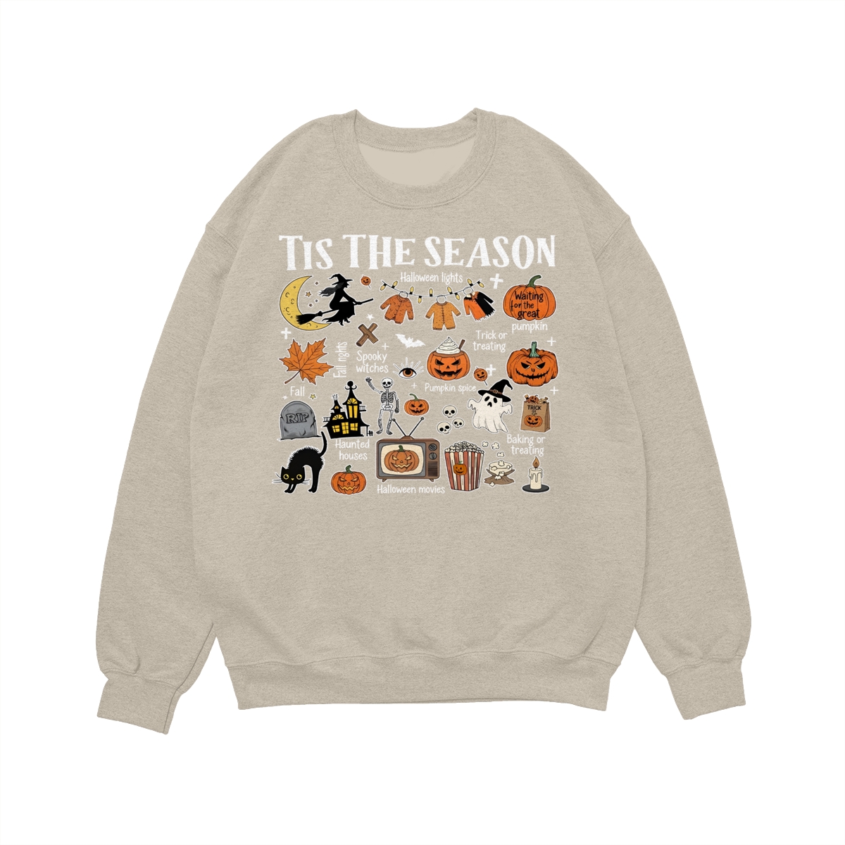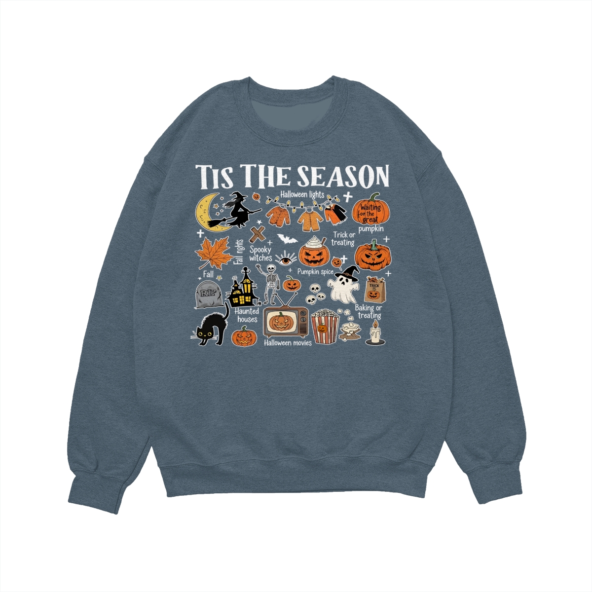 Vintage Tis The Season T-Shirt – Sweatshirt – Hoodie, Retro Halloween Aesthetic Tee, Spooky Season Graphic Top, Women’s Fall Halloween Shirt, Cozy Vintage-Inspired Crewneck, Cute Pumpkin & Ghost Design, Halloween Gift for Her or Him