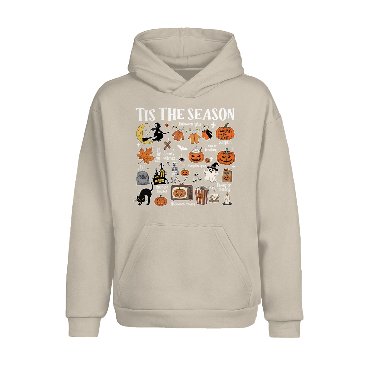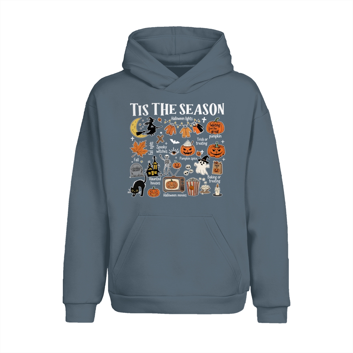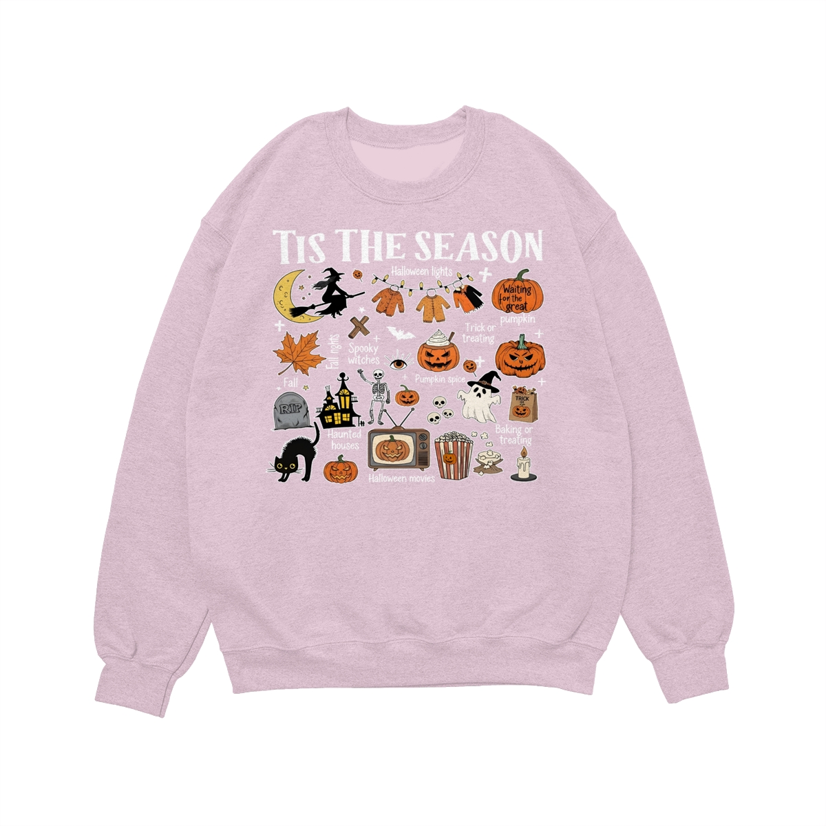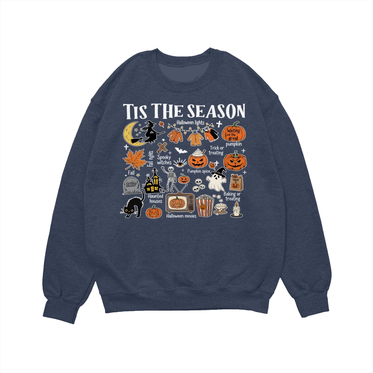 Vintage Tis The Season T-Shirt – Sweatshirt – Hoodie, Retro Halloween Aesthetic Tee, Spooky Season Graphic Top, Women’s Fall Halloween Shirt, Cozy Vintage-Inspired Crewneck, Cute Pumpkin & Ghost Design, Halloween Gift for Her or Him
