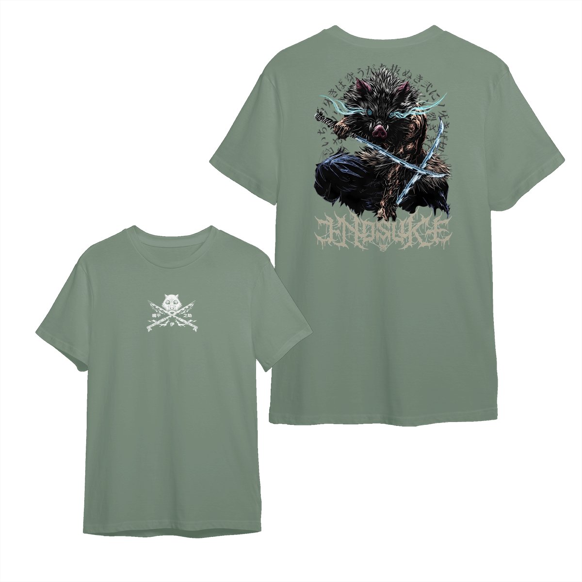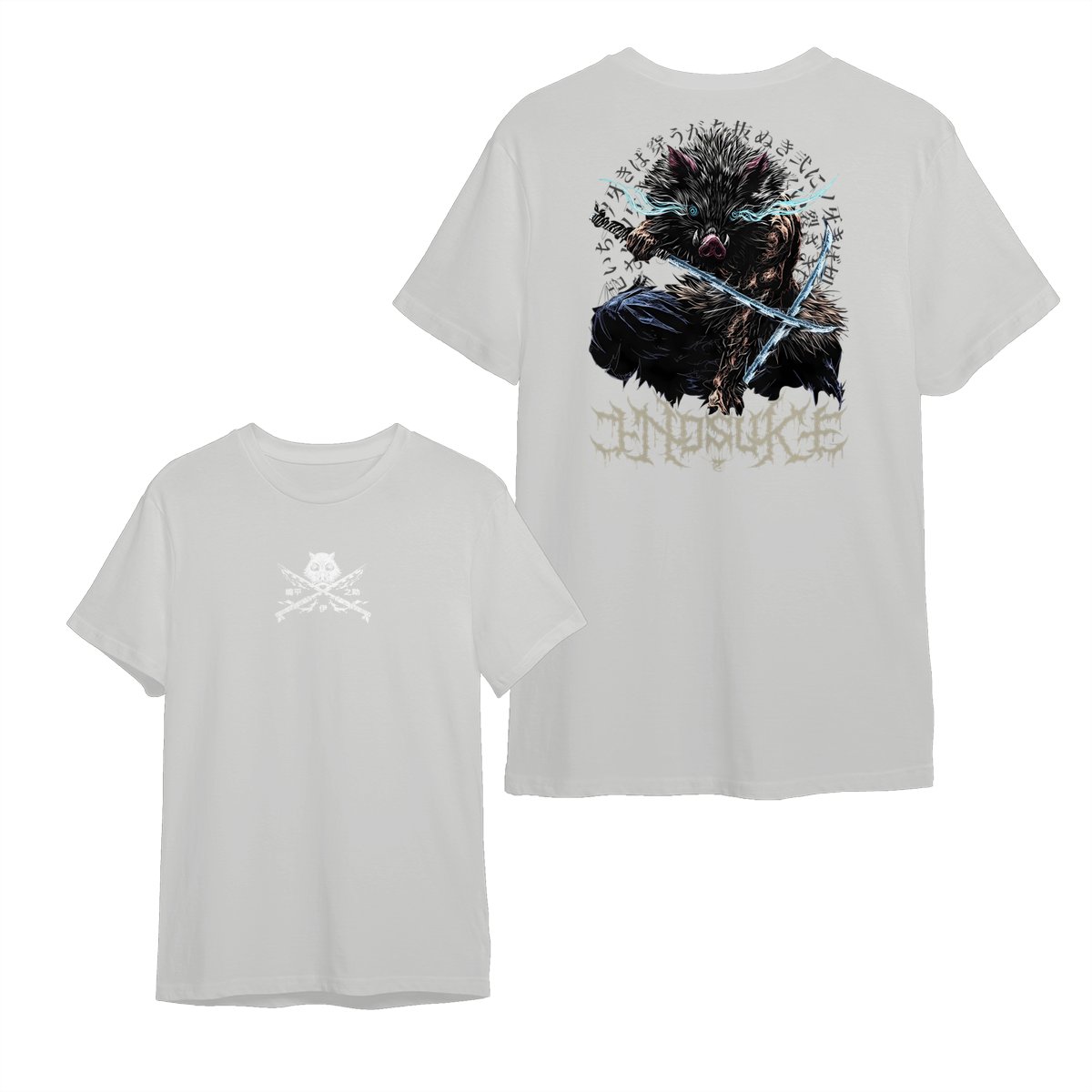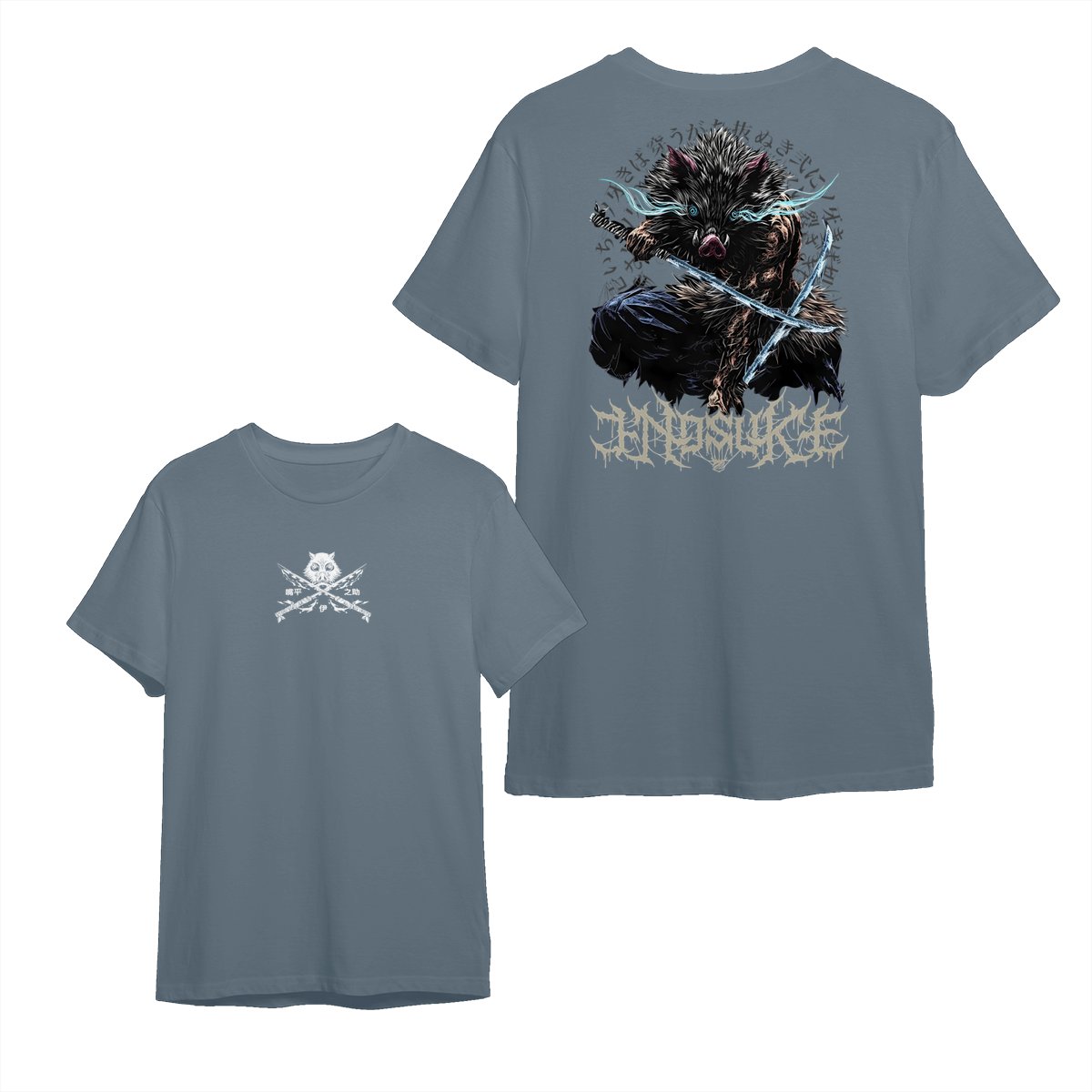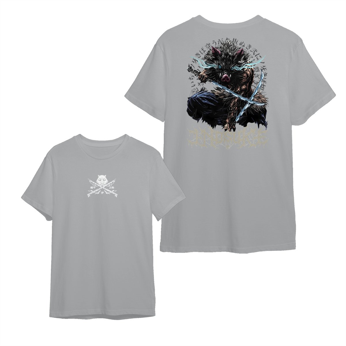 Vintage Washed Oversized Anime T-Shirt – Demon Slayer Inosuke Tee for Anime Fans & Outdoor Adventures