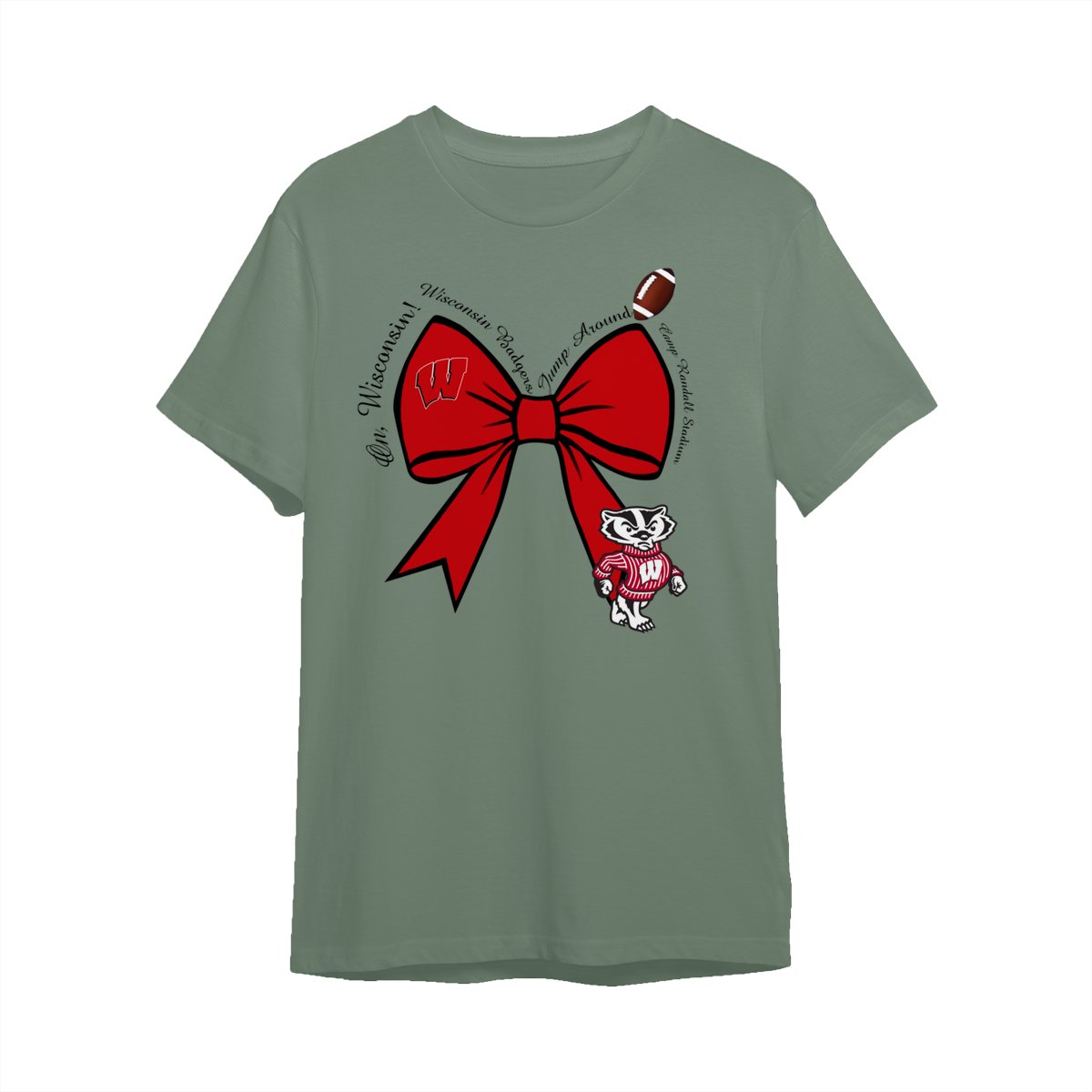 Vintage Wisconsin Badgers College Football Bows Inspired White Shirt, Shirt for Fan, Pride of The Team, Shirt for Men and Women NCAA T-Shirt, Your College Gift Custom Team Cotton Gift