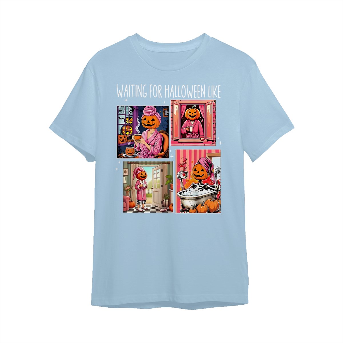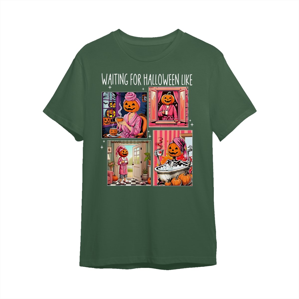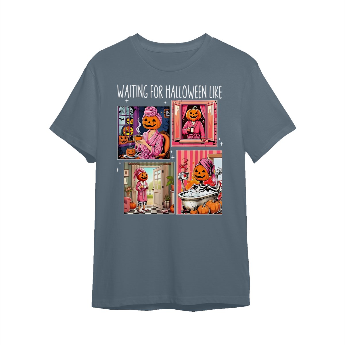 Waiting For Halloween Like Skeleton Pumpkin Halloween T-Shirt Unisex Shirt Comfy Soft Everyday Wear Cotton Top
