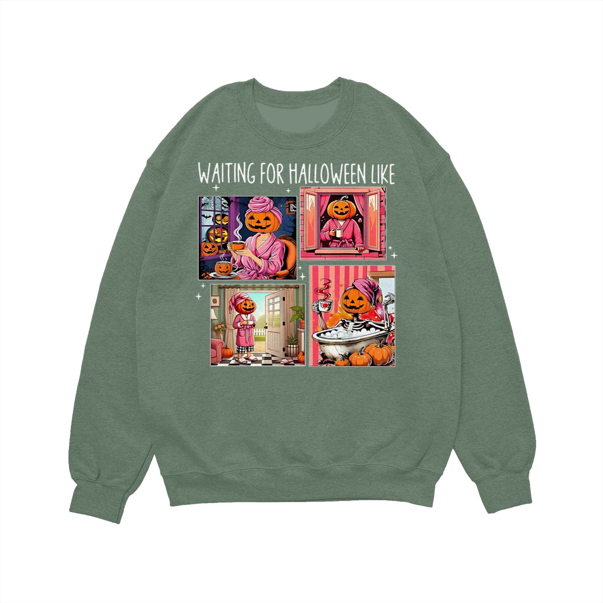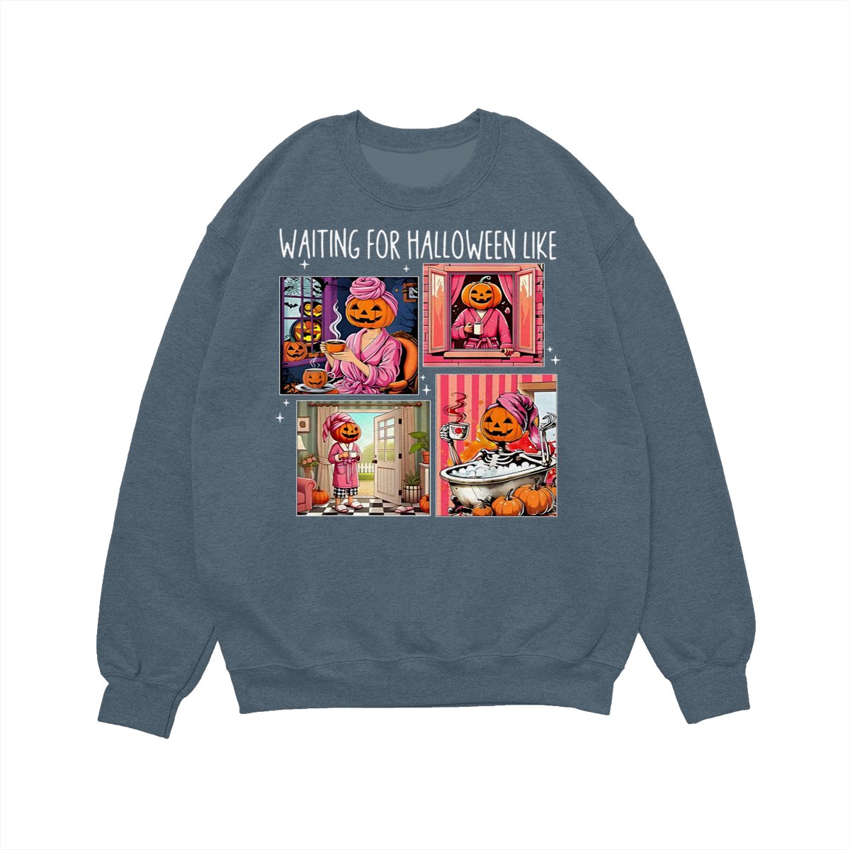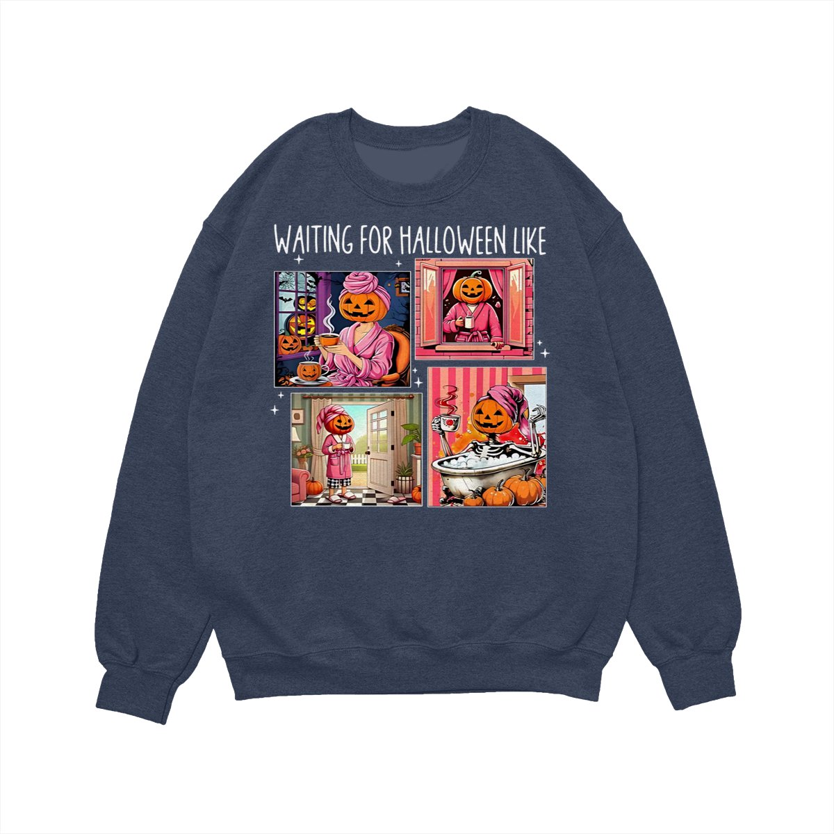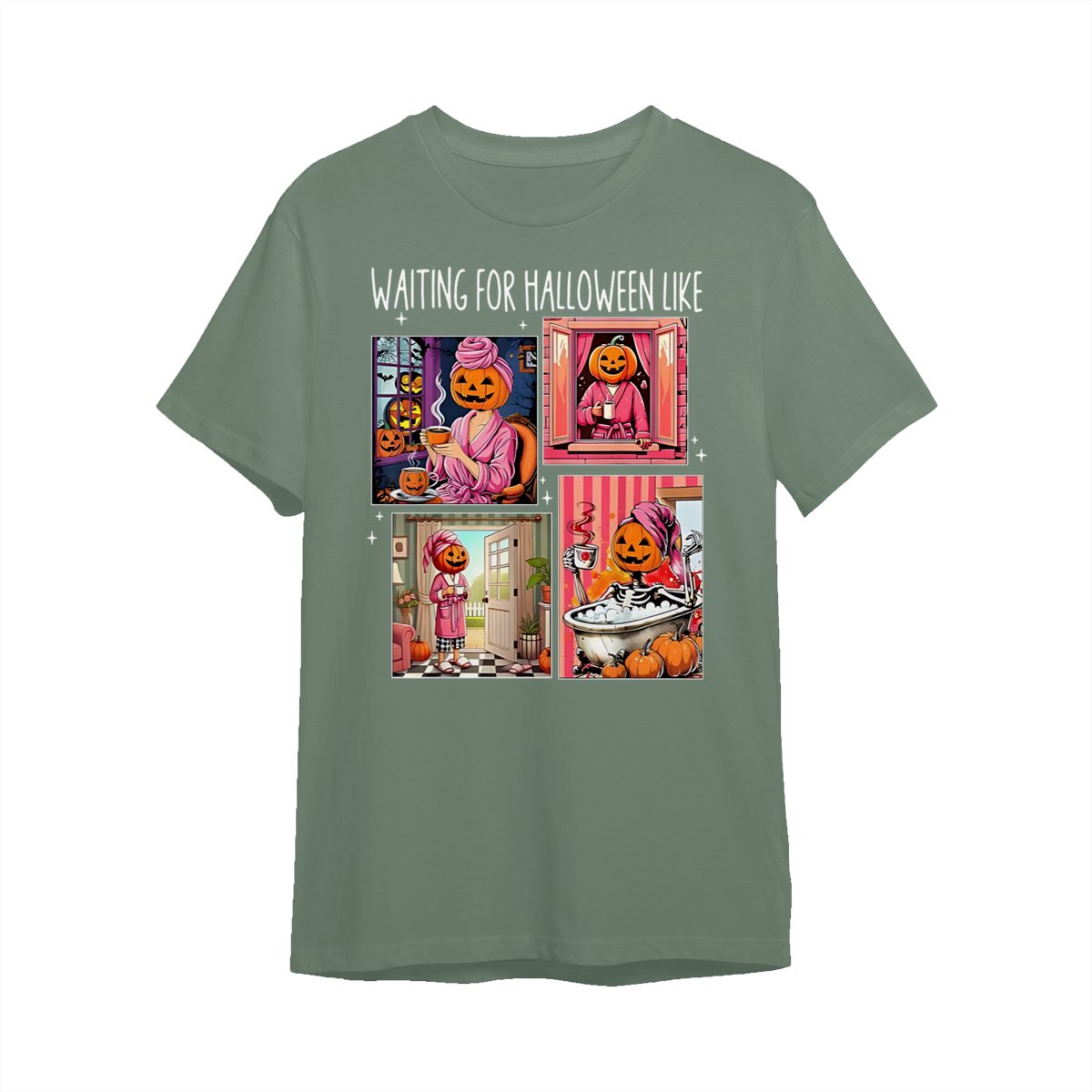 Waiting For Halloween Like Skeleton Pumpkin Halloween T-Shirt Unisex Shirt Comfy Soft Everyday Wear Cotton Top