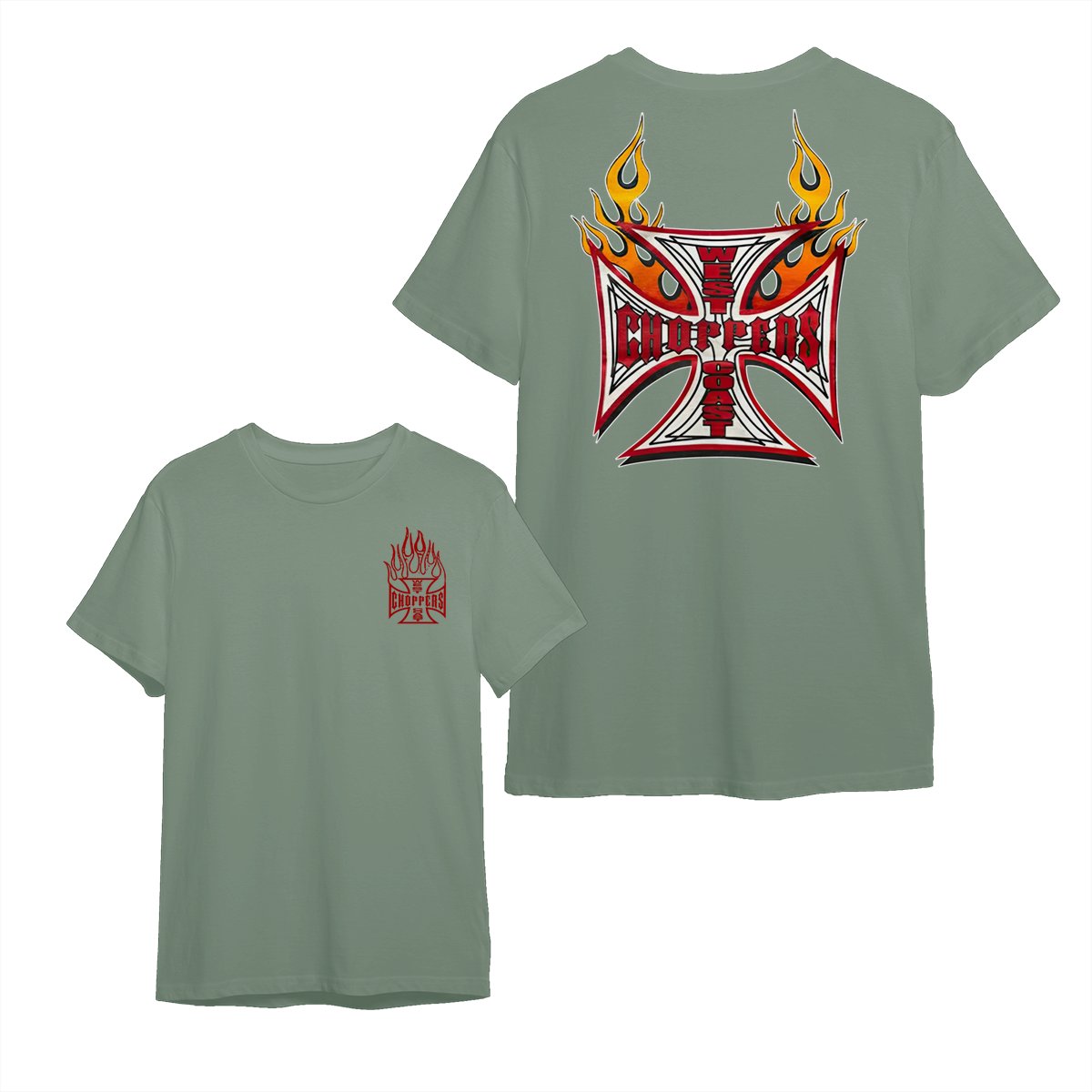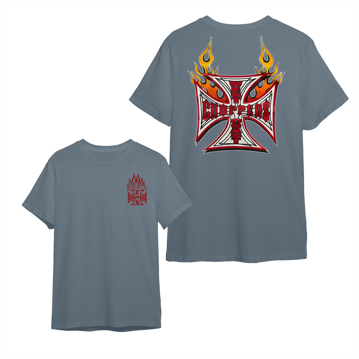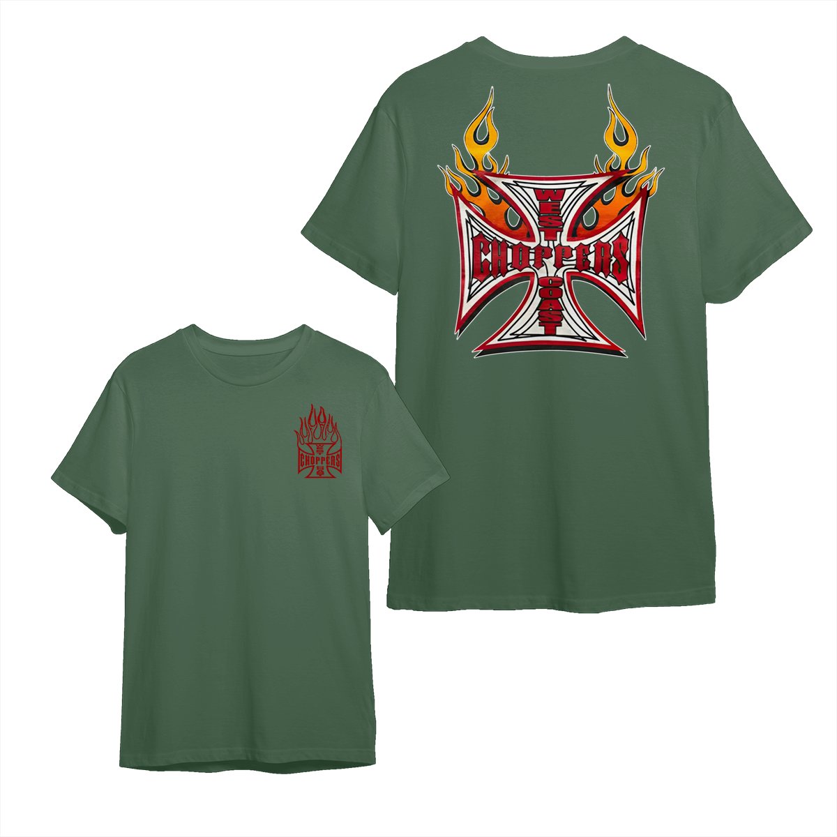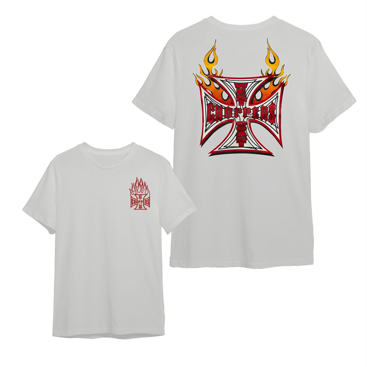 West Coast Choppers T-Shirt Featuring Flaming Iron Cross Logo Design on Back Soft Cotton Fabric Unisex Fit for Men and Women Ideal, for Women