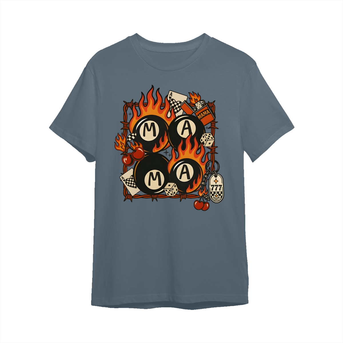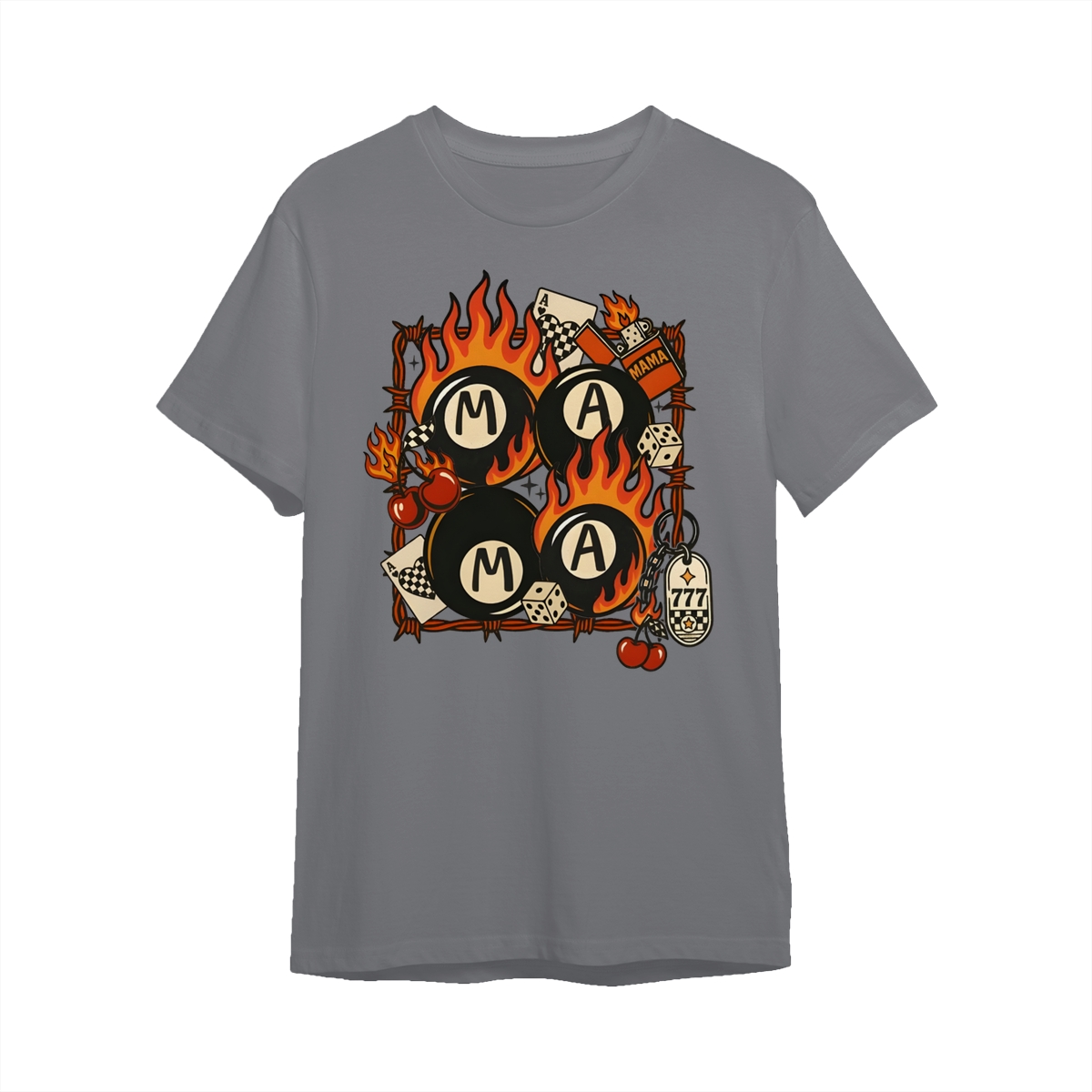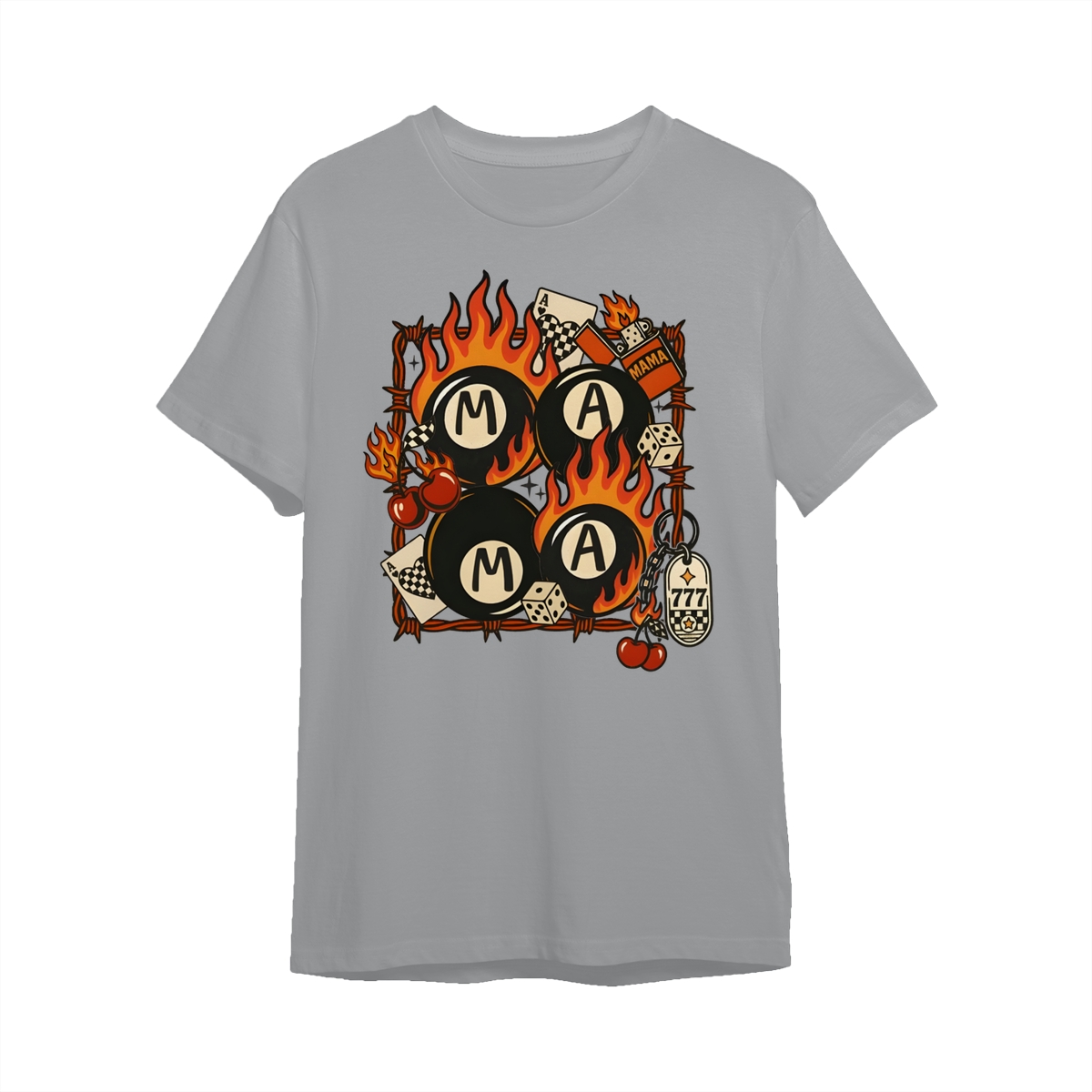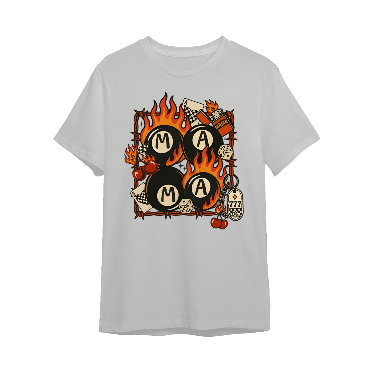 Western Mama Collage Shirt, Retro Lucky Western T-Shirt, Flaming 8 Ball Cherry Dice Tee, Unisex Western Grunge Shirt For Women