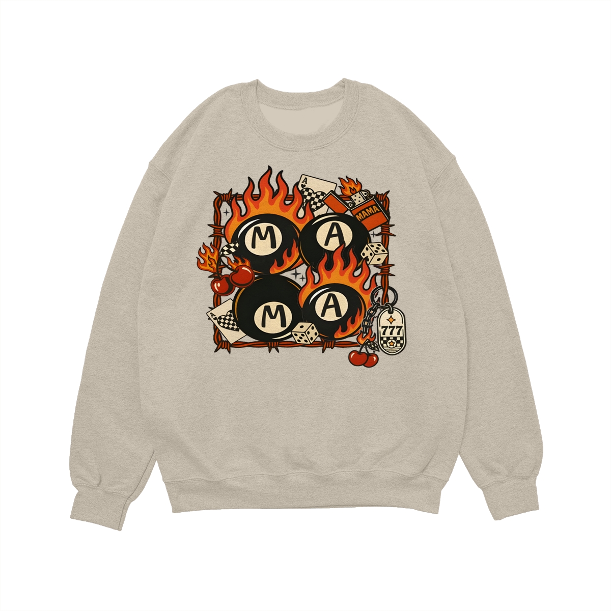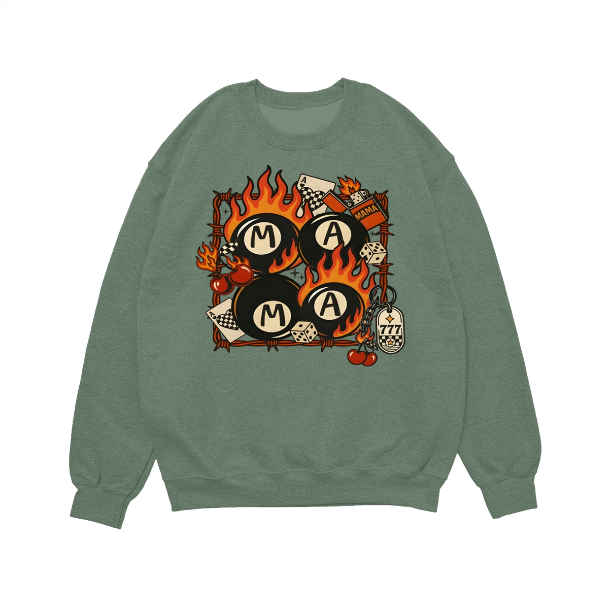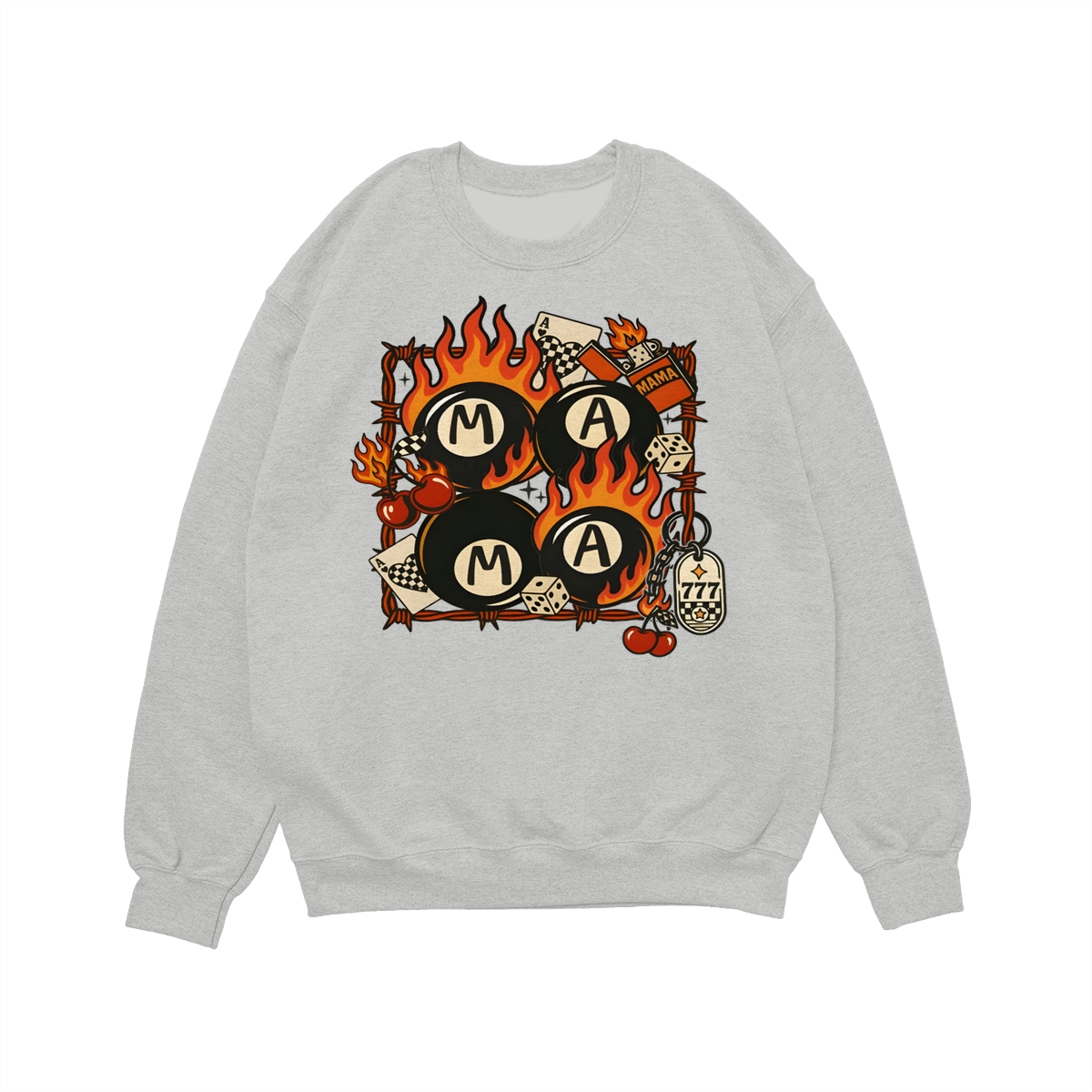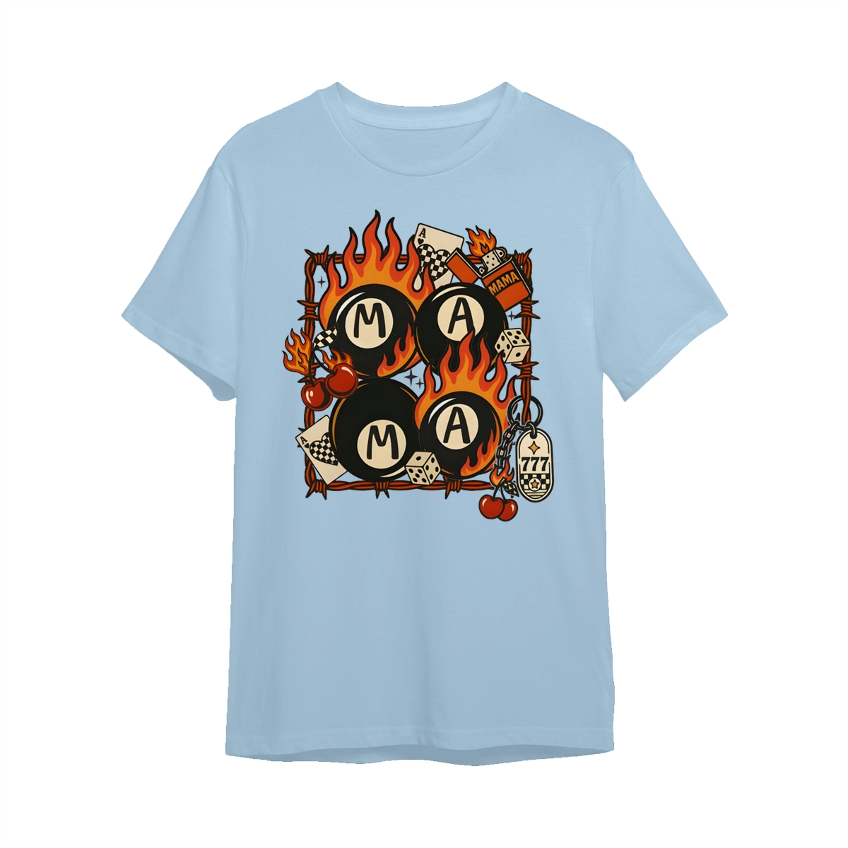 Western Mama Collage Shirt, Retro Lucky Western T-Shirt, Flaming 8 Ball Cherry Dice Tee, Unisex Western Grunge Shirt For Women