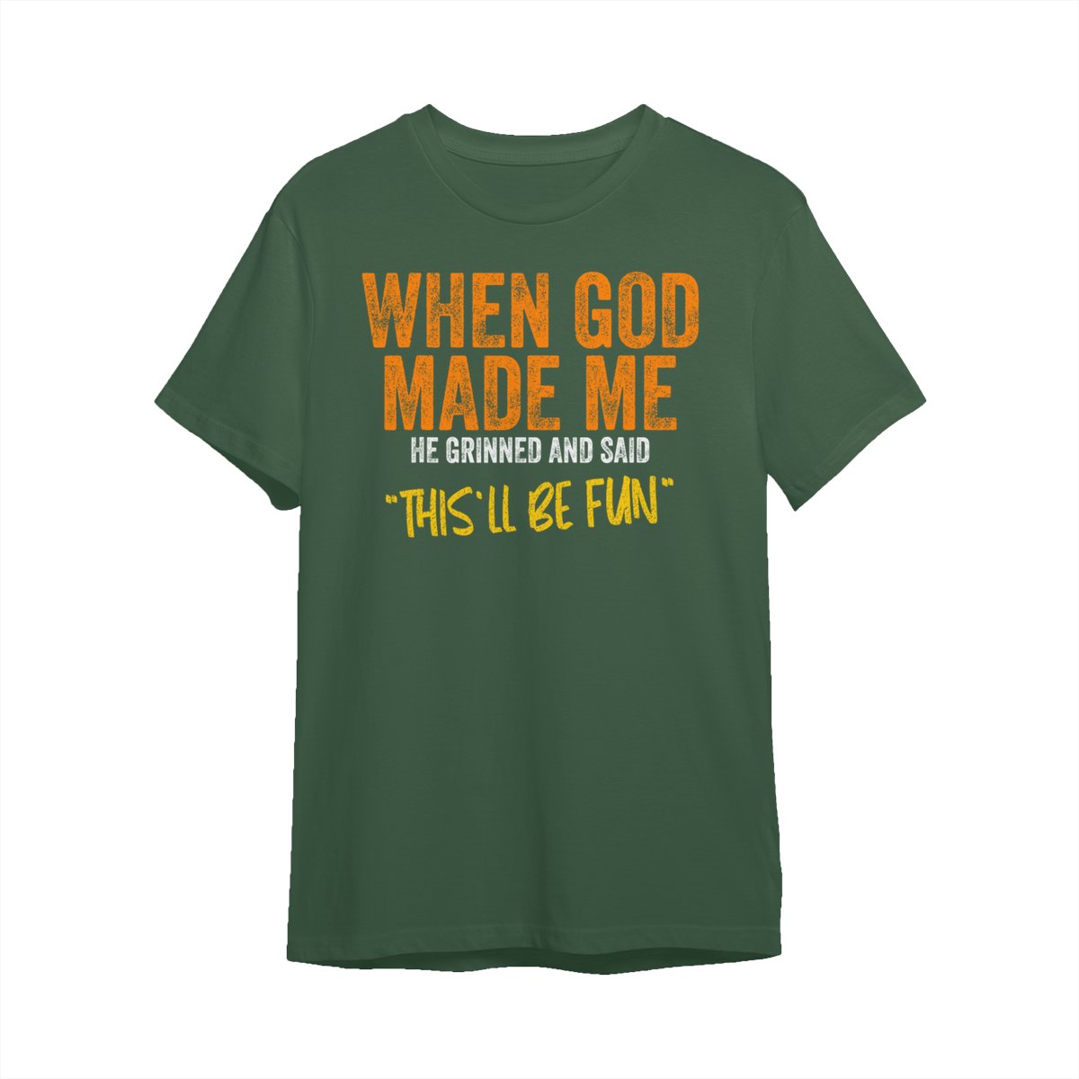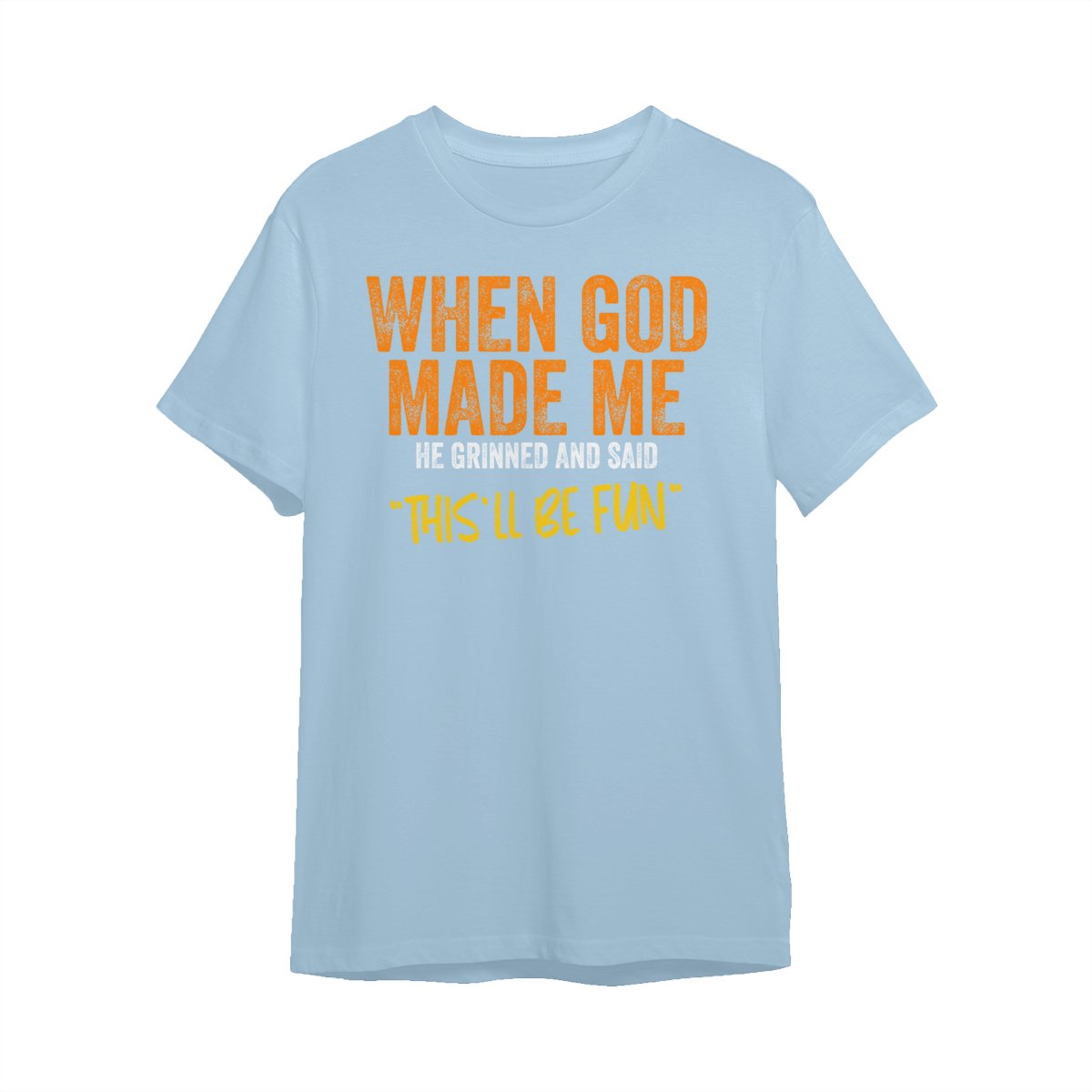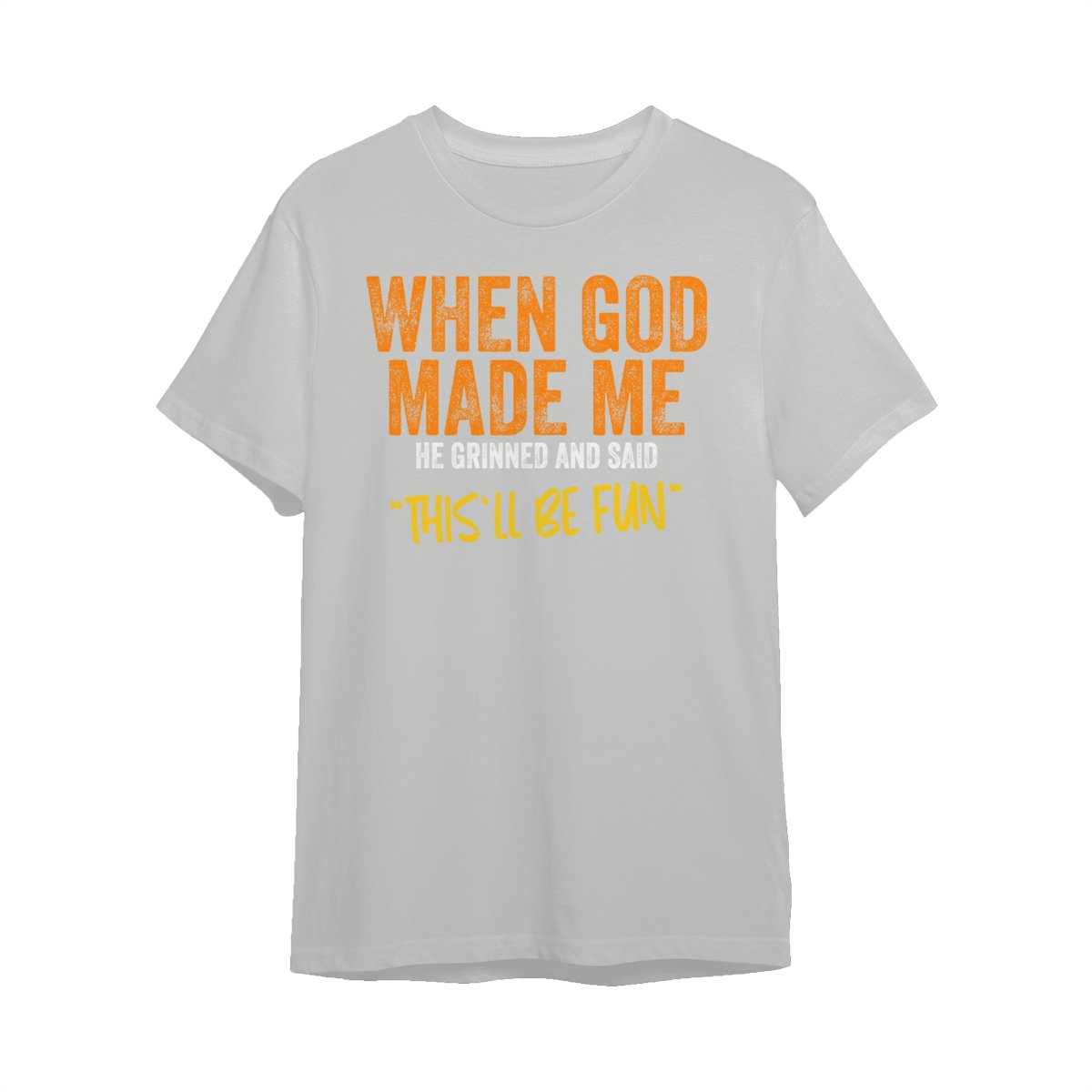 When God Made Me He Smiled and Said This Will Be Fun Shirt, Christian Humor Tee for Men and Women, Unisex Soft Cotton T-Shirt, Ideal for Everyday Faith and Fun Moments