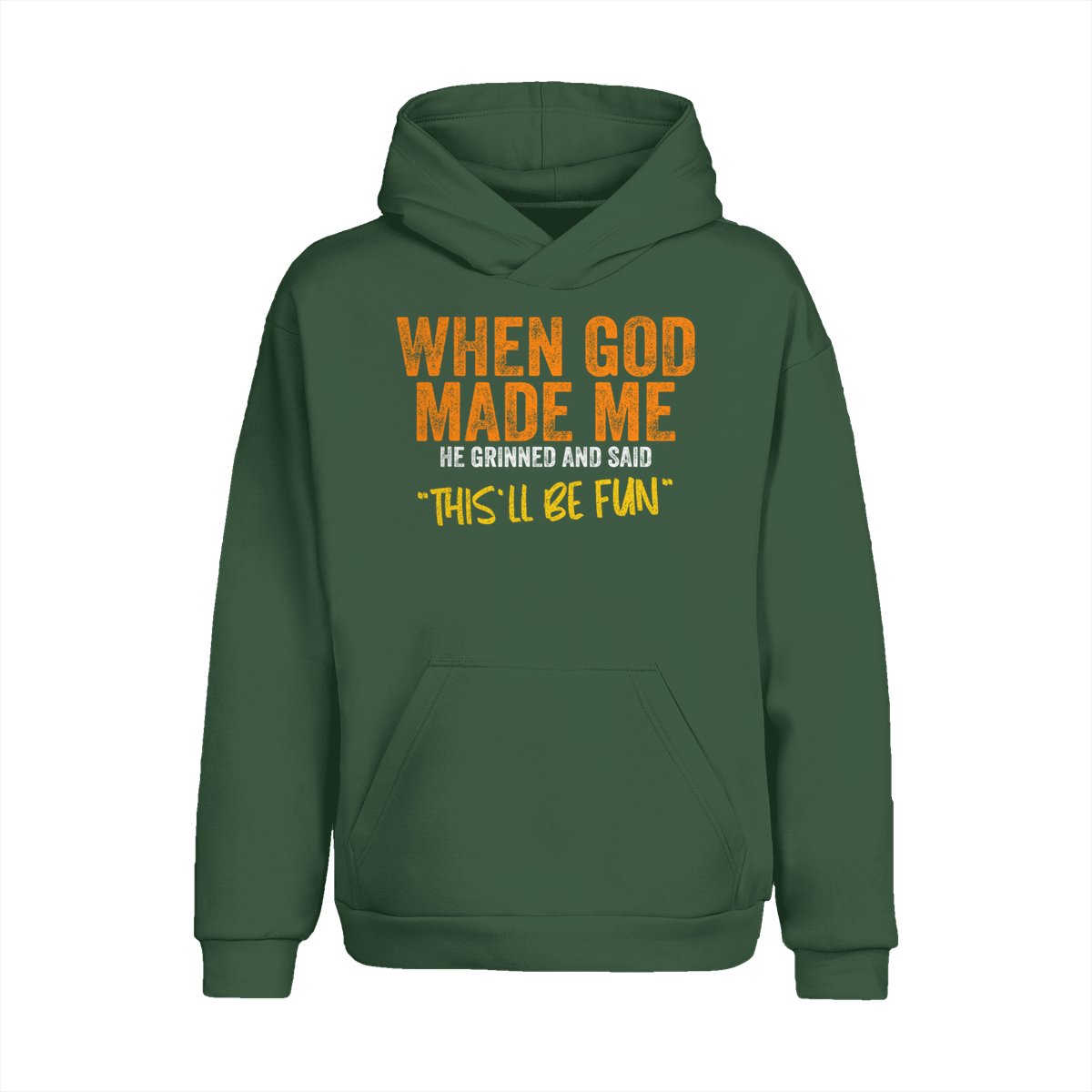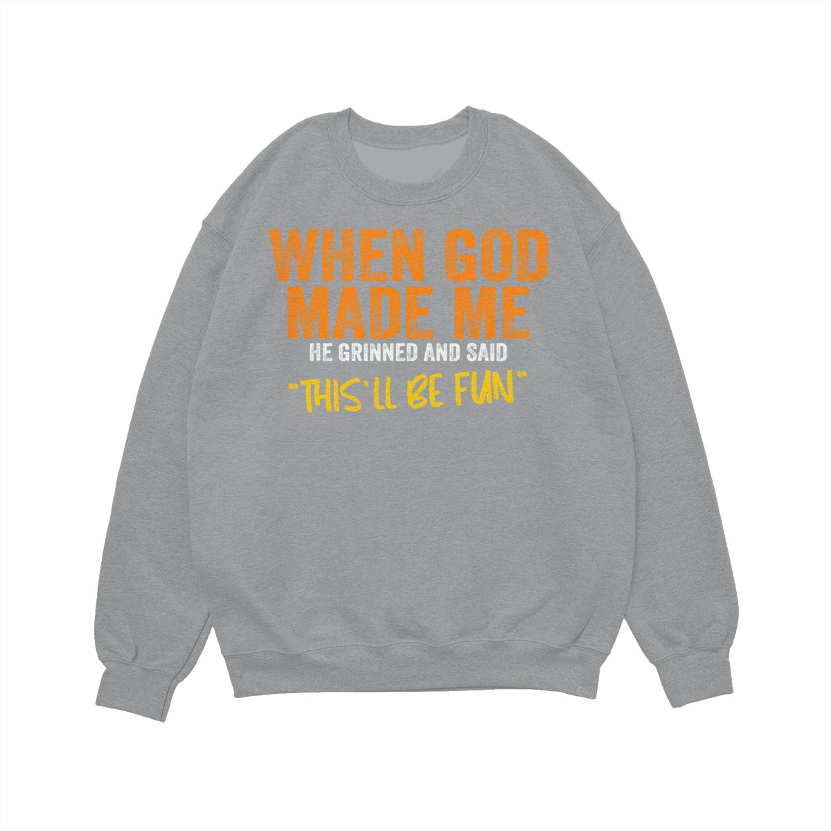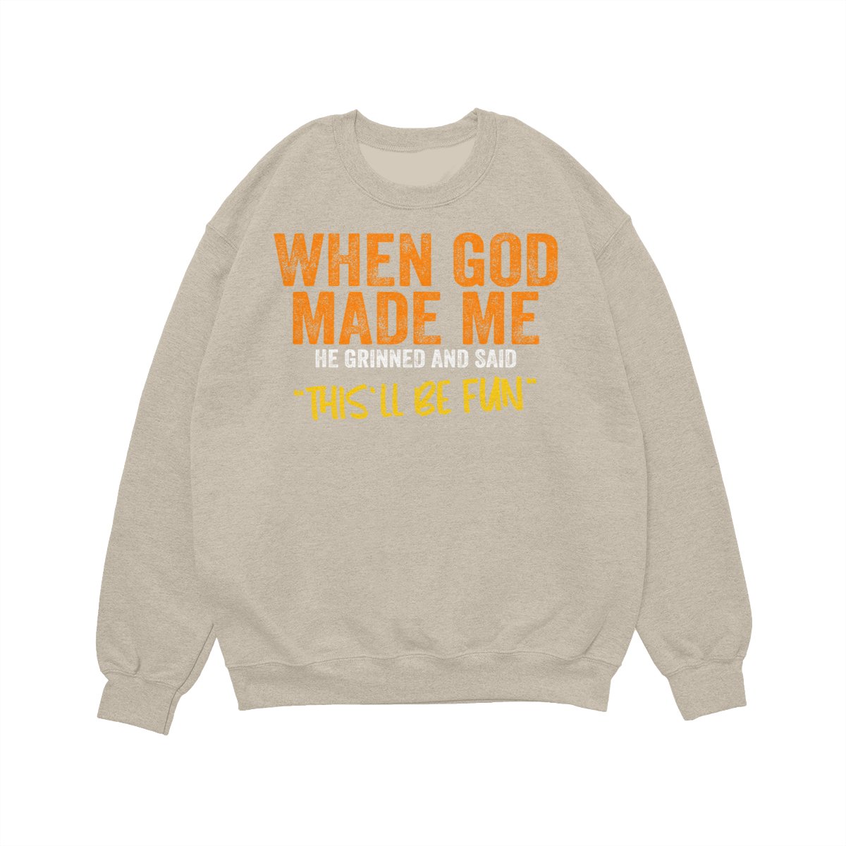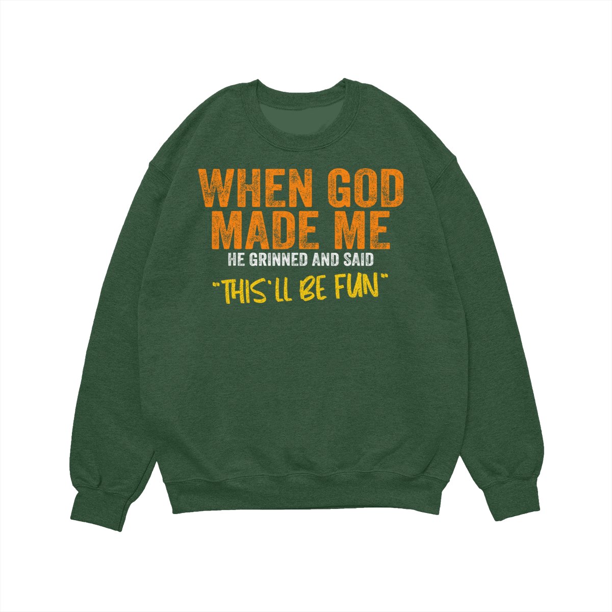 When God Made Me He Smiled and Said This Will Be Fun Shirt, Christian Humor Tee for Men and Women, Unisex Soft Cotton T-Shirt, Ideal for Everyday Faith and Fun Moments