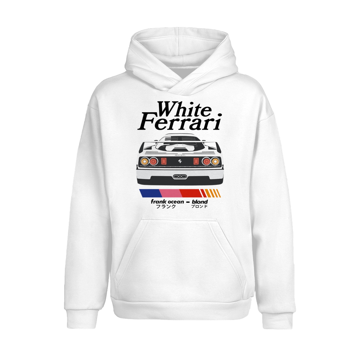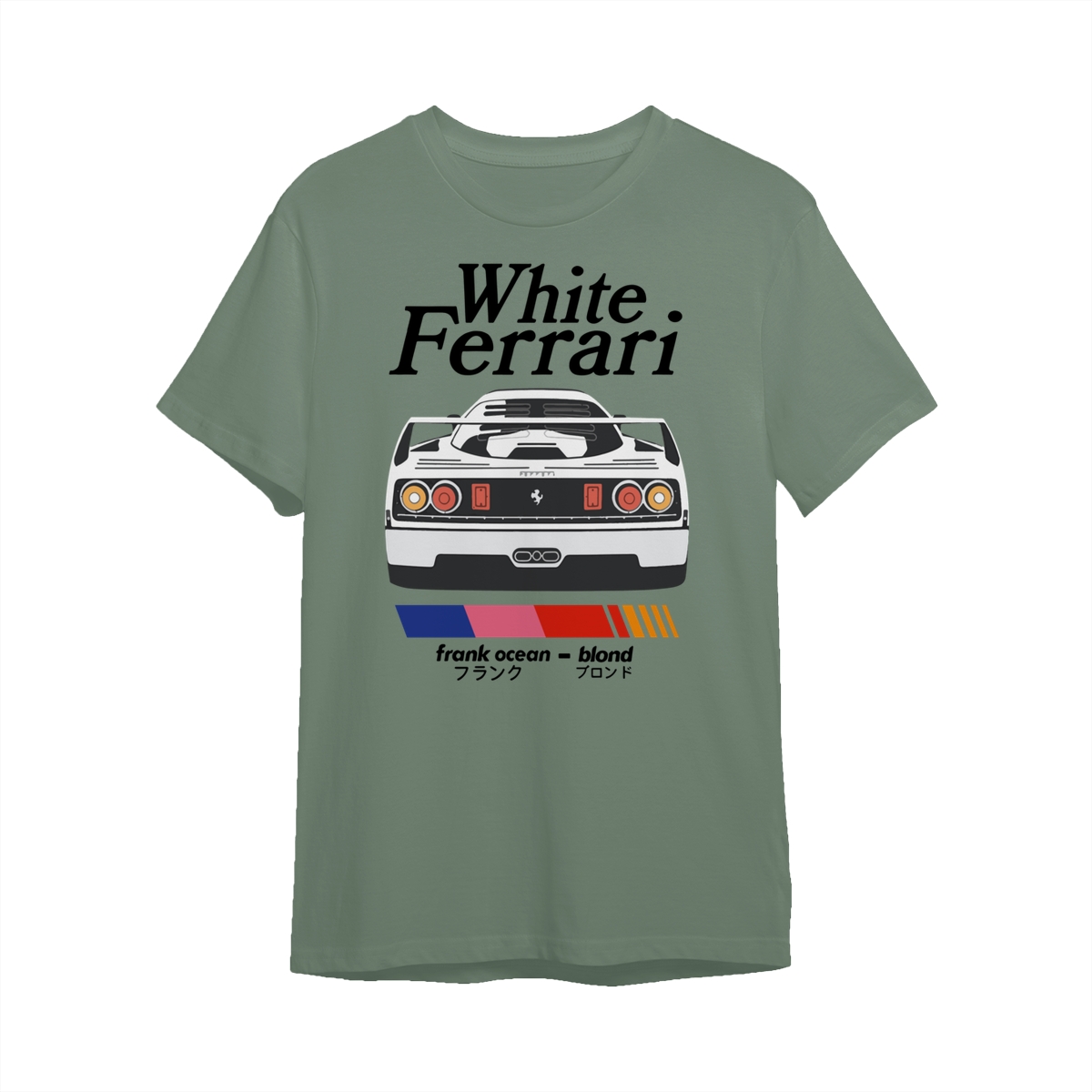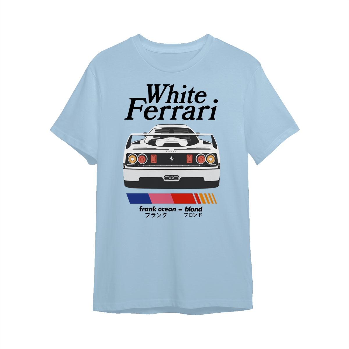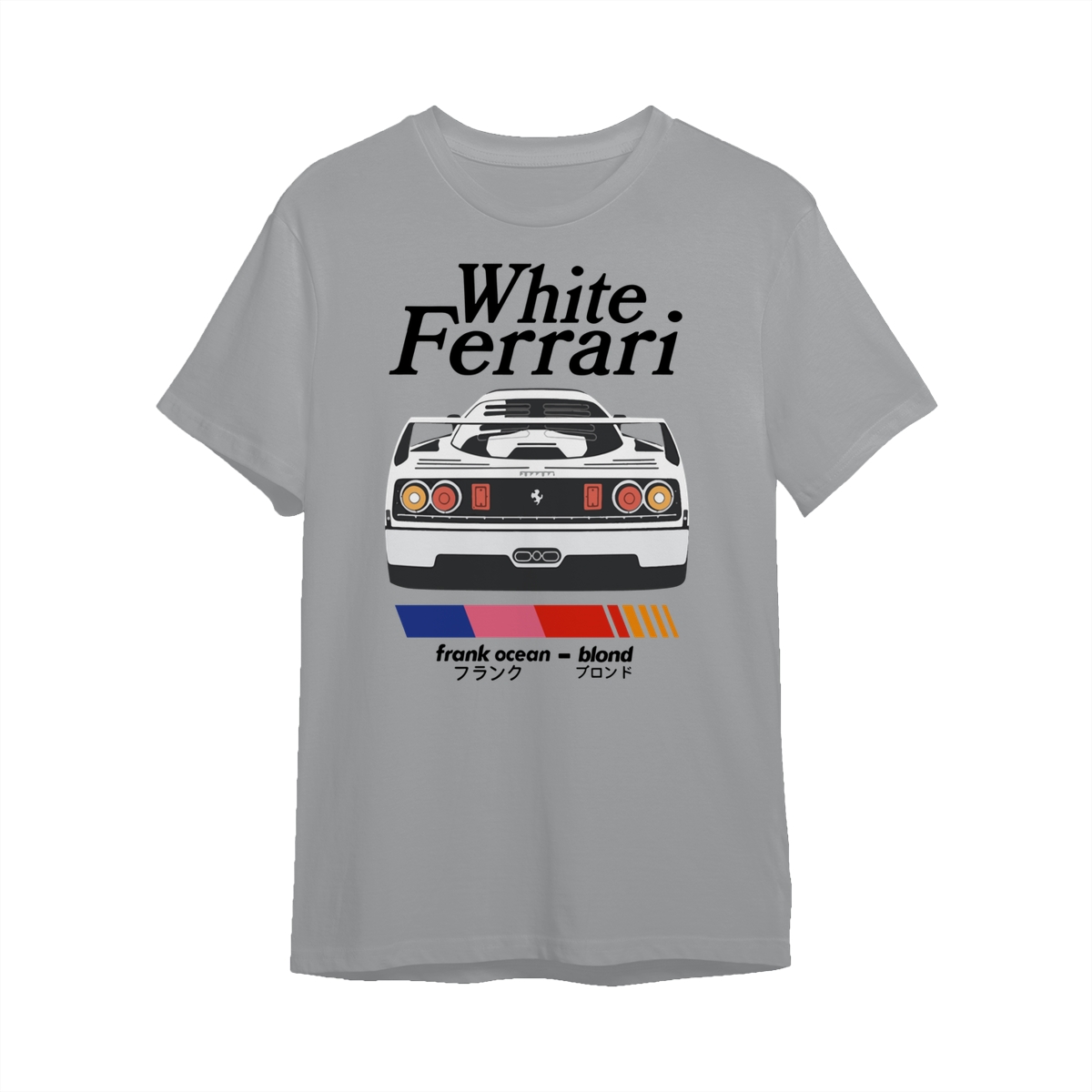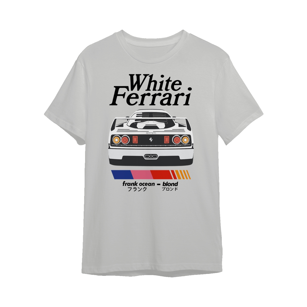 White Ferrari Inspired T-Shirt, Frank Ocean Aesthetic Graphic Tee, Retro Car Rear View Design, Unisex Music Streetwear for R&B Fans, Vintage Album Style Gift Shirt for Men and Women