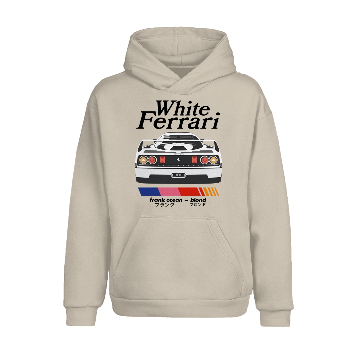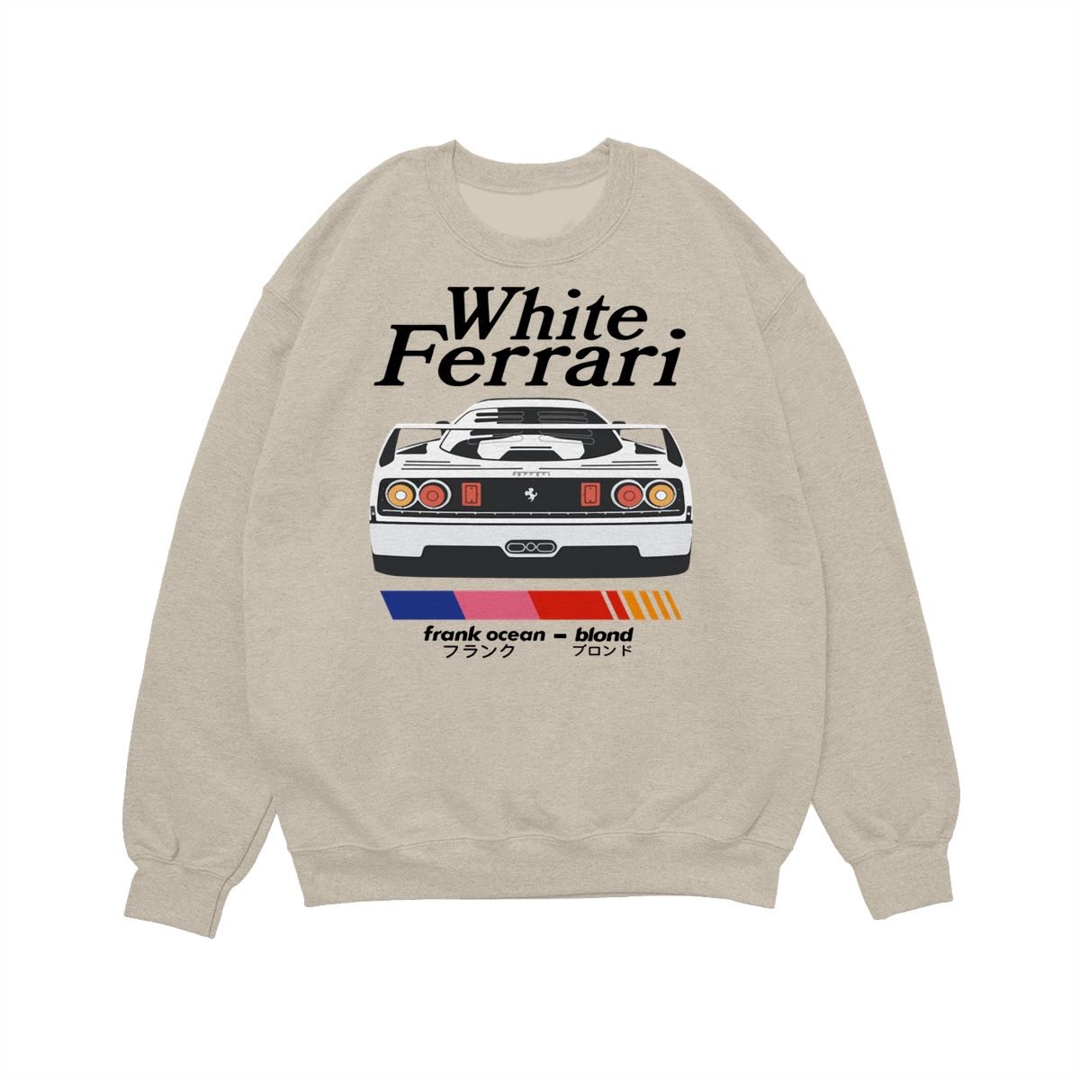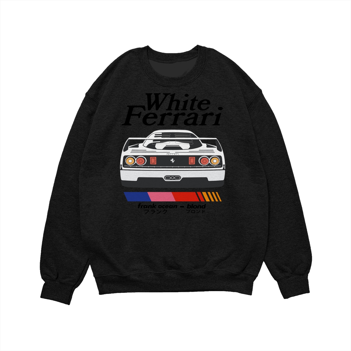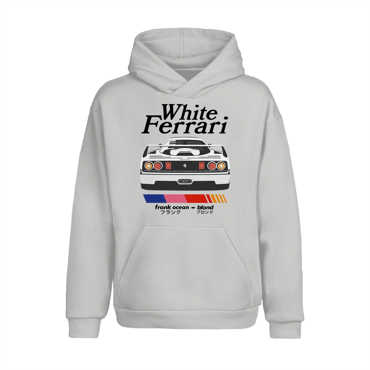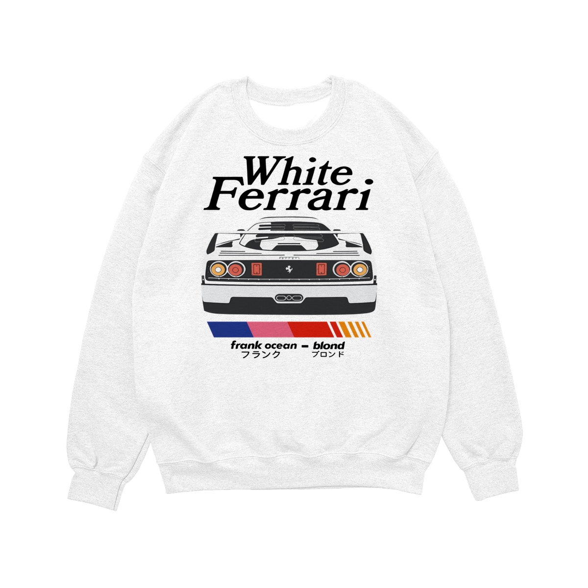 White Ferrari Inspired T-Shirt, Frank Ocean Aesthetic Graphic Tee, Retro Car Rear View Design, Unisex Music Streetwear for R&B Fans, Vintage Album Style Gift Shirt for Men and Women