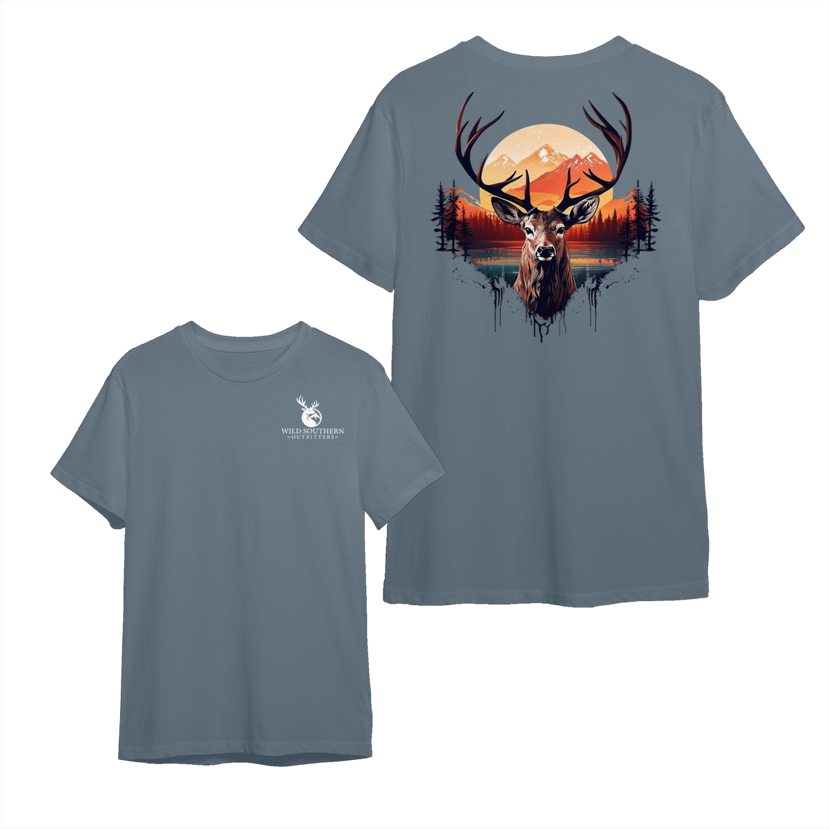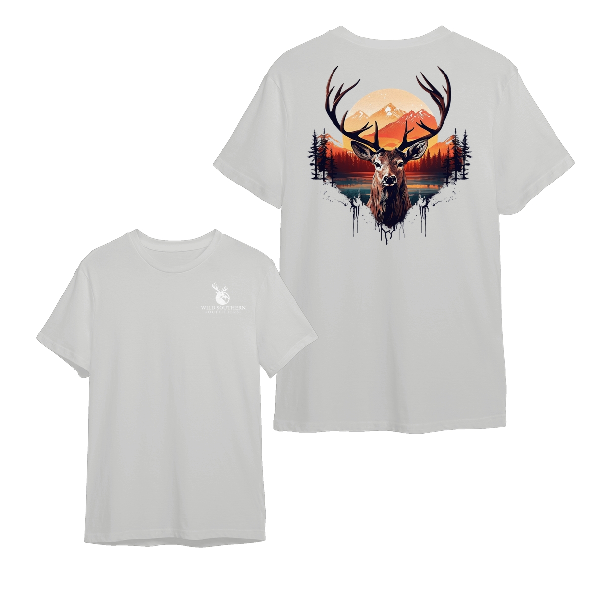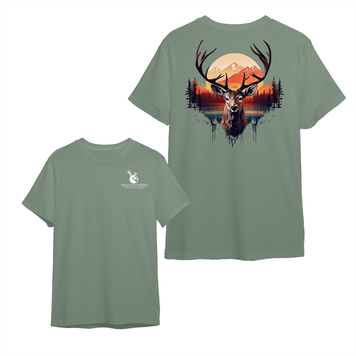Wild Southern Outfitters T-Shirt – Majestic Elk in Forest Scene Graphic Tee, Country Hunting Shirt for Men & Women – Nature Tops
