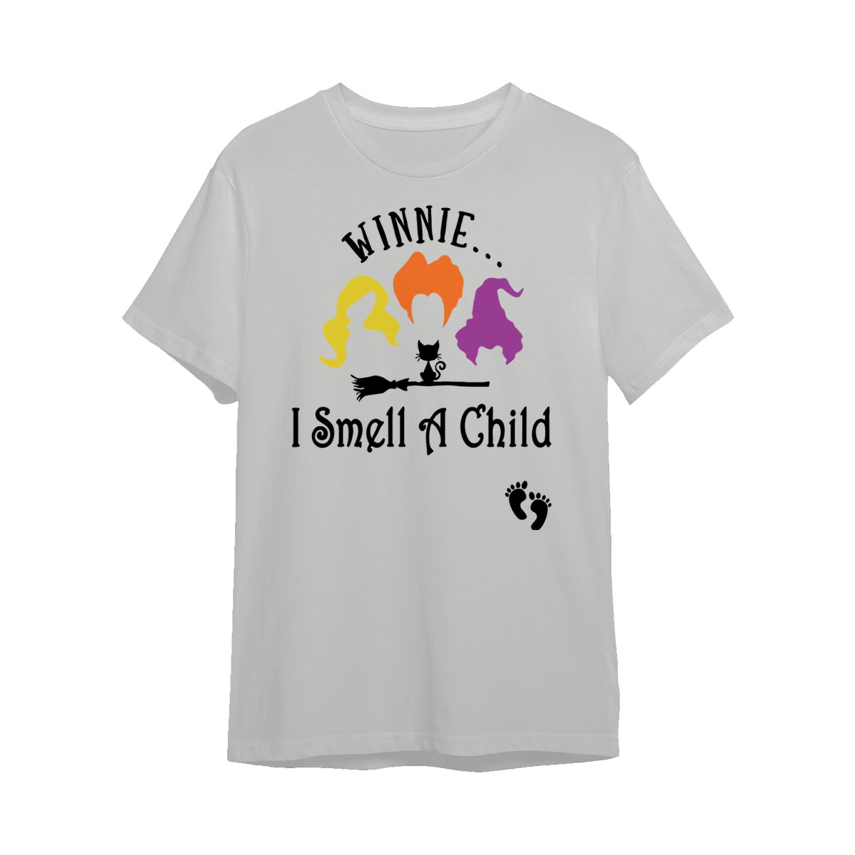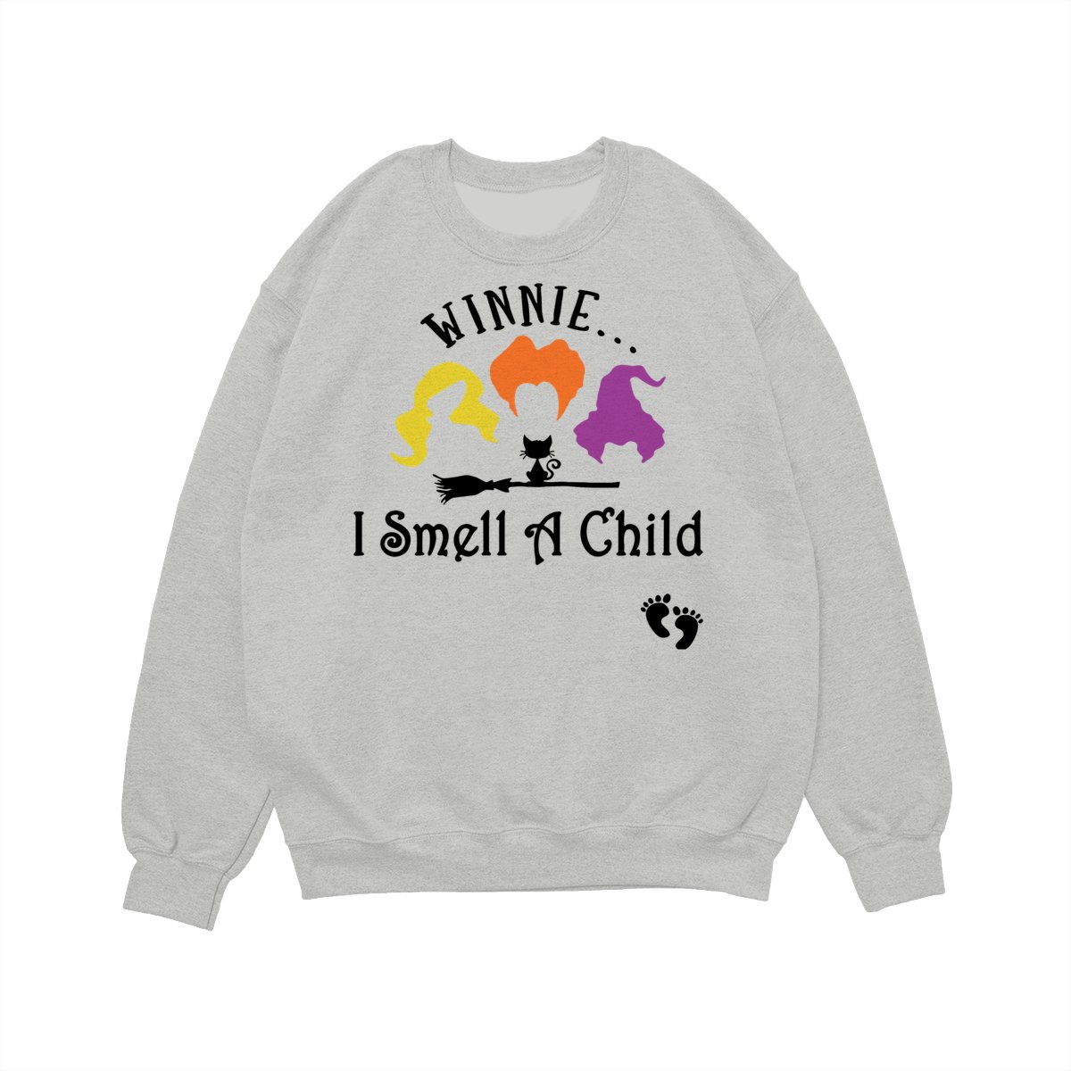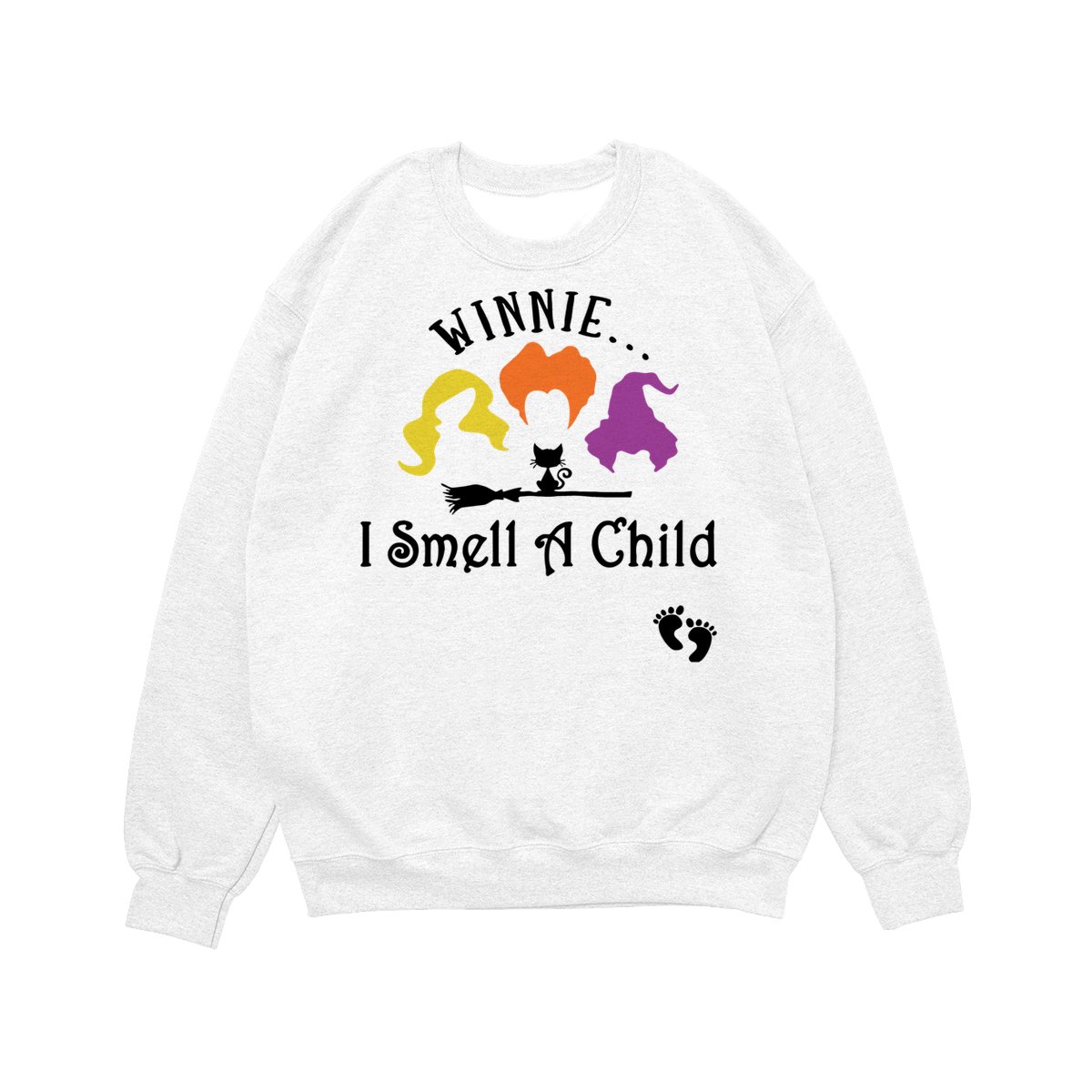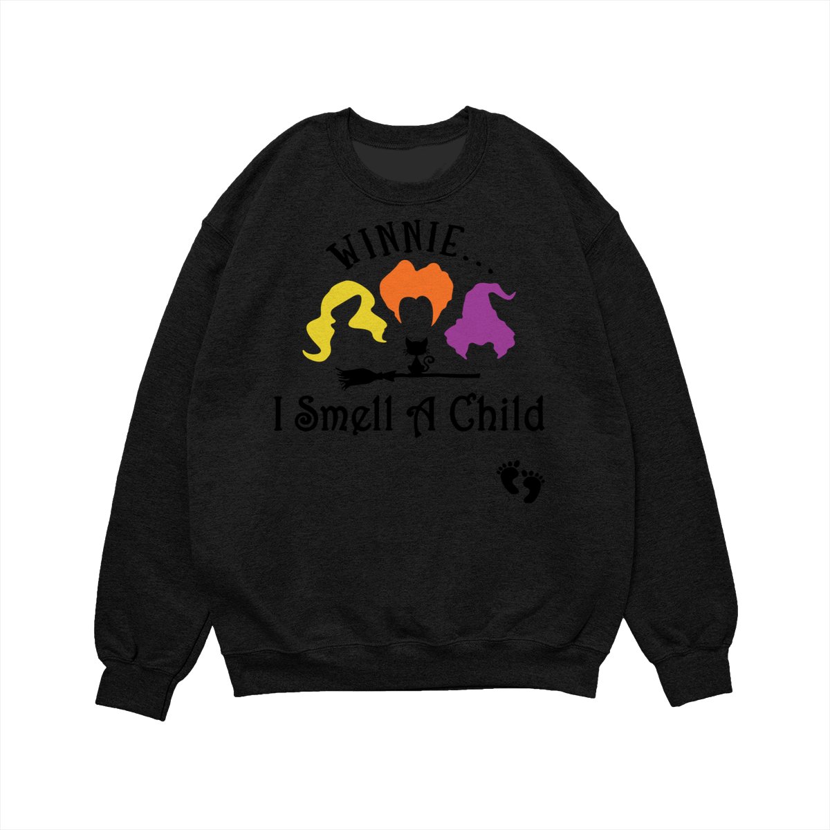 Winnie I Smell A Child T-Shirt, Sweatshirt, Hoodie – Funny Halloween Pregnancy Announcement Pullover With Colorful Witch Silhouettes & Baby Feet, Cute Maternity Reveal Top