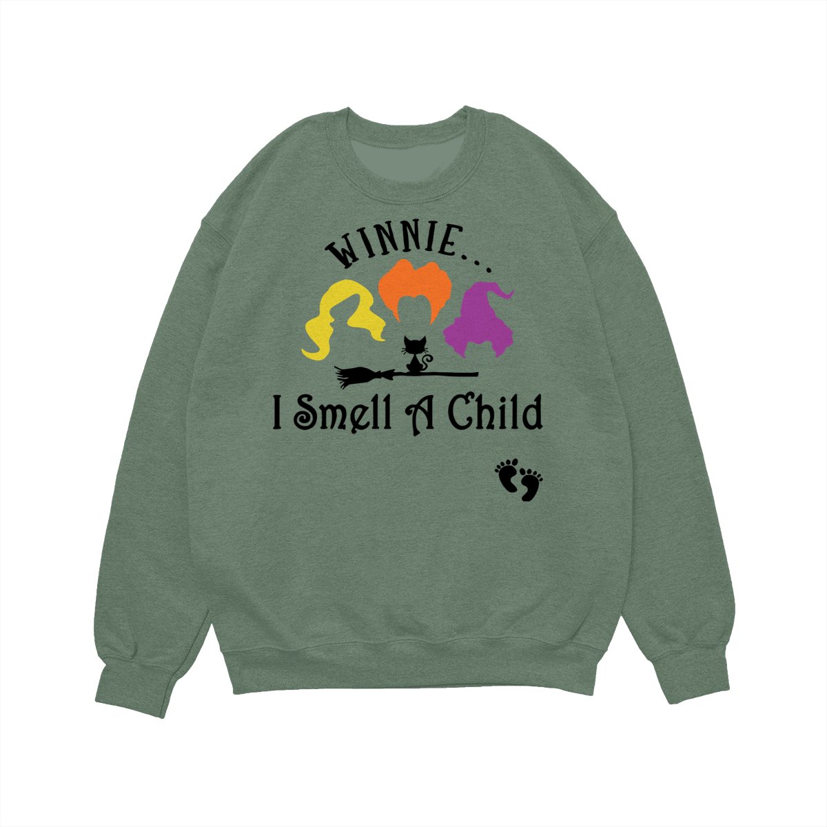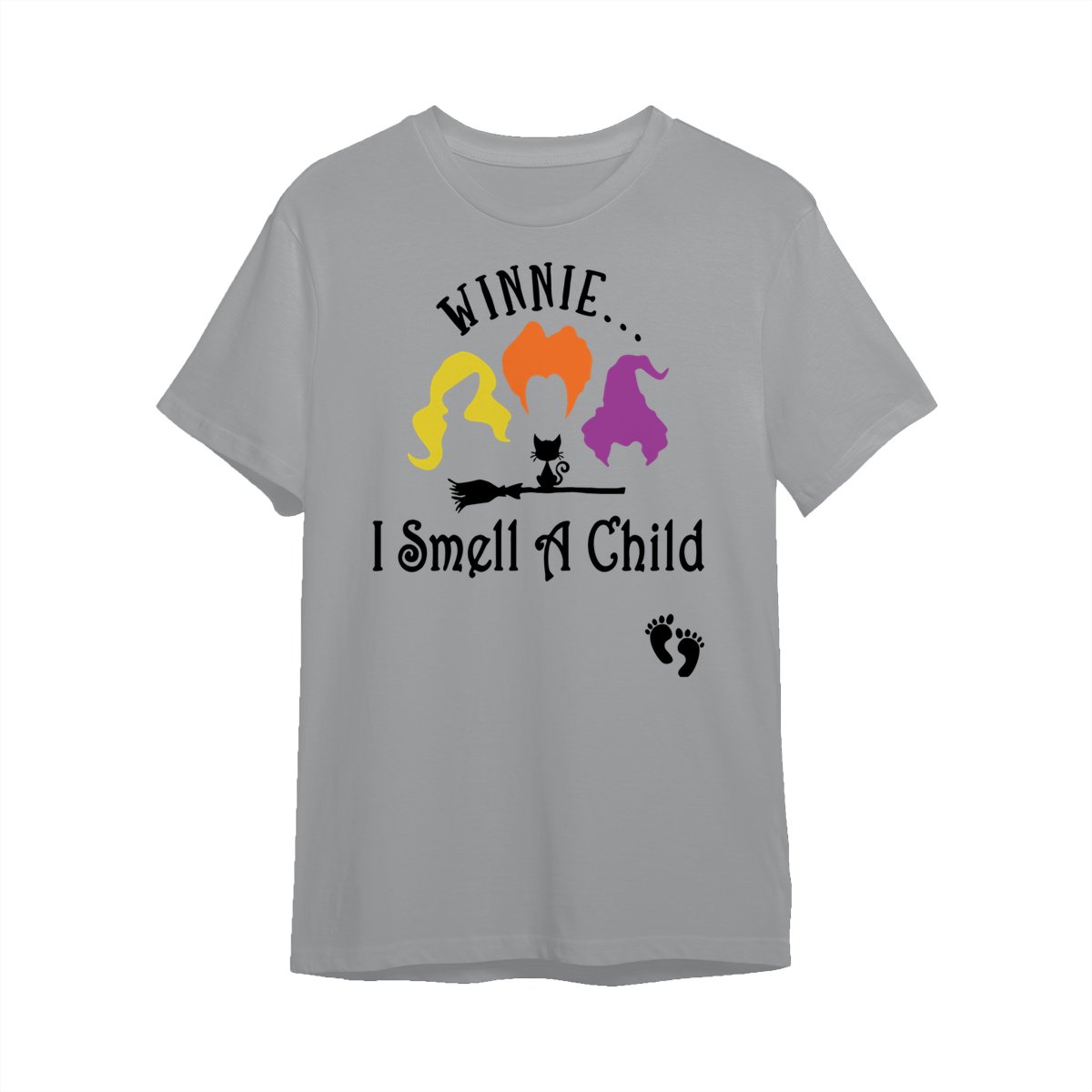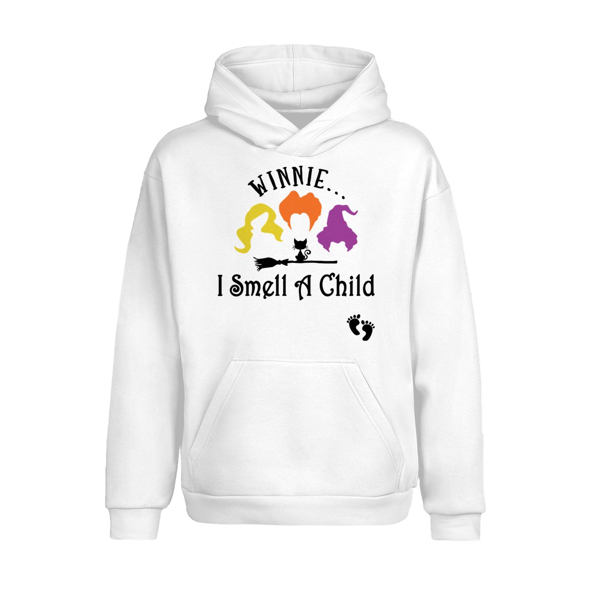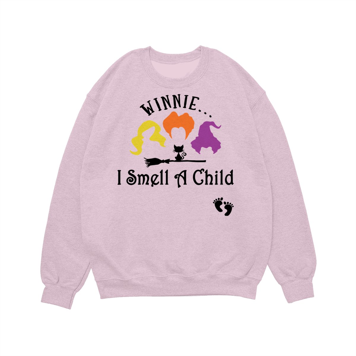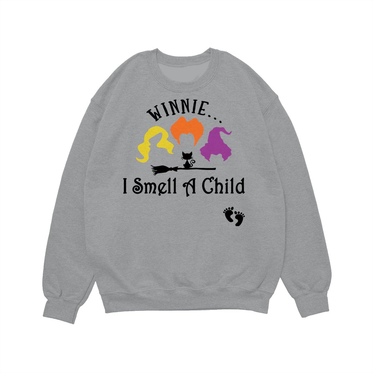 Winnie I Smell A Child T-Shirt, Sweatshirt, Hoodie – Funny Halloween Pregnancy Announcement Pullover With Colorful Witch Silhouettes & Baby Feet, Cute Maternity Reveal Top