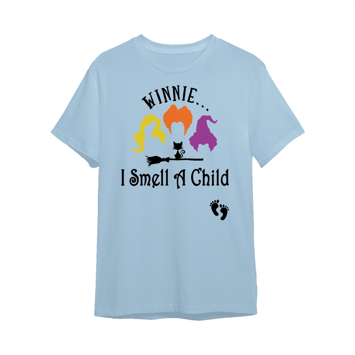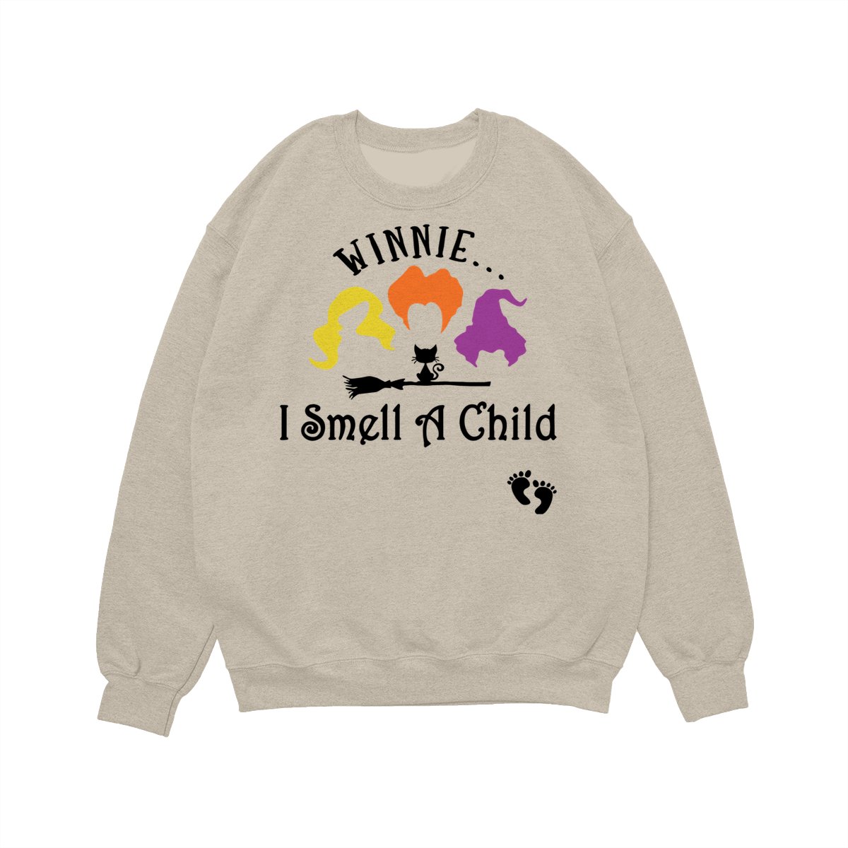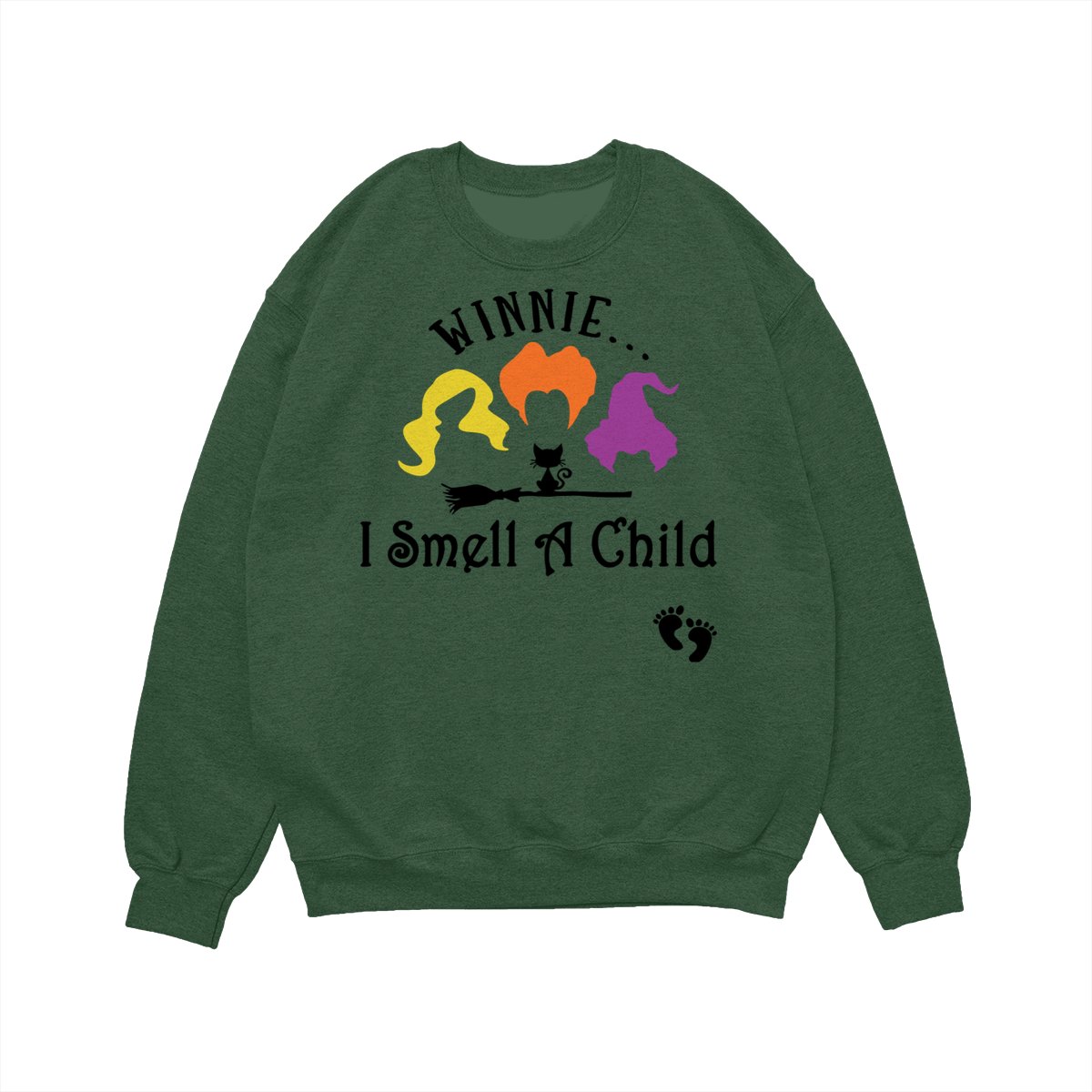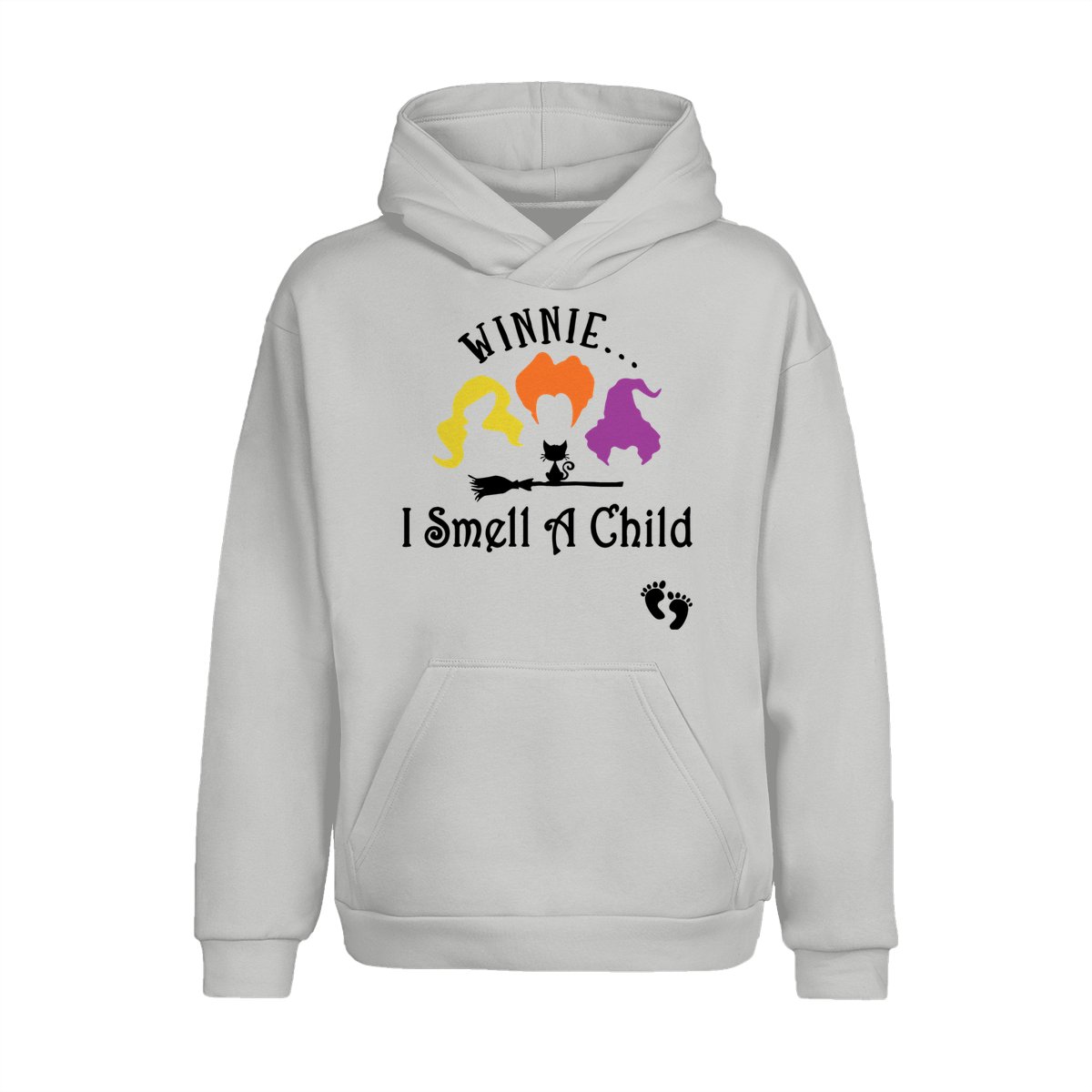 Winnie I Smell A Child T-Shirt, Sweatshirt, Hoodie – Funny Halloween Pregnancy Announcement Pullover With Colorful Witch Silhouettes & Baby Feet, Cute Maternity Reveal Top