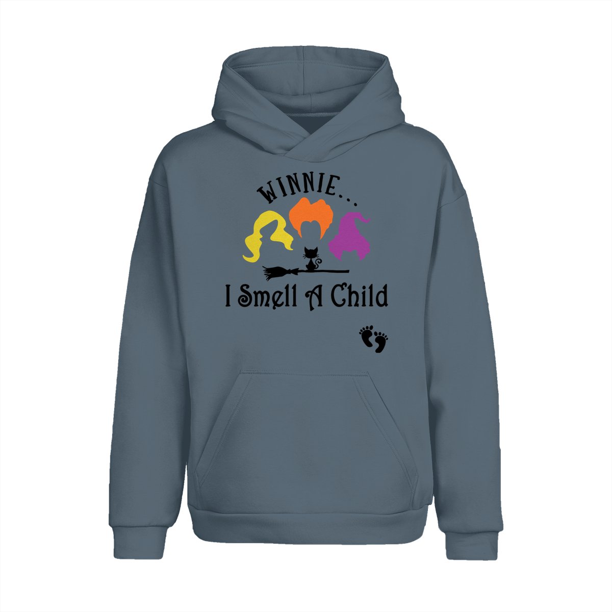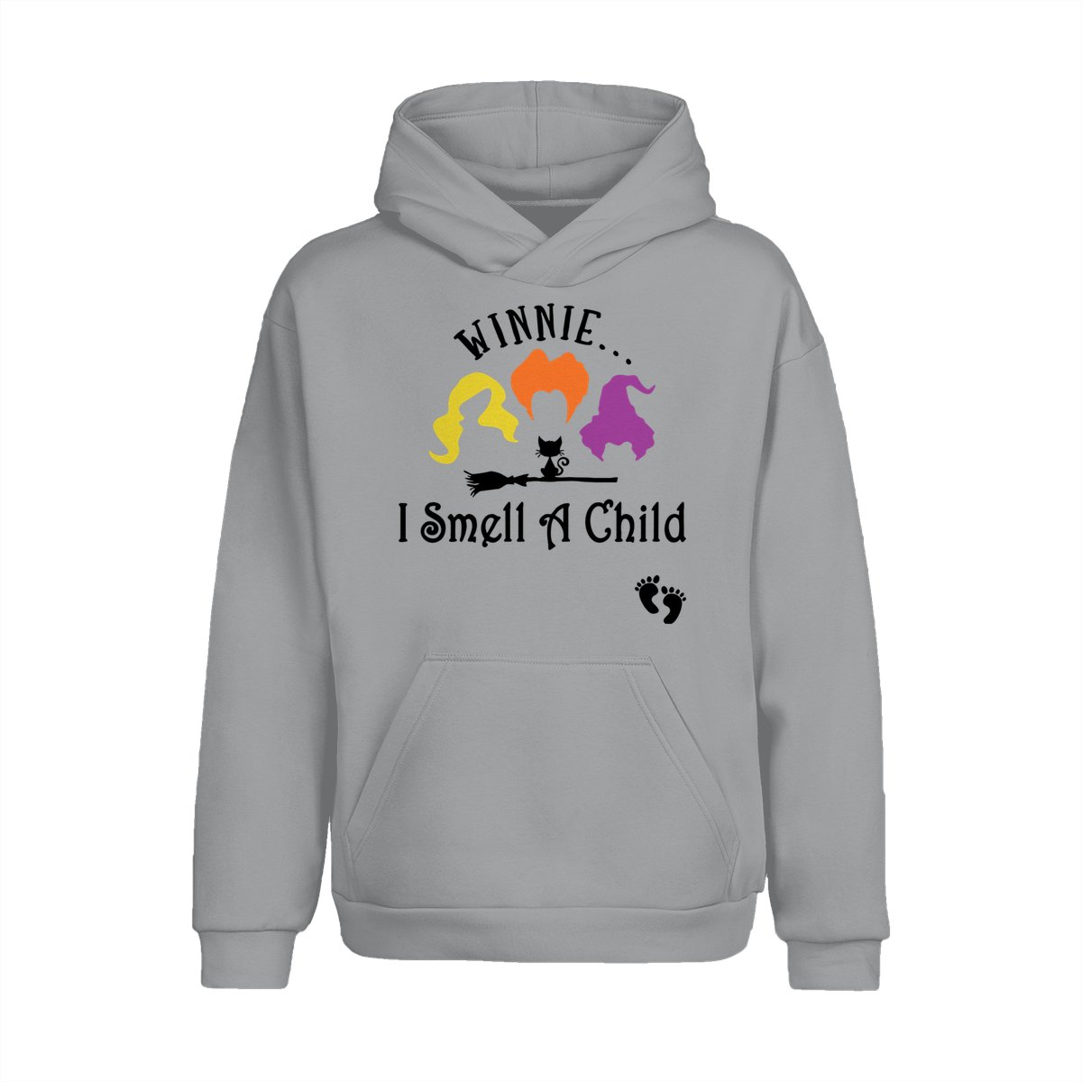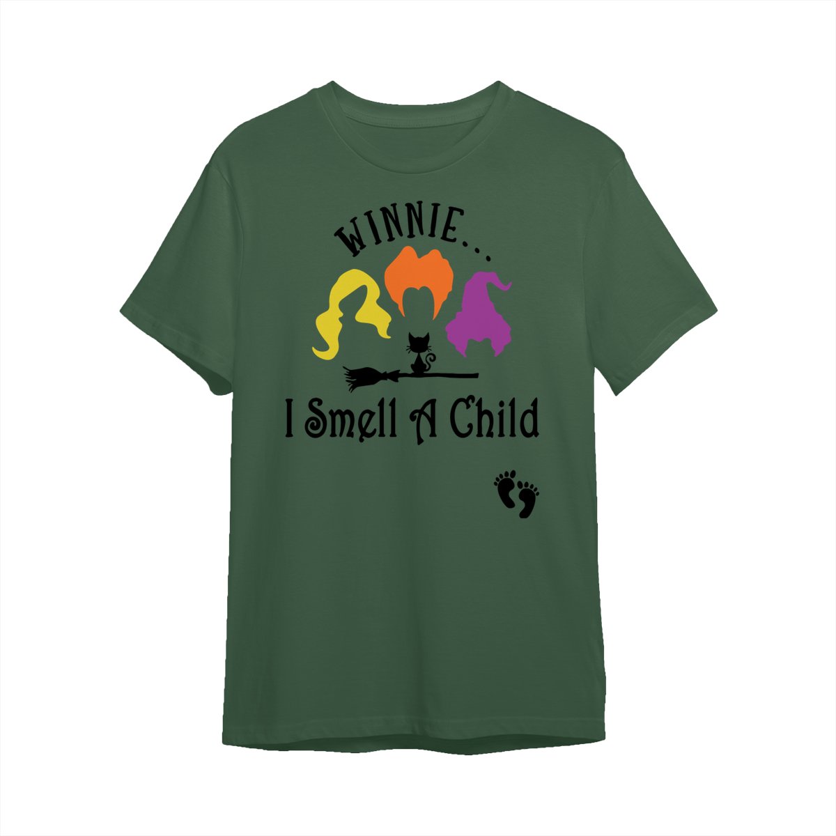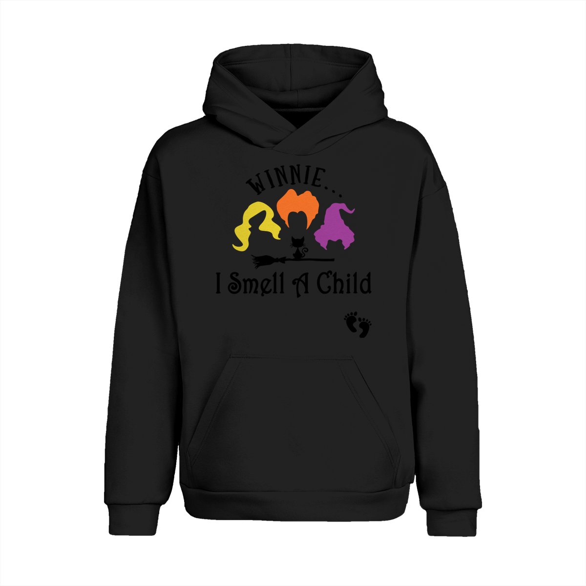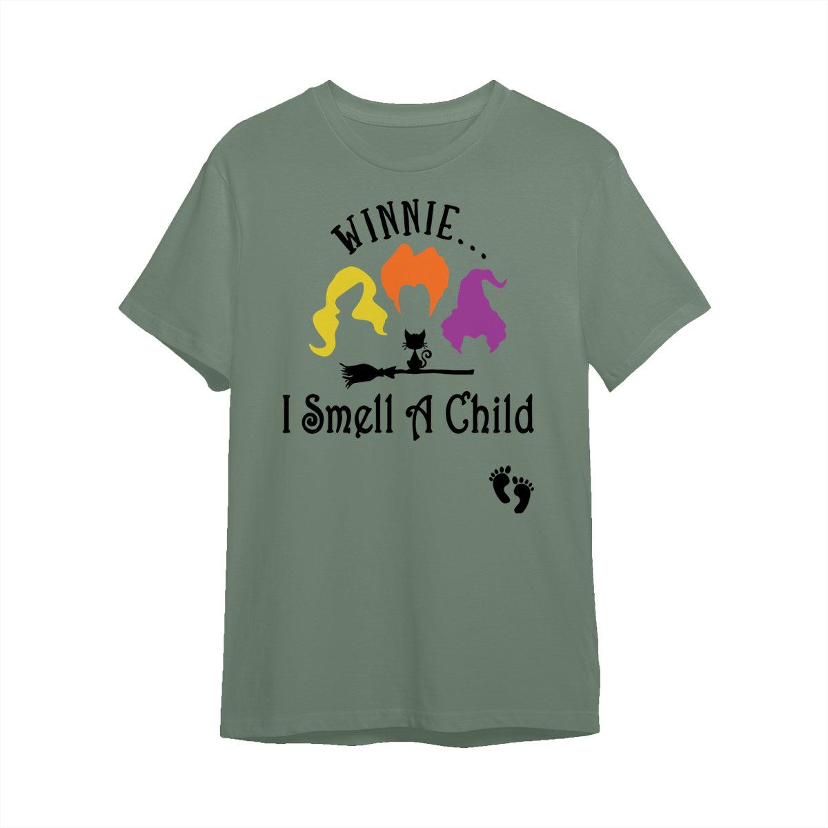 Winnie I Smell A Child T-Shirt, Sweatshirt, Hoodie – Funny Halloween Pregnancy Announcement Pullover With Colorful Witch Silhouettes & Baby Feet, Cute Maternity Reveal Top