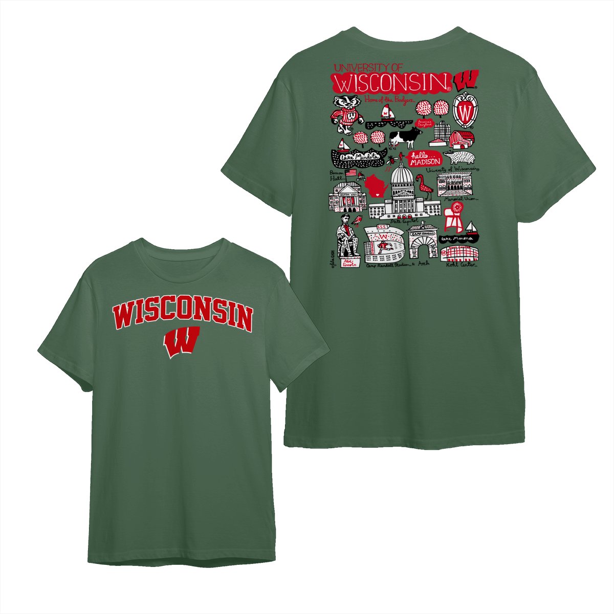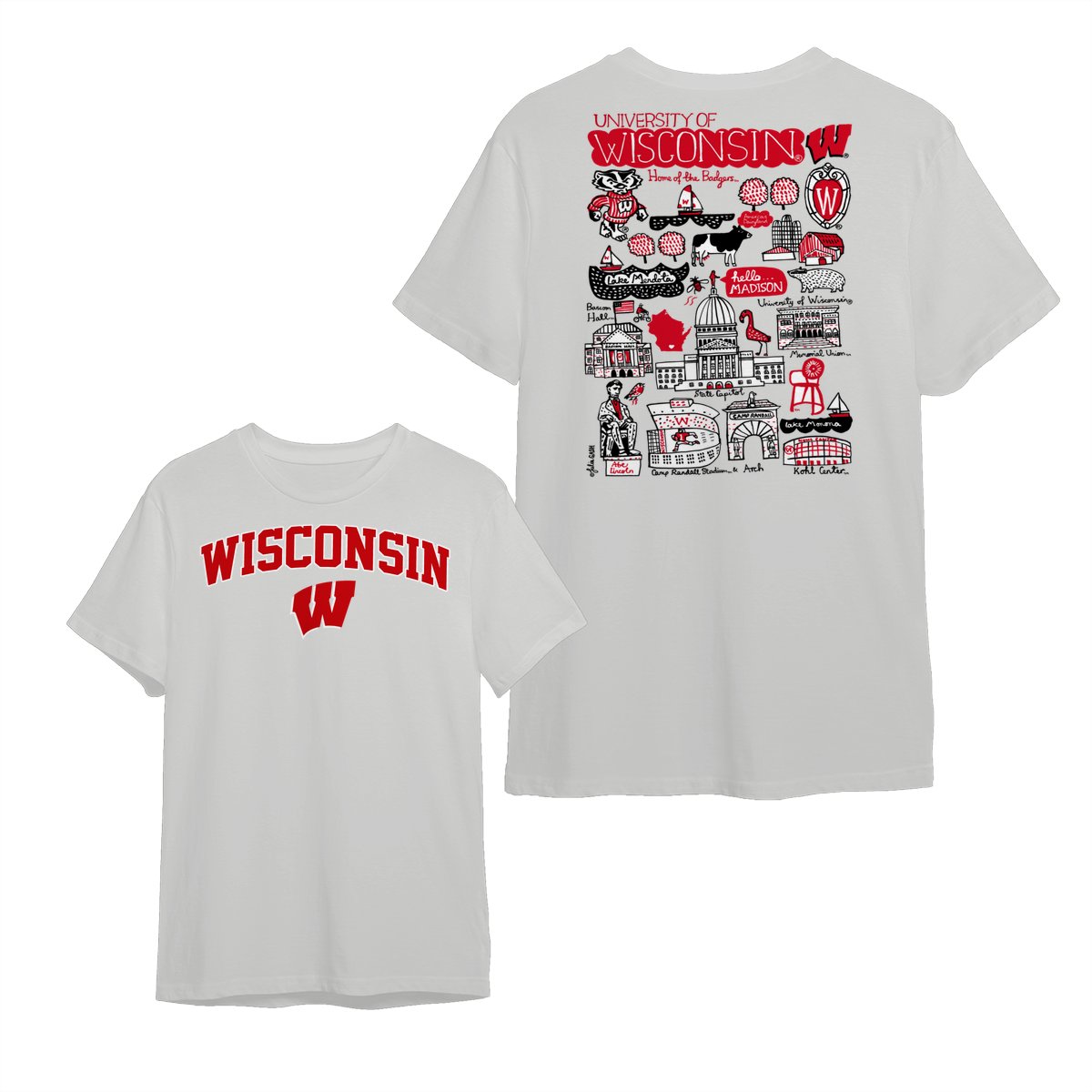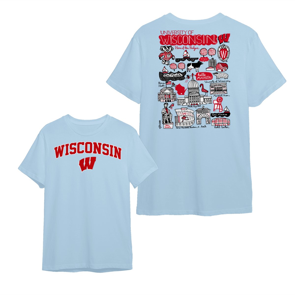 Wisconsin University Team College NCAA Graphic T-Shirts – Hand-Drawn Logo & Campus Designs, Unisex Style, Perfect for Fans, Mens and Womens Gift, Comfortable Casual Wear for Sports Lovers