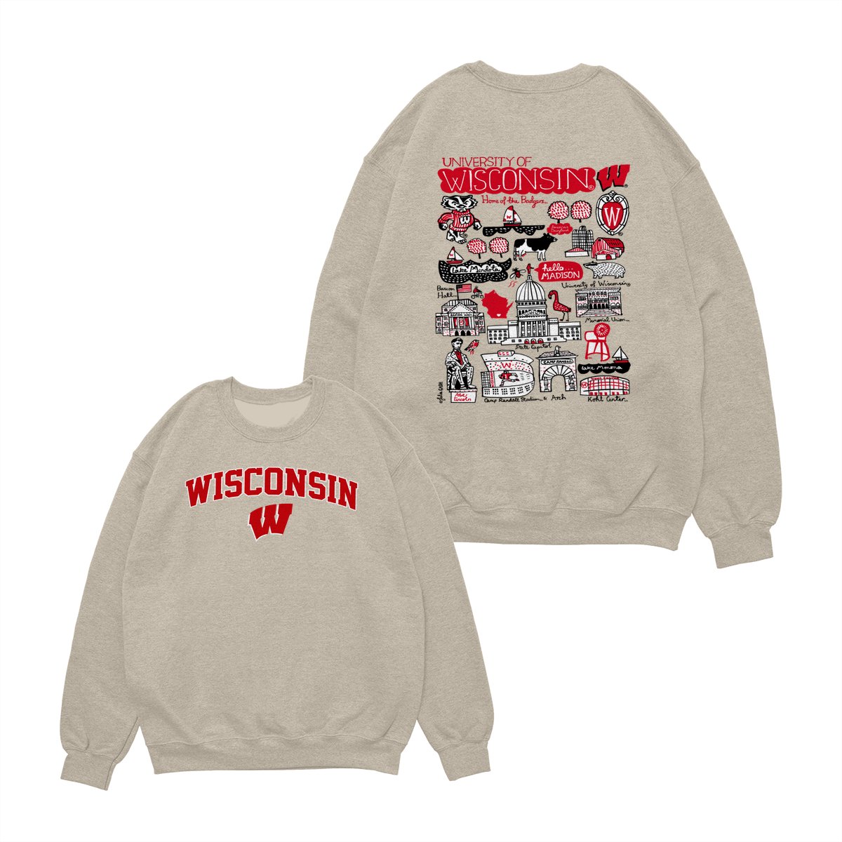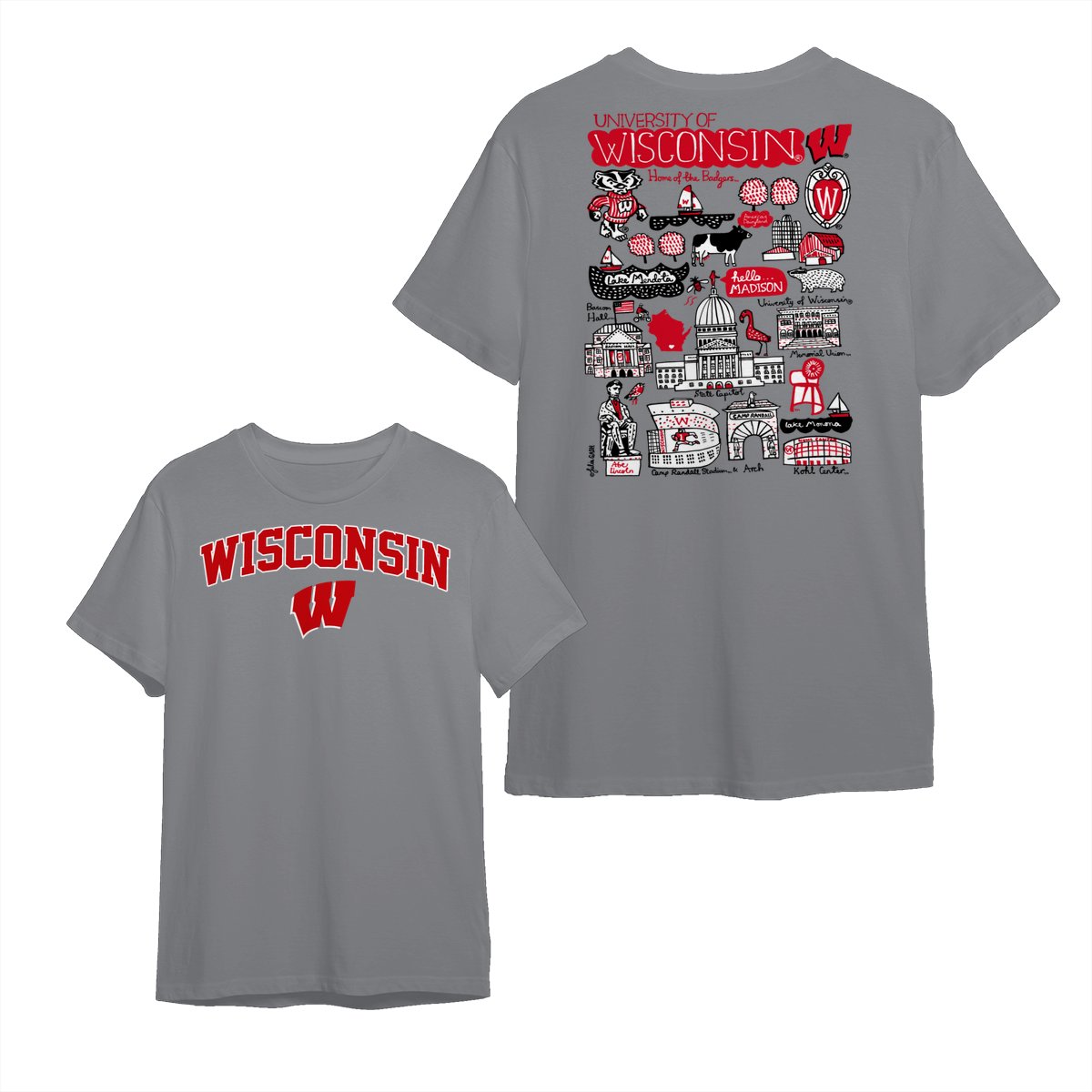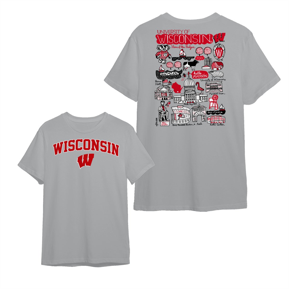 Wisconsin University Team College NCAA Graphic T-Shirts – Hand-Drawn Logo & Campus Designs, Unisex Style, Perfect for Fans, Mens and Womens Gift, Comfortable Casual Wear for Sports Lovers