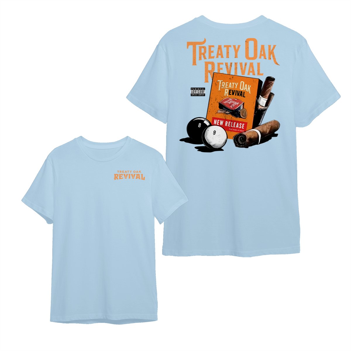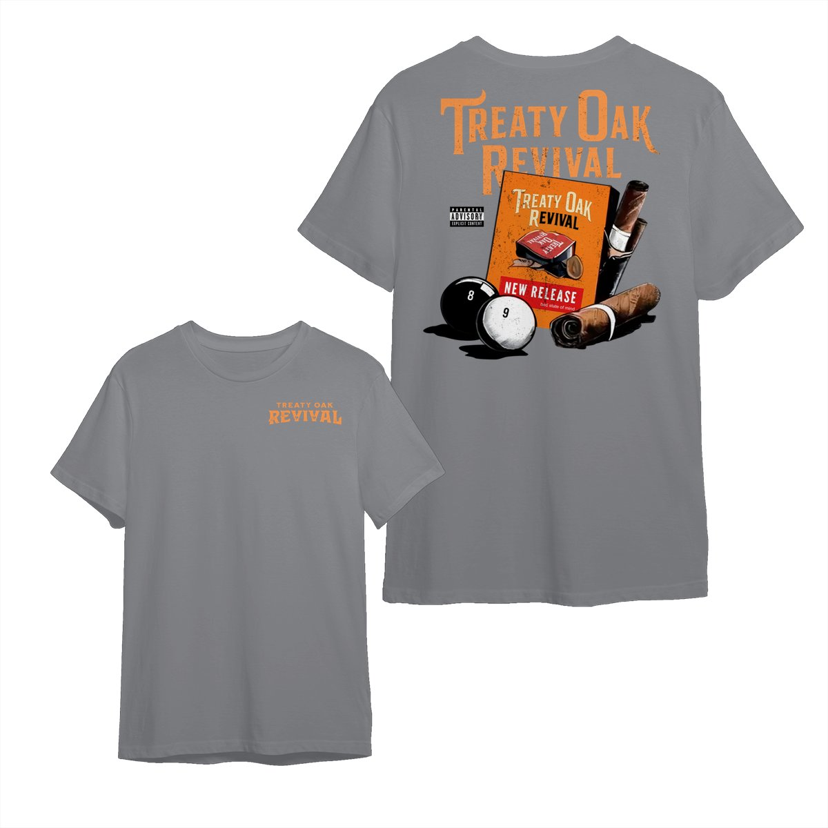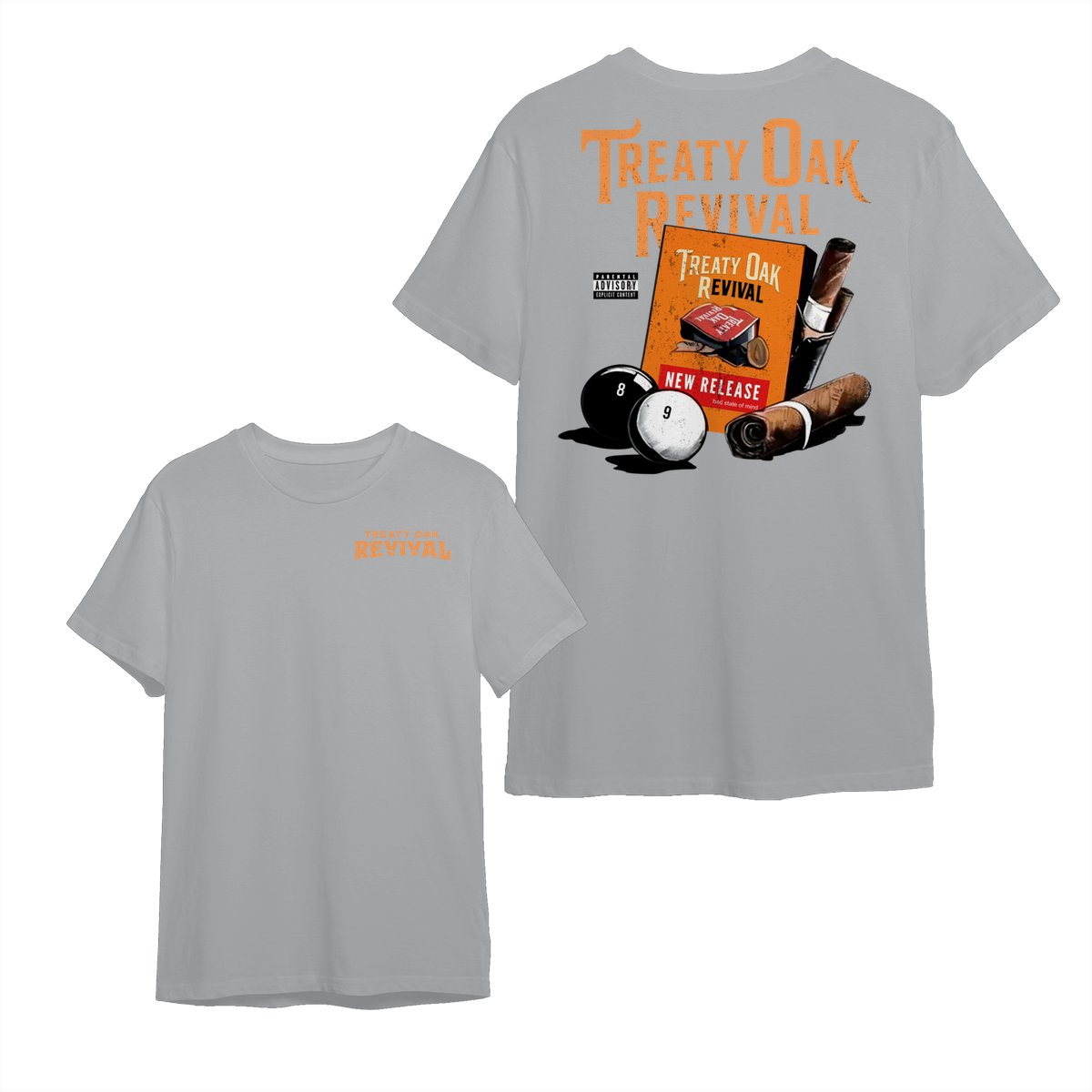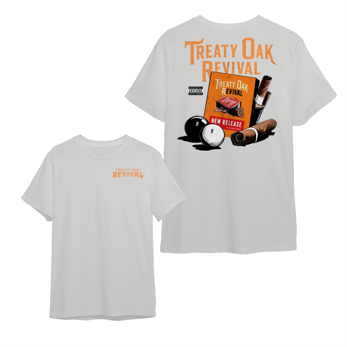 With Black Background Orange ‘Treaty Oak Revival’ Text And Pattern Print, Outdoor Sports T-Shirt | Loose Fit