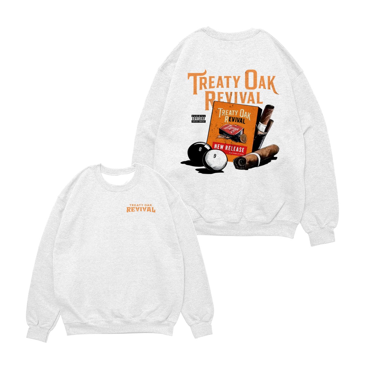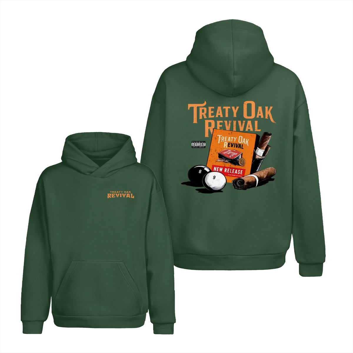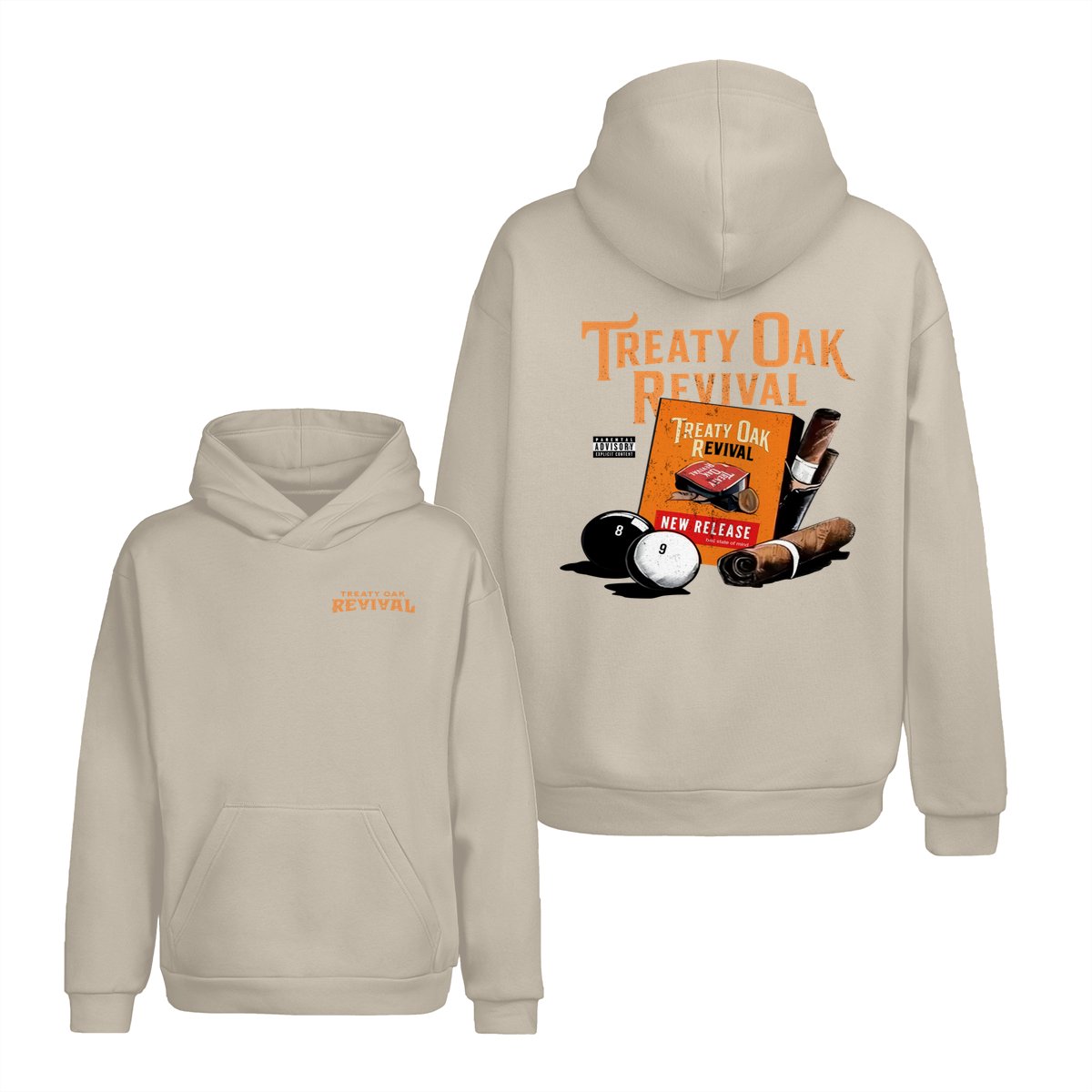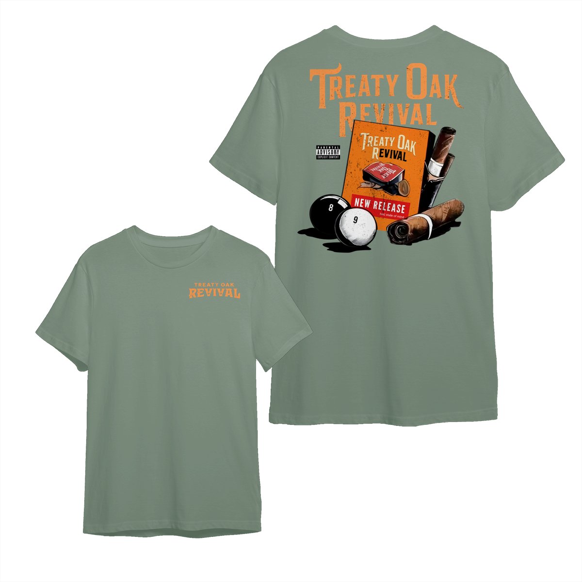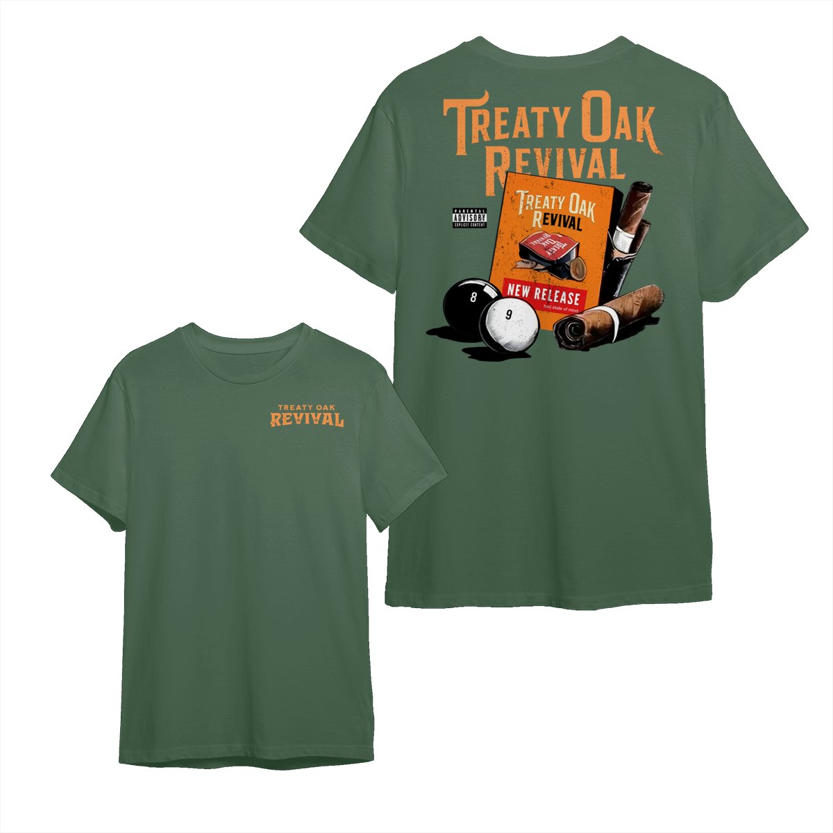 With Black Background Orange ‘Treaty Oak Revival’ Text And Pattern Print, Outdoor Sports T-Shirt | Loose Fit