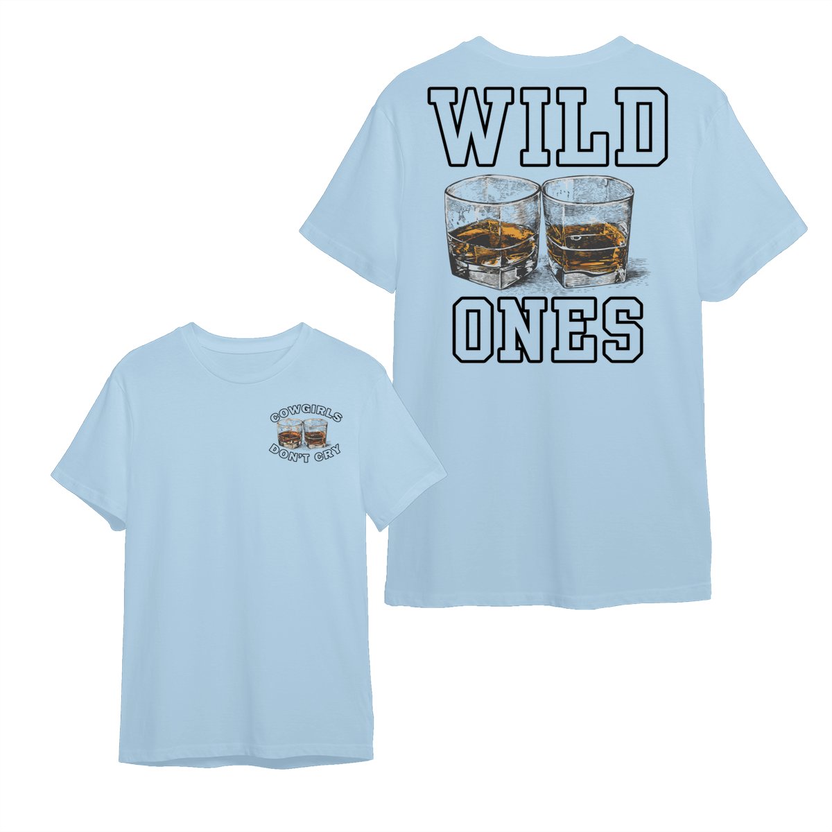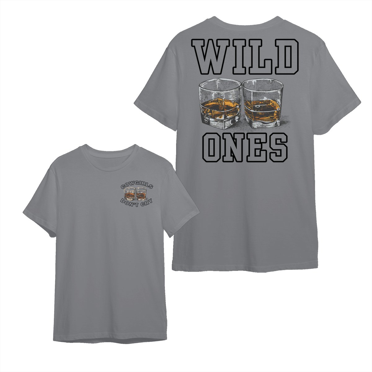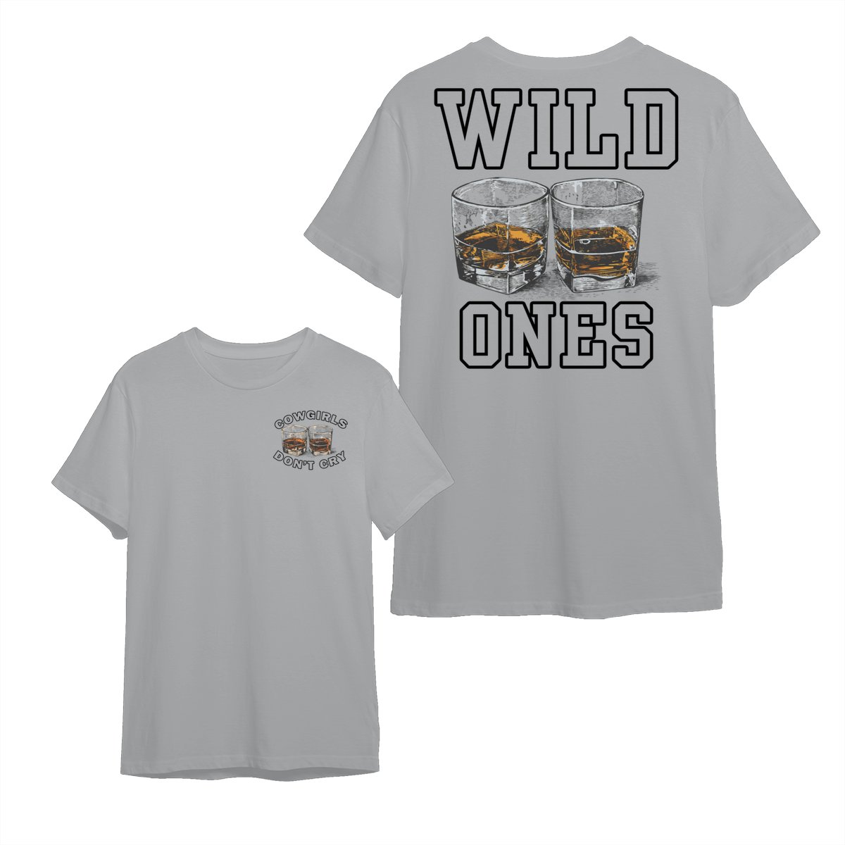 Women’s Shirt Cowgirls Don’t Cry with whiskey glass graphic and Wild Ones design perfect for bold cowgirls who love wild western country fashion Womenswear Tops