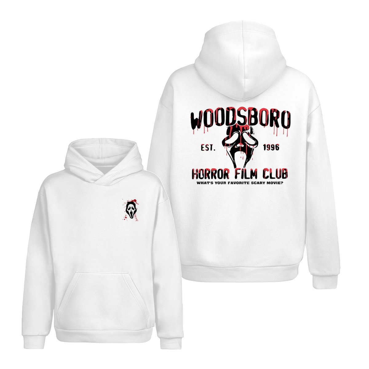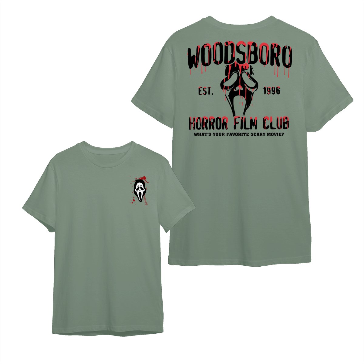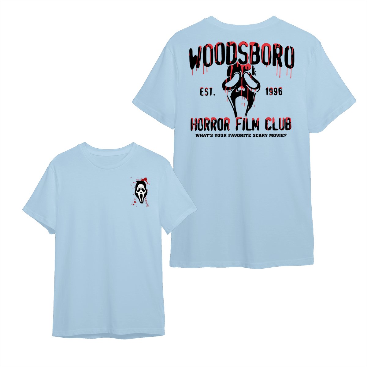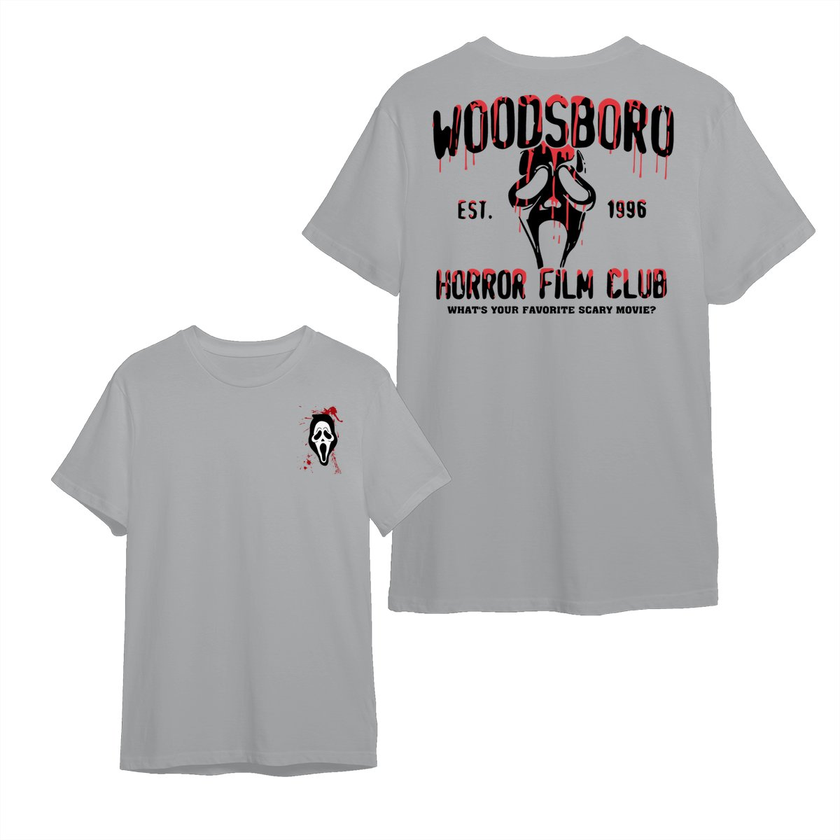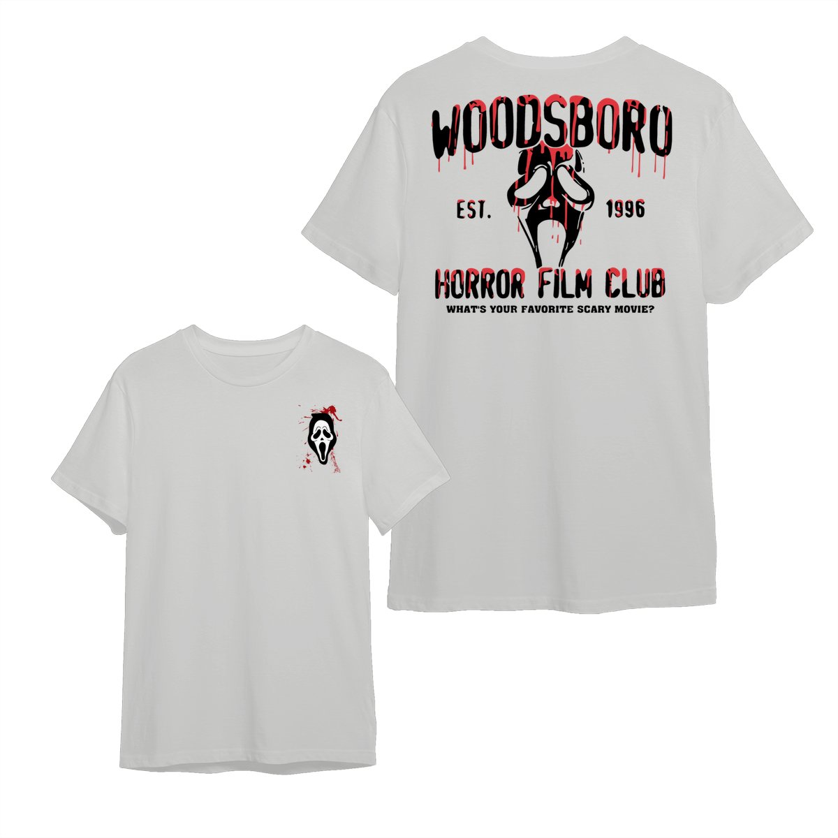 Woodsboro Ghostface Graphic T-Shirt – Blood Drip Horror Design – Scary Movie Halloween Tee for Horror Film Lovers and Spooky Pop Culture Enthusiasts