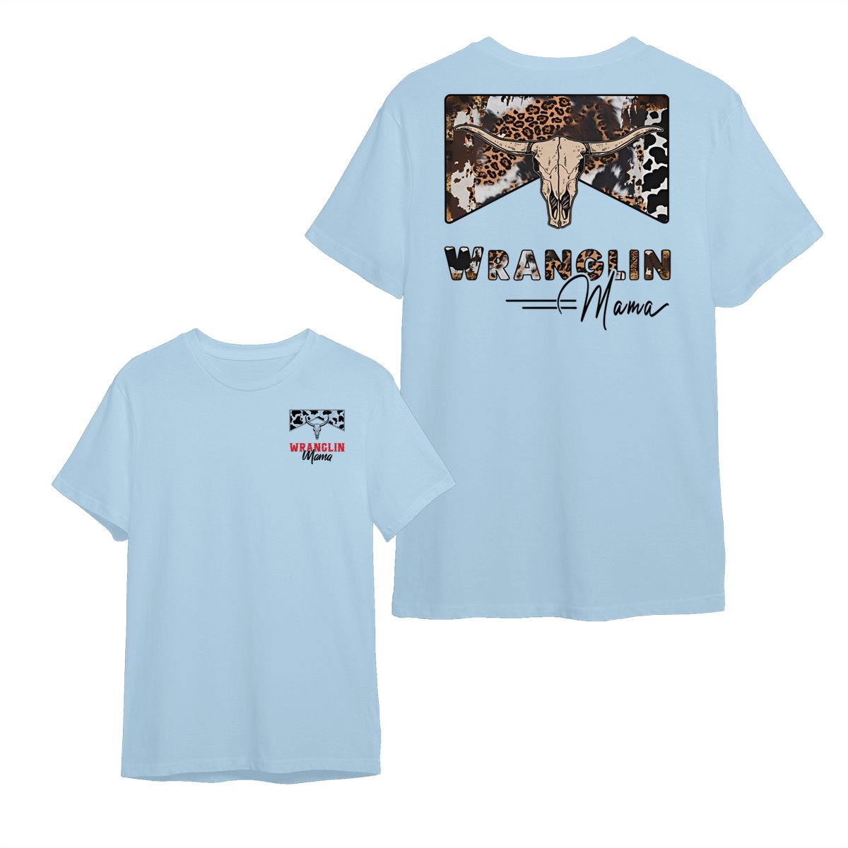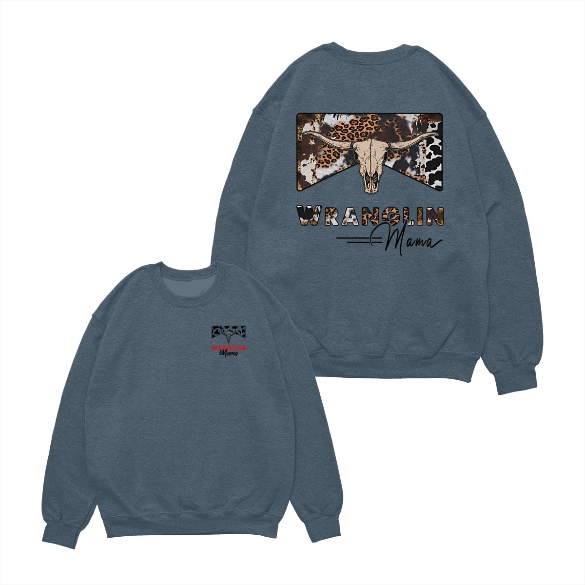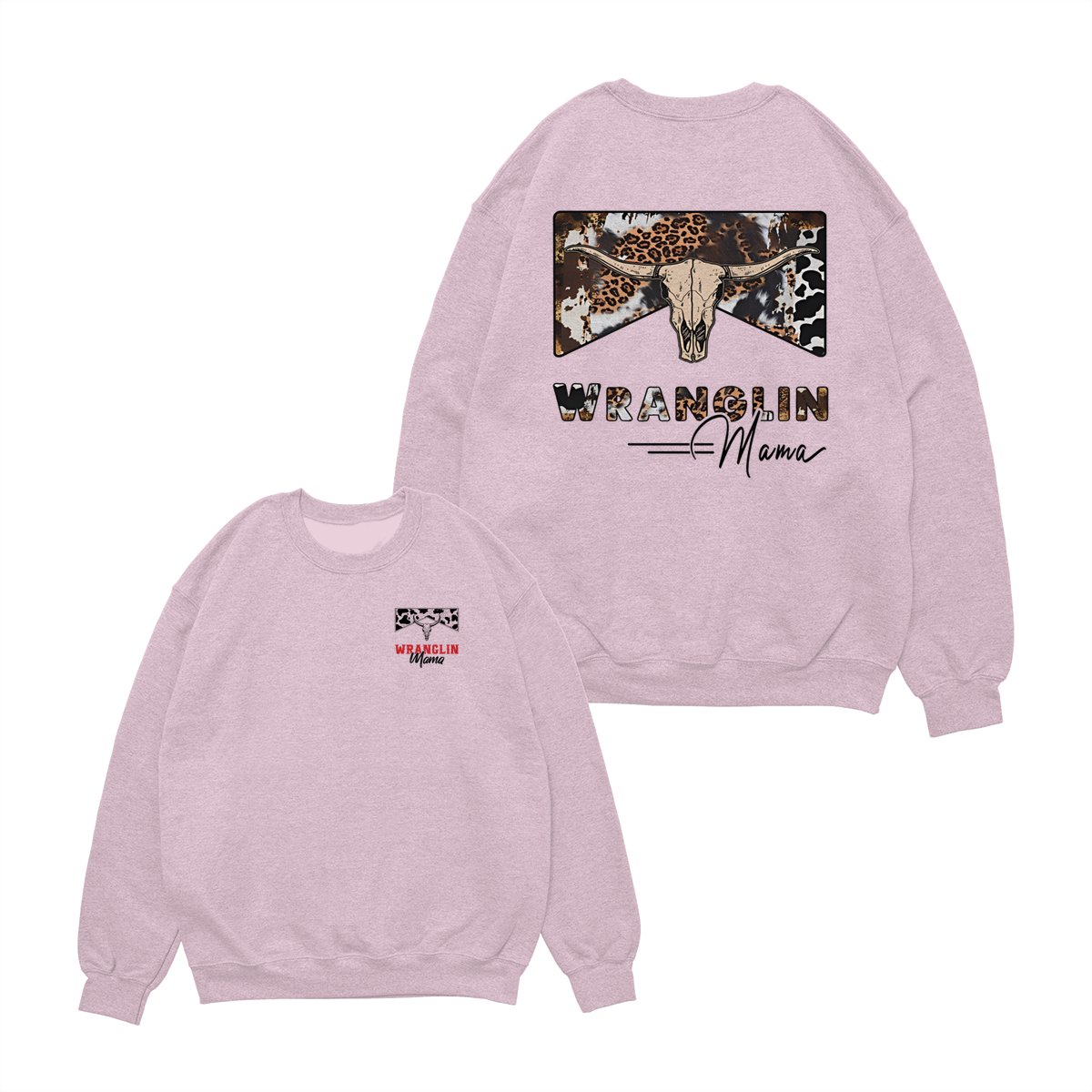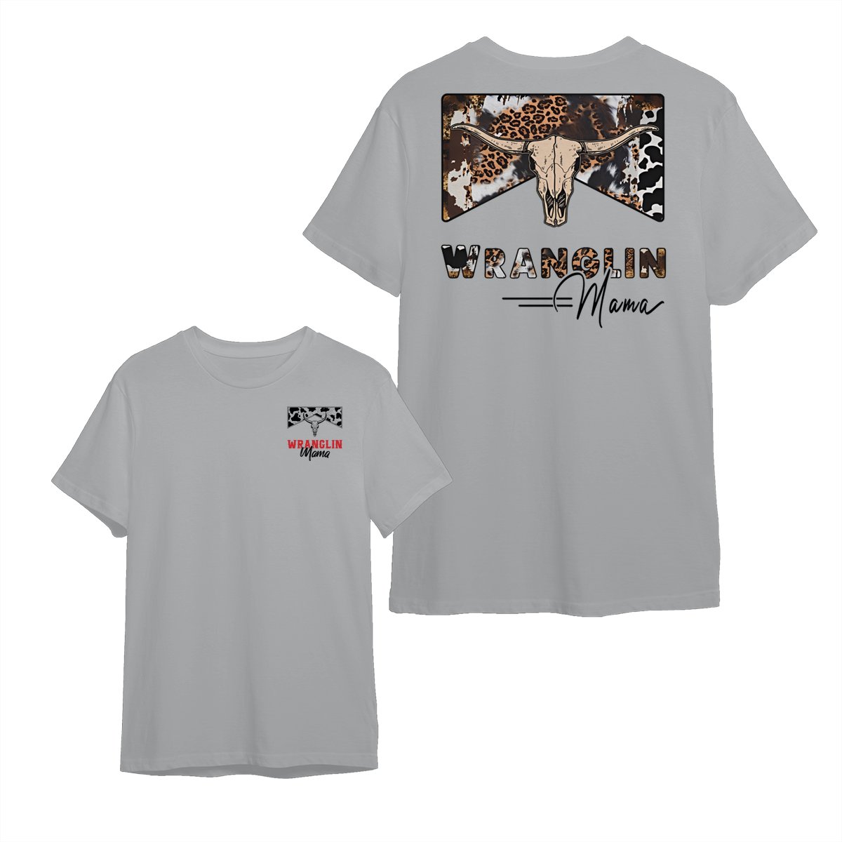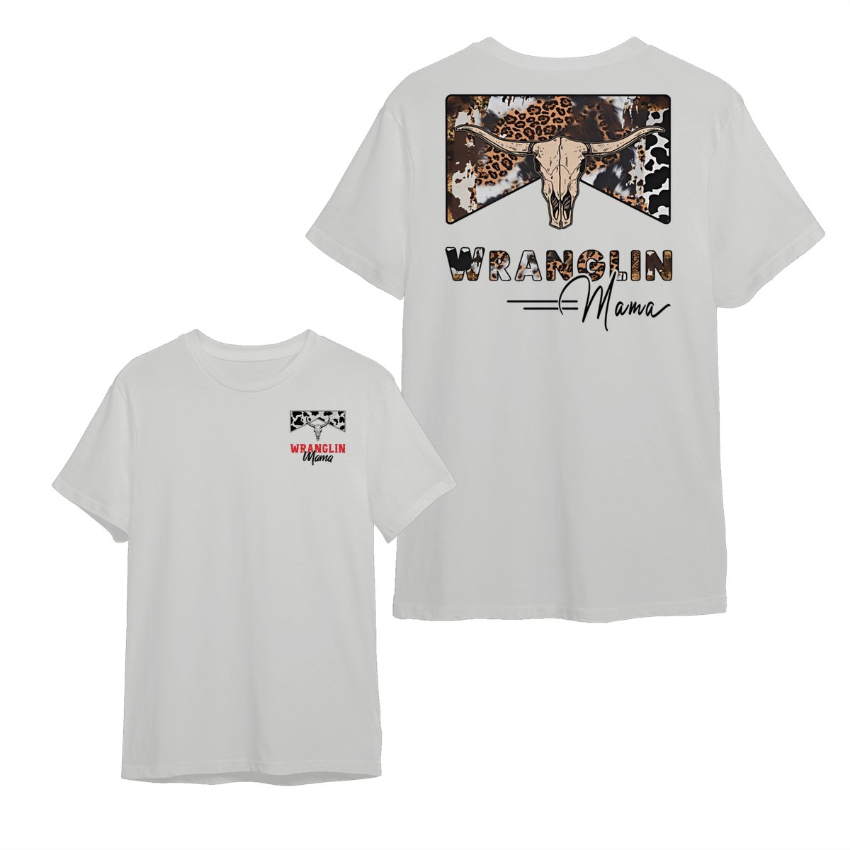 Wranglin Mama TShirt/Sweatshirt/Hoodie – Western Cow Print & Leopard Skull Graphic, Country Girl Gift, Cowgirl Style Sweatshirt, Boho Western Mama Pullover, Trendy Ranch Life Hoodie for Women