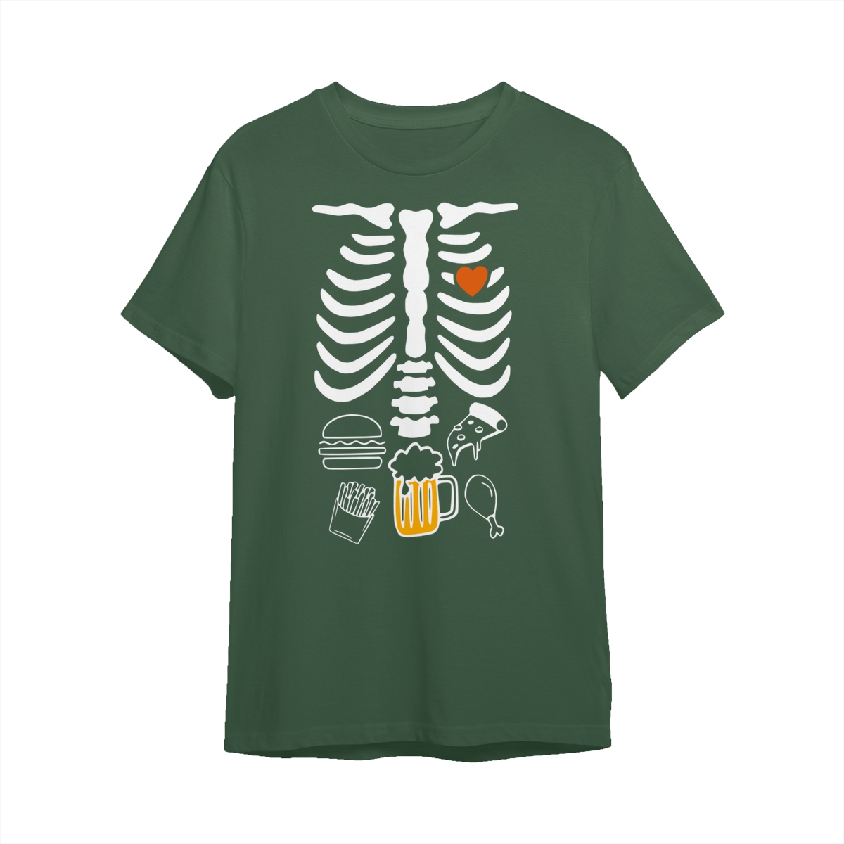 X-ray Beer Drink Skeleton Halloween Shirt for Beer Lovers, Full Color Cotton Crewneck Tee, Unisex Shirt for Men and Women, Apparel Made In The USA