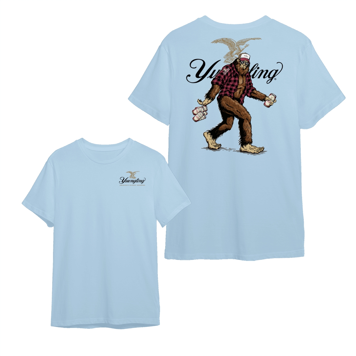Yuengling T-Shirt – ‘Bigfoot Carrying Beer Cans’ Graphic, Ideal for Beer Fans and Outdoor Lovers, Unisex, Short Sleeve, Machine Washable. Boyfriend Gift. Top – Menswear
